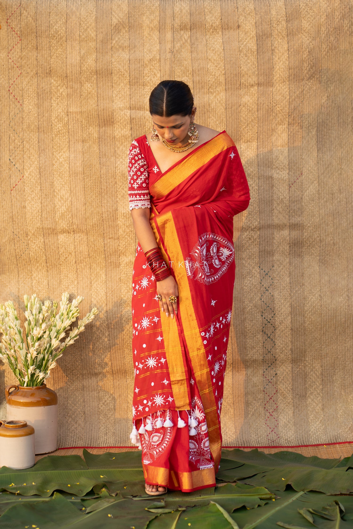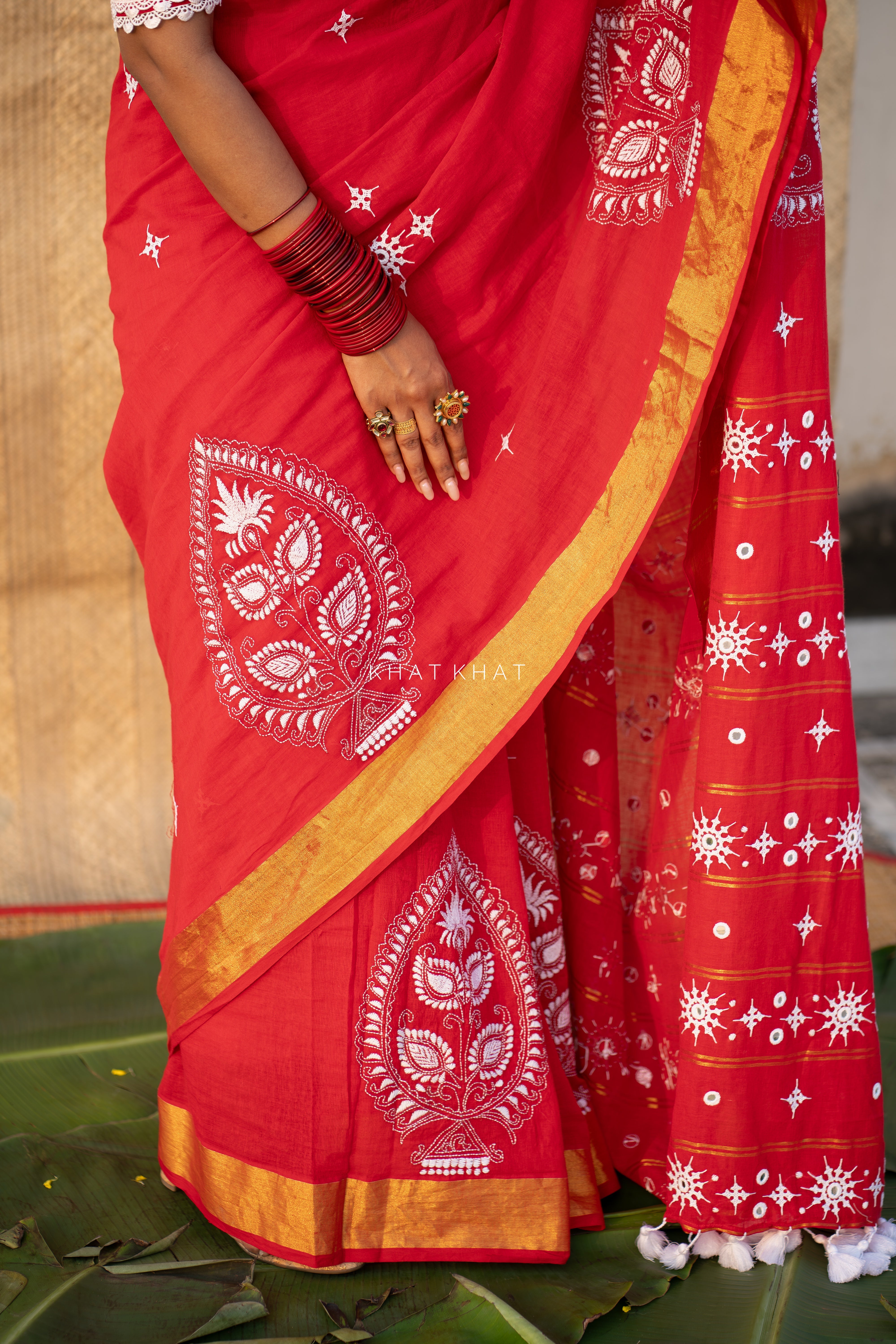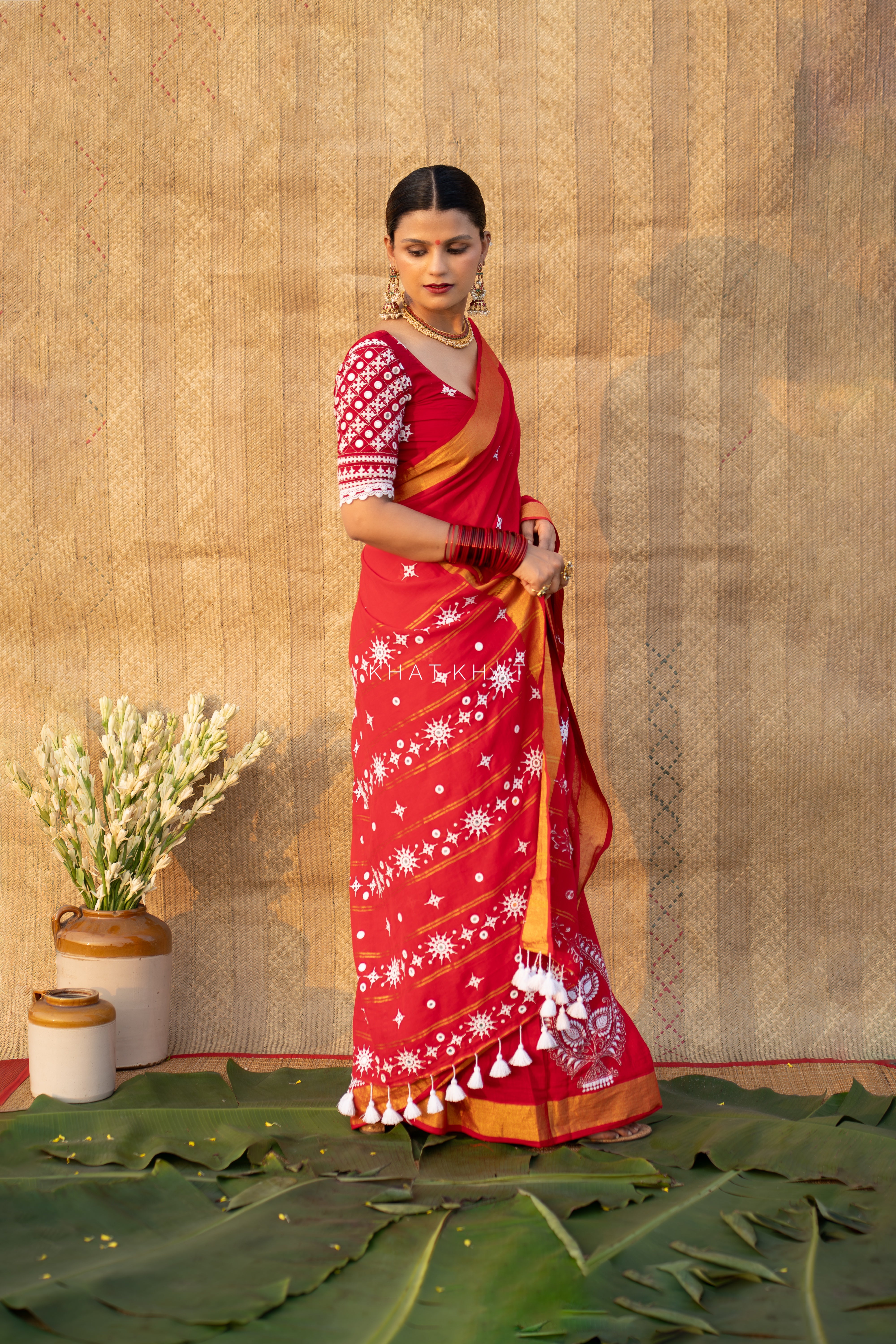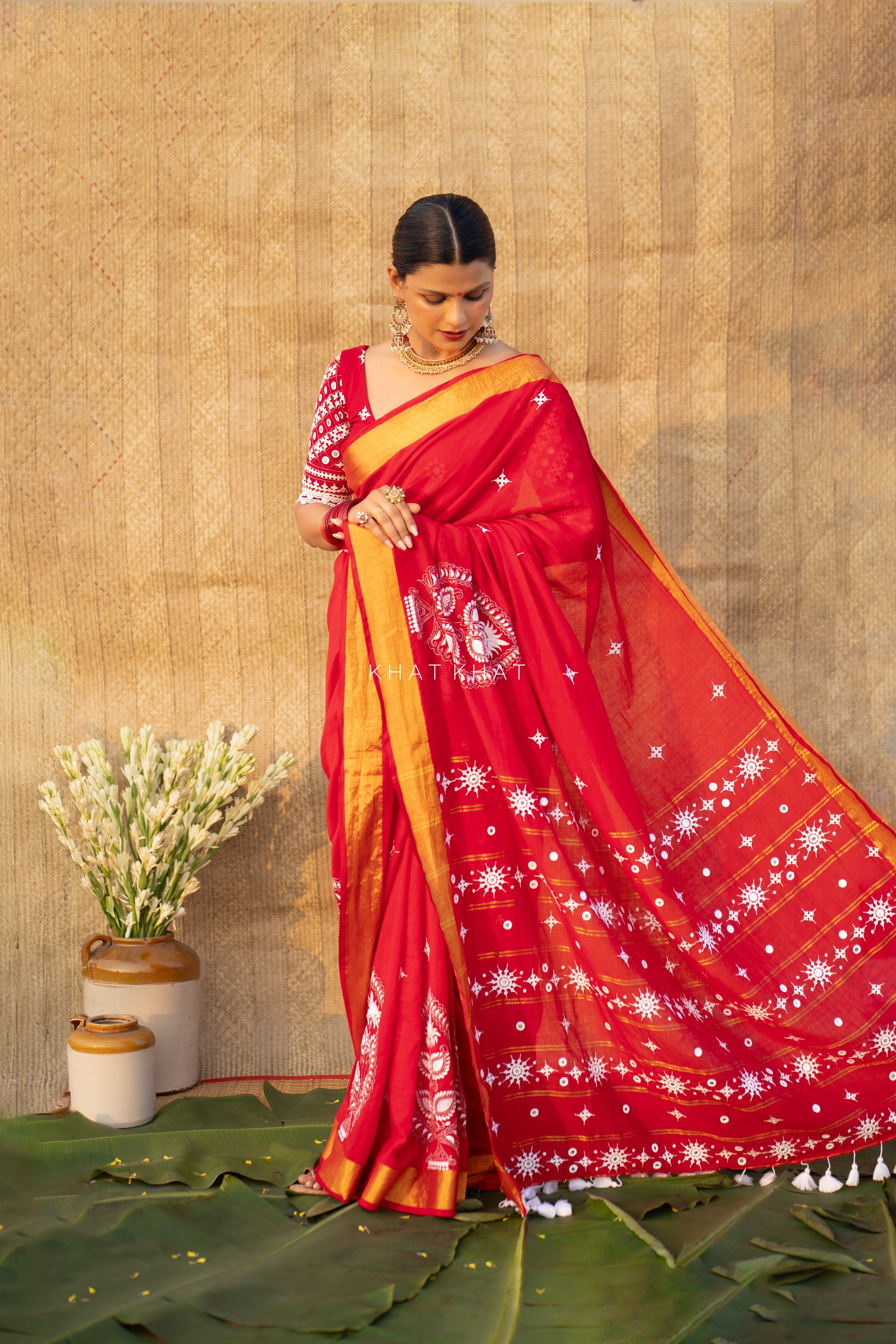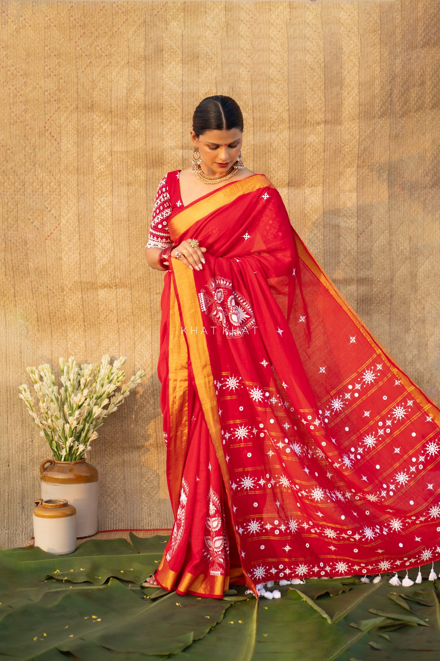 KHAT KHAT sarees are handcrafted using age-old weaving techniques passed down through generations. Each saree carries the essence of our artisans’ hard work and emotional connection to their craft, making every piece unique and full of character.