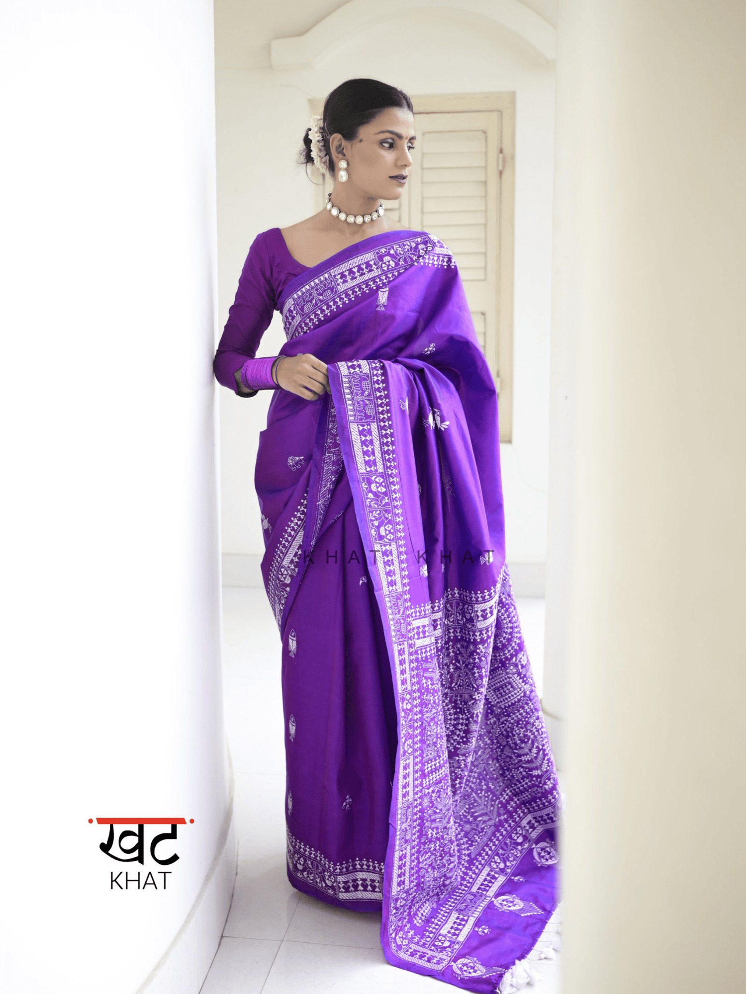 KHAT KHAT sarees are handcrafted using age-old weaving techniques passed down through generations. Each saree carries the essence of our artisans’ hard work and emotional connection to their craft, making every piece unique and full of character.