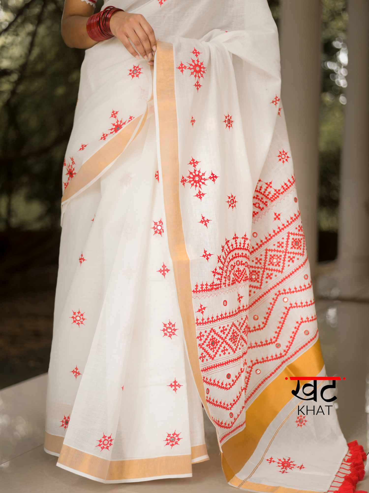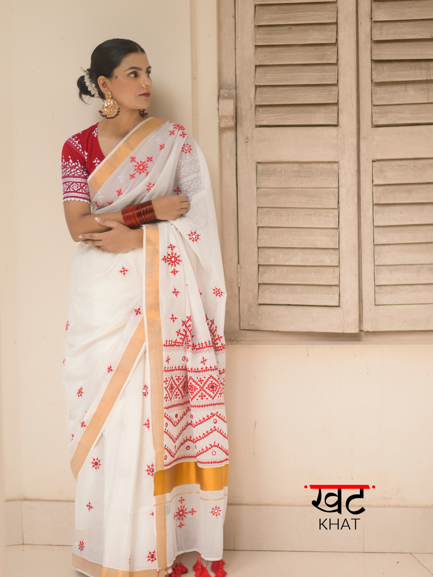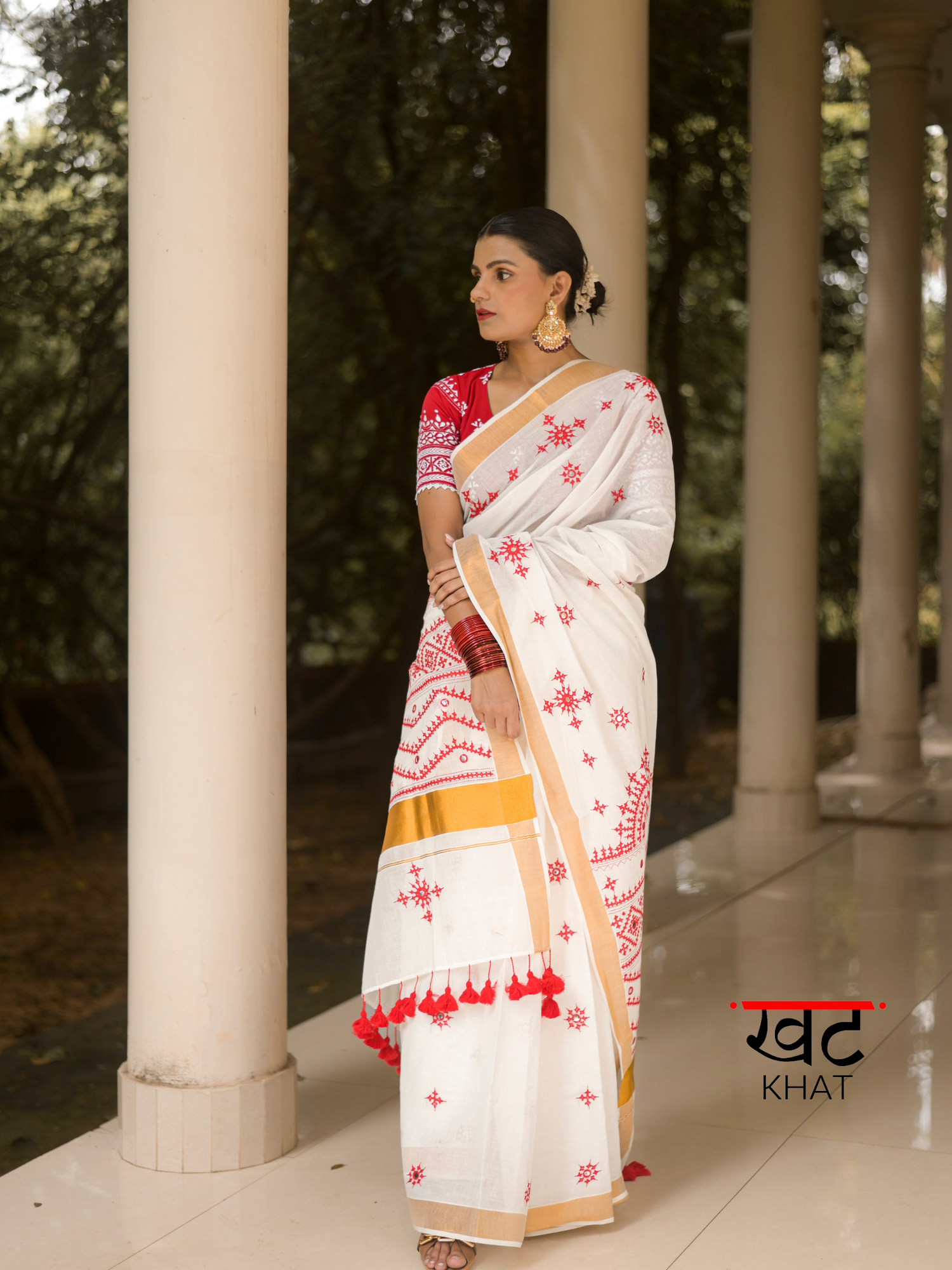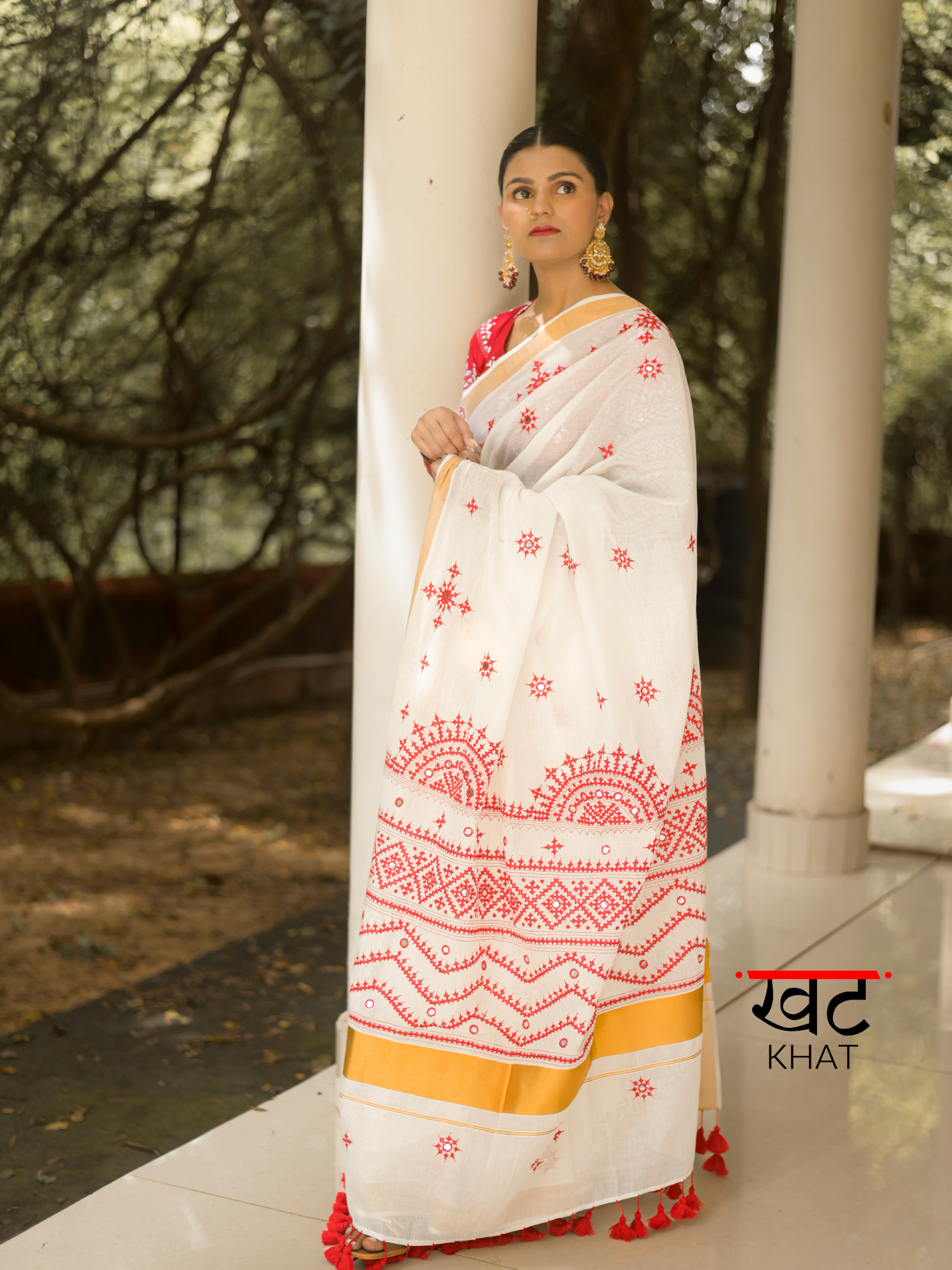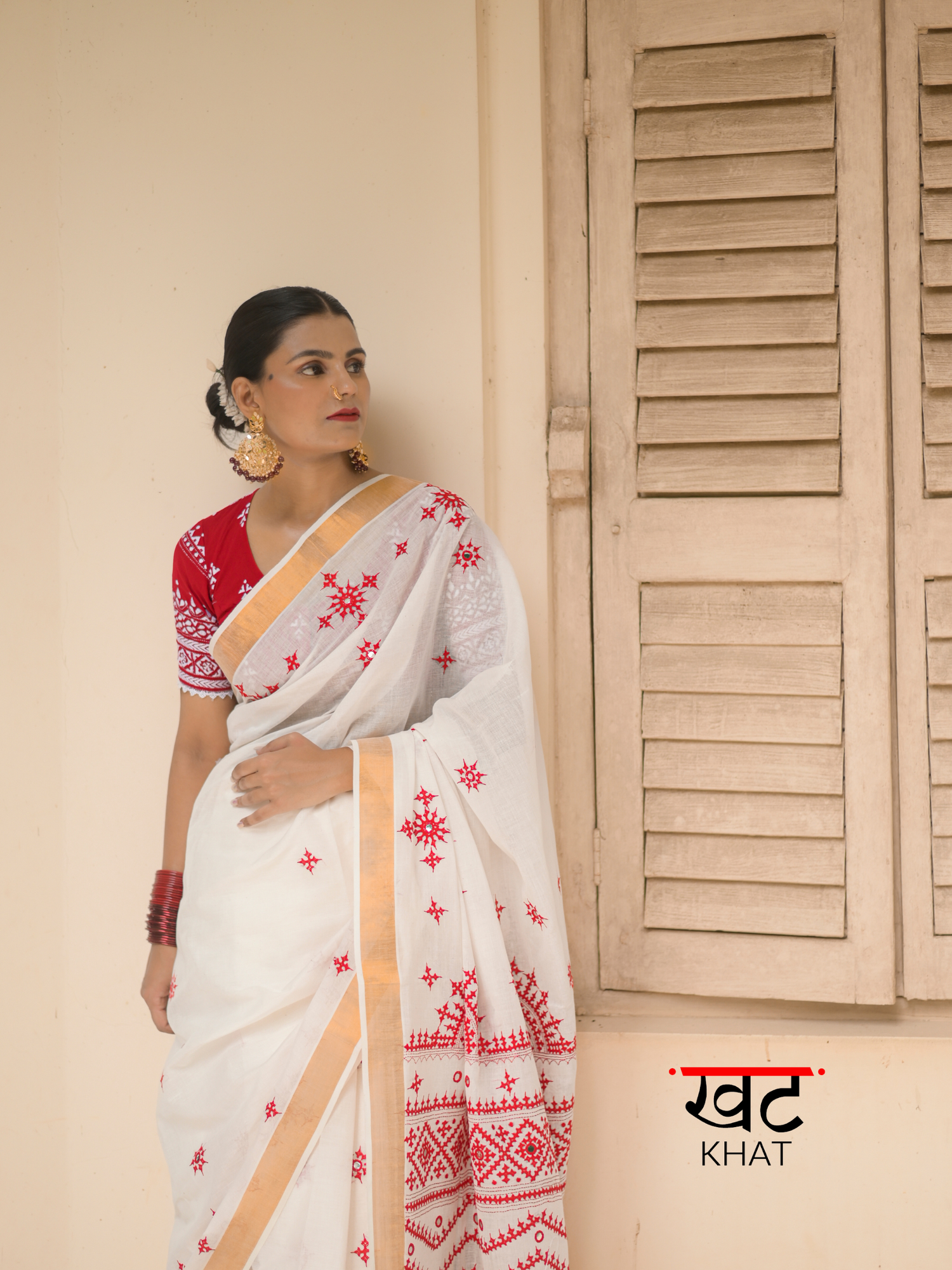 KHAT KHAT sarees are handcrafted using age-old weaving techniques passed down through generations. Each saree carries the essence of our artisans’ hard work and emotional connection to their craft, making every piece unique and full of character.