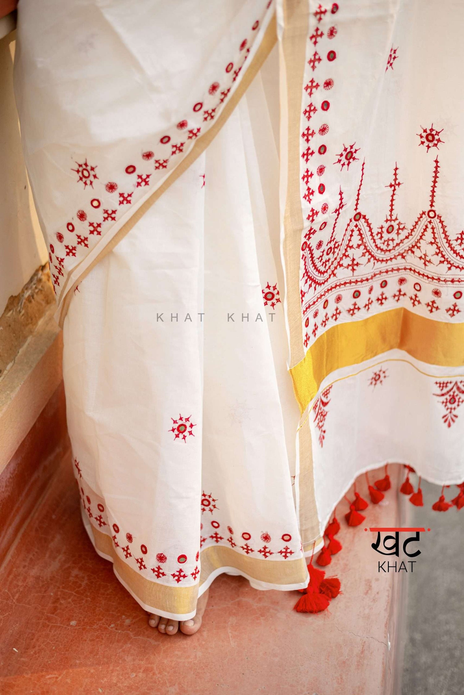 KHAT KHAT sarees are handcrafted using age-old weaving techniques passed down through generations. Each saree carries the essence of our artisans’ hard work and emotional connection to their craft, making every piece unique and full of character.