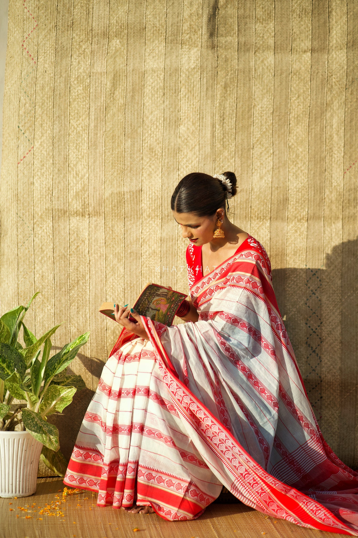 Our sarees are made from completely organic fabrics such as pure cotton, silk, and linen. Every piece is handwoven by indigenous artisans, ensuring a blend of tradition, quality, and sustainability.