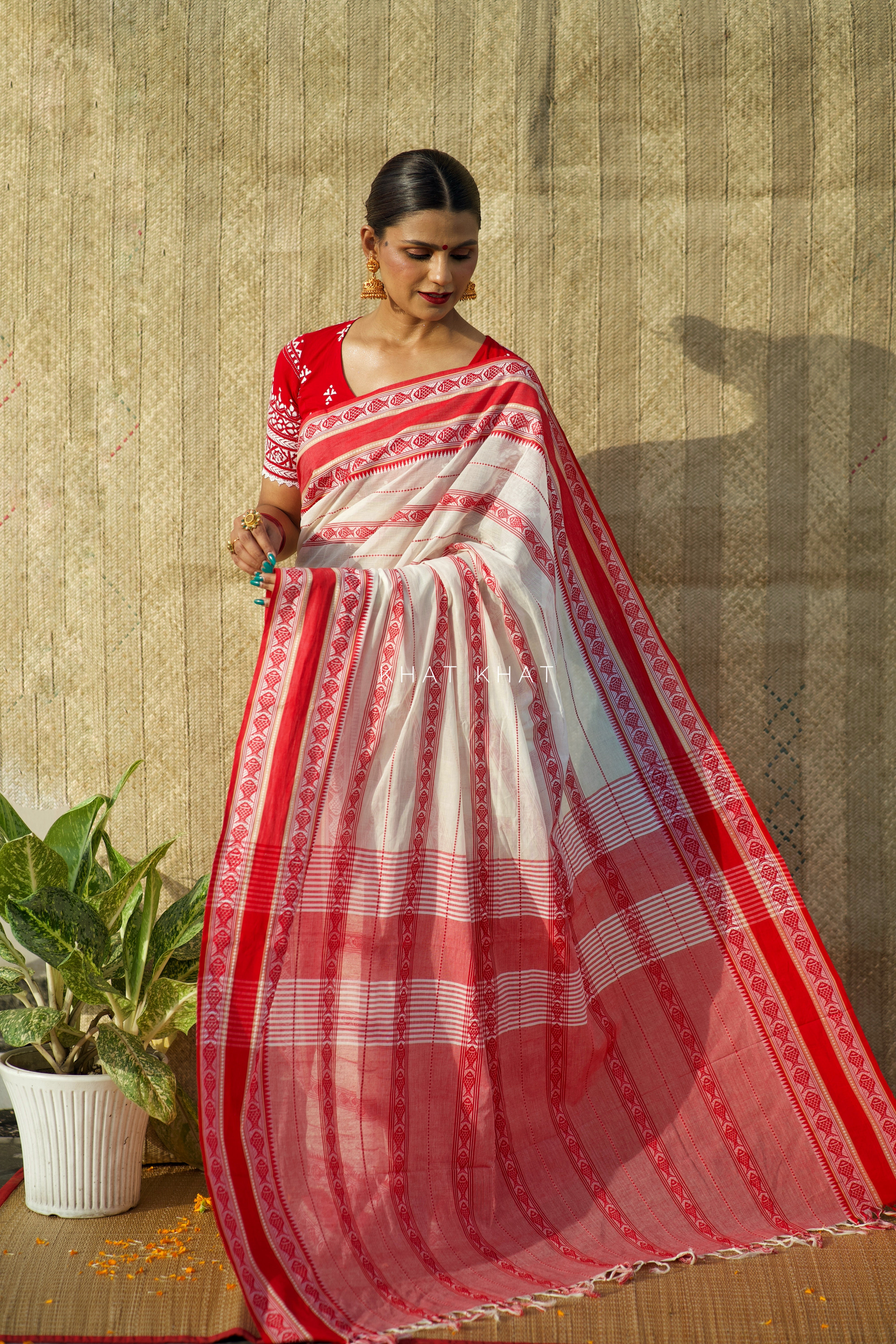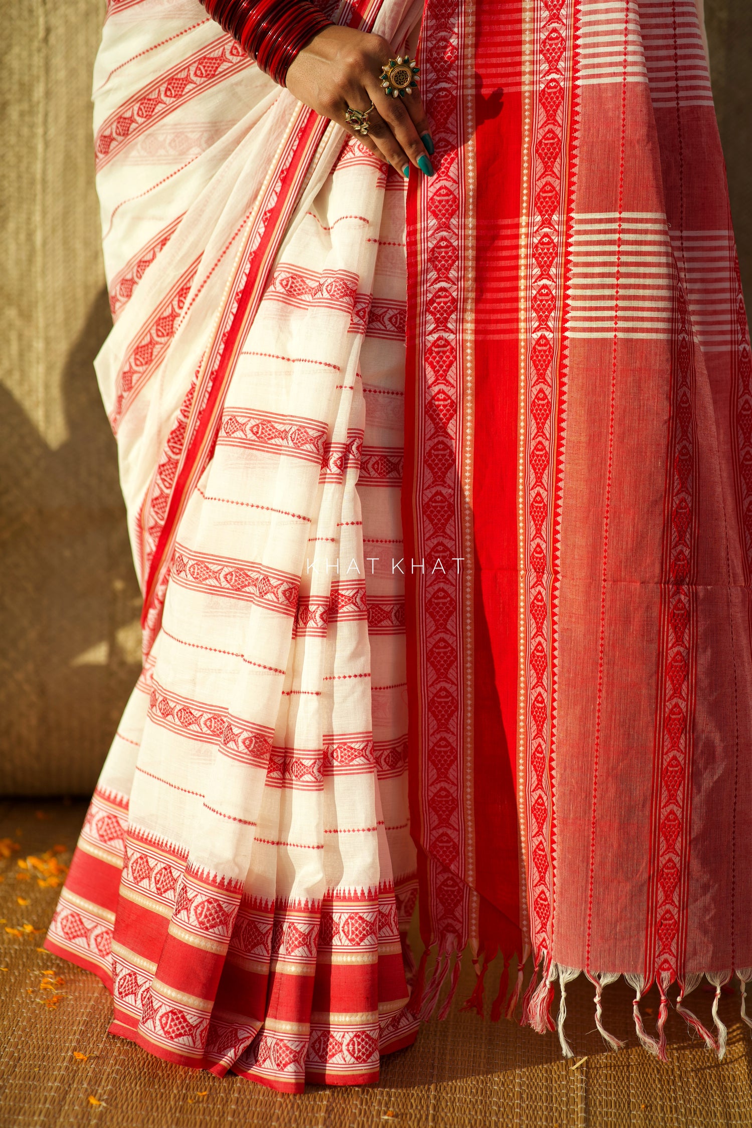 KHAT KHAT sarees are handcrafted using age-old weaving techniques passed down through generations. Each saree carries the essence of our artisans’ hard work and emotional connection to their craft, making every piece unique and full of character.
