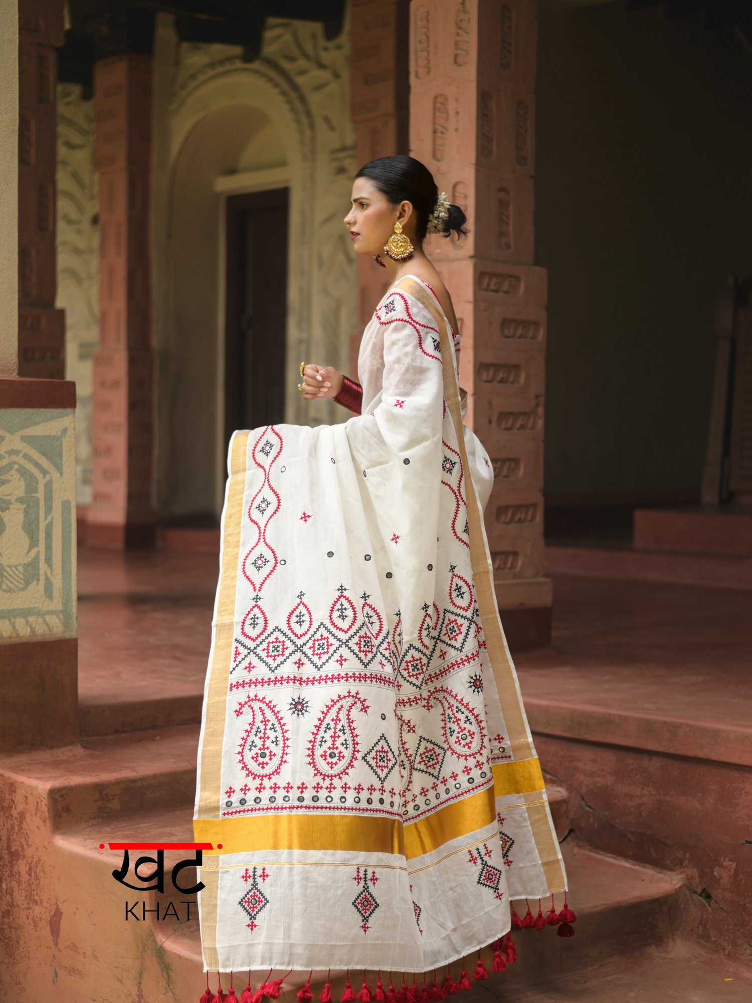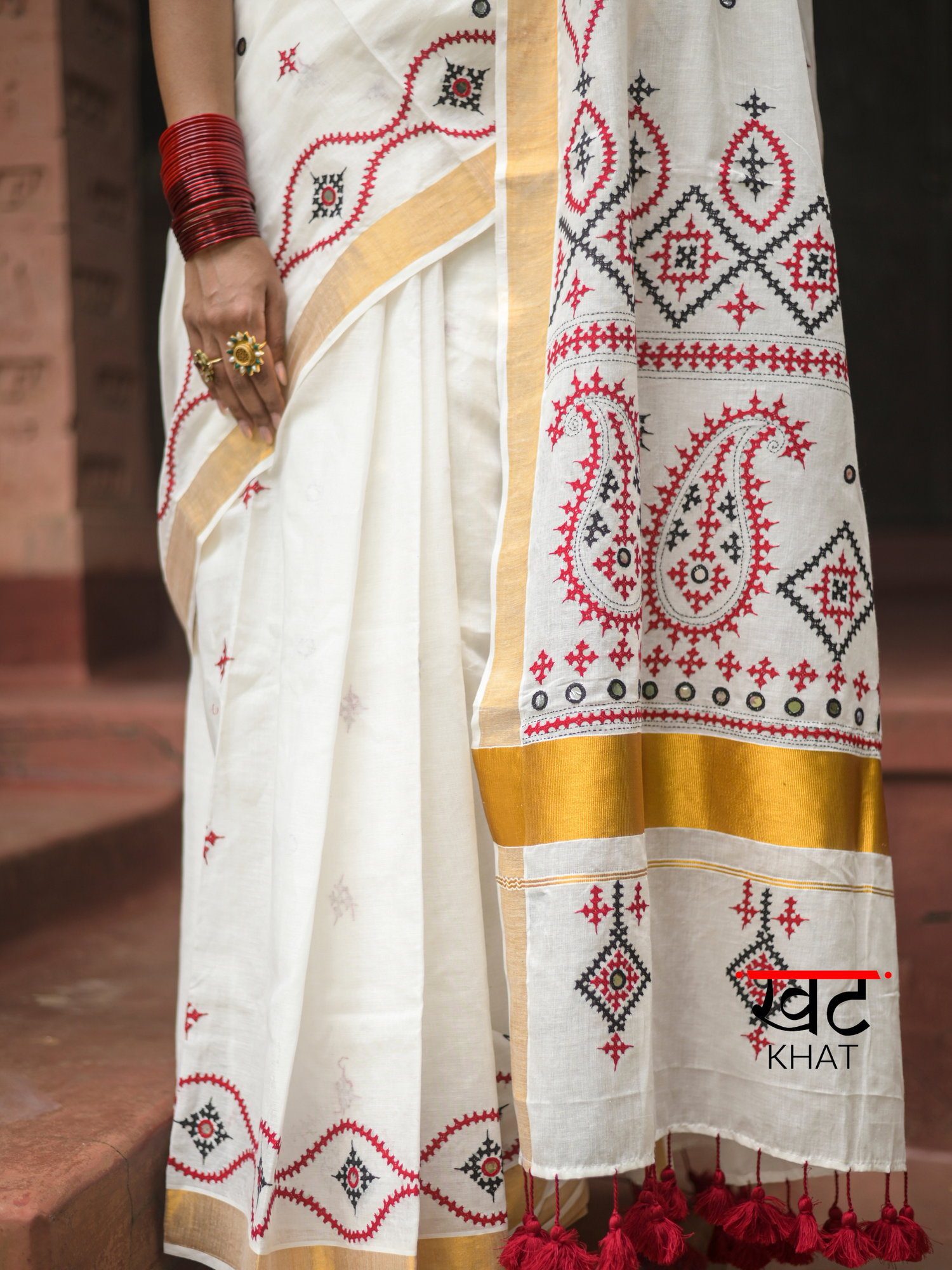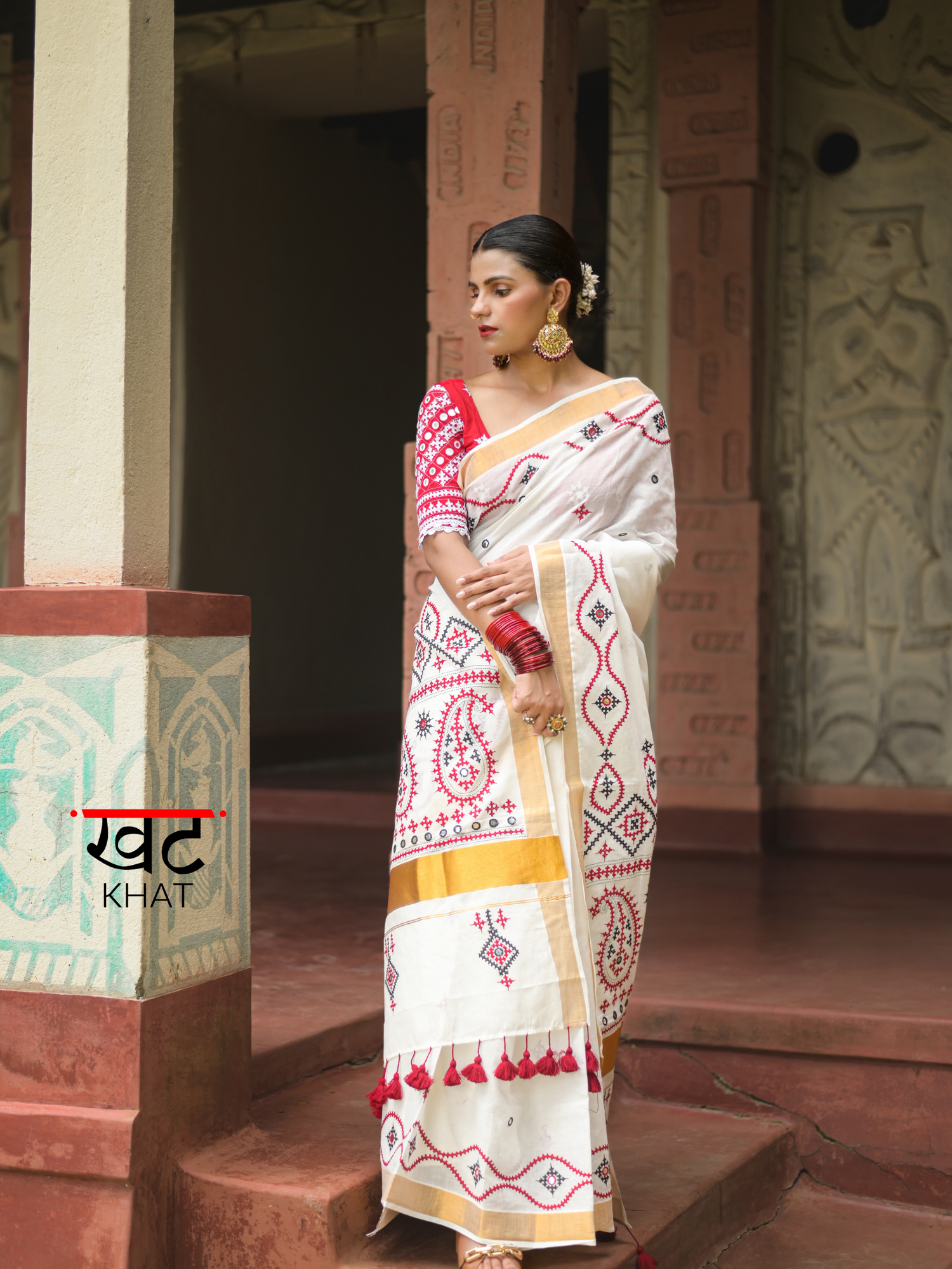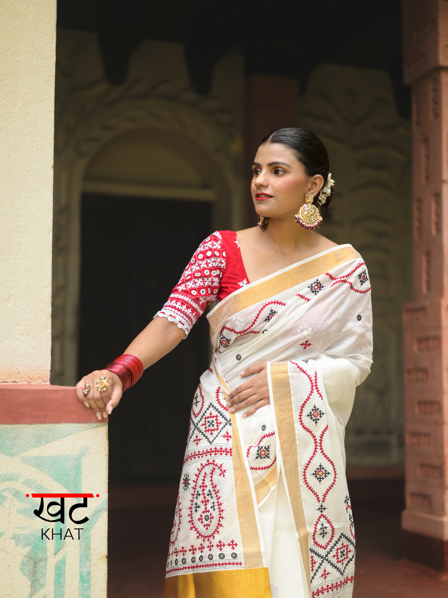 KHAT KHAT sarees are handcrafted using age-old weaving techniques passed down through generations. Each saree carries the essence of our artisans’ hard work and emotional connection to their craft, making every piece unique and full of character.