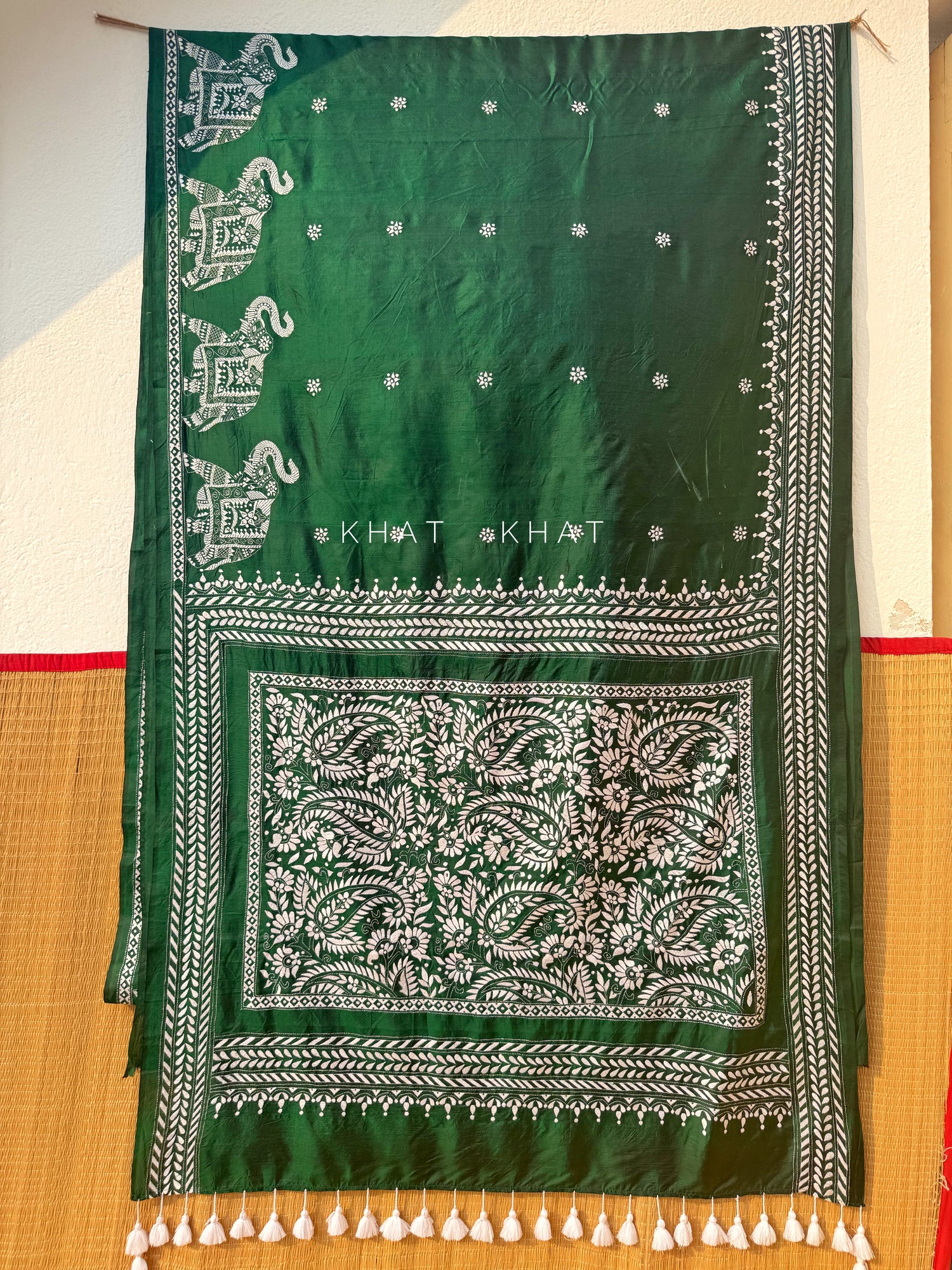KHAT KHAT sarees are handcrafted using age-old weaving techniques passed down through generations. Each saree carries the essence of our artisans’ hard work and emotional connection to their craft, making every piece unique and full of character.