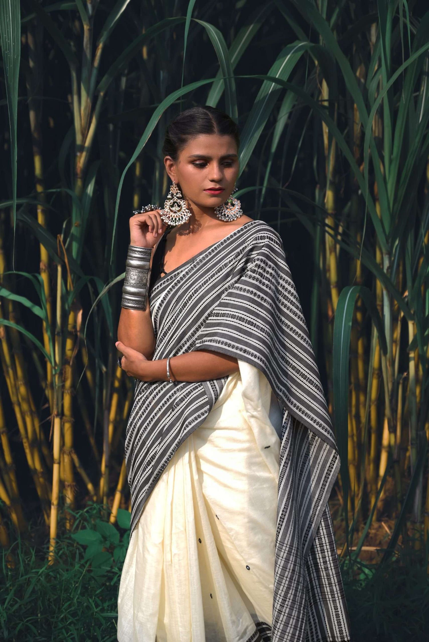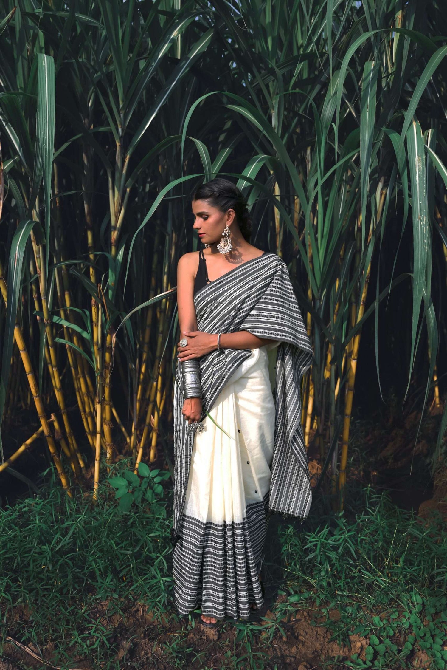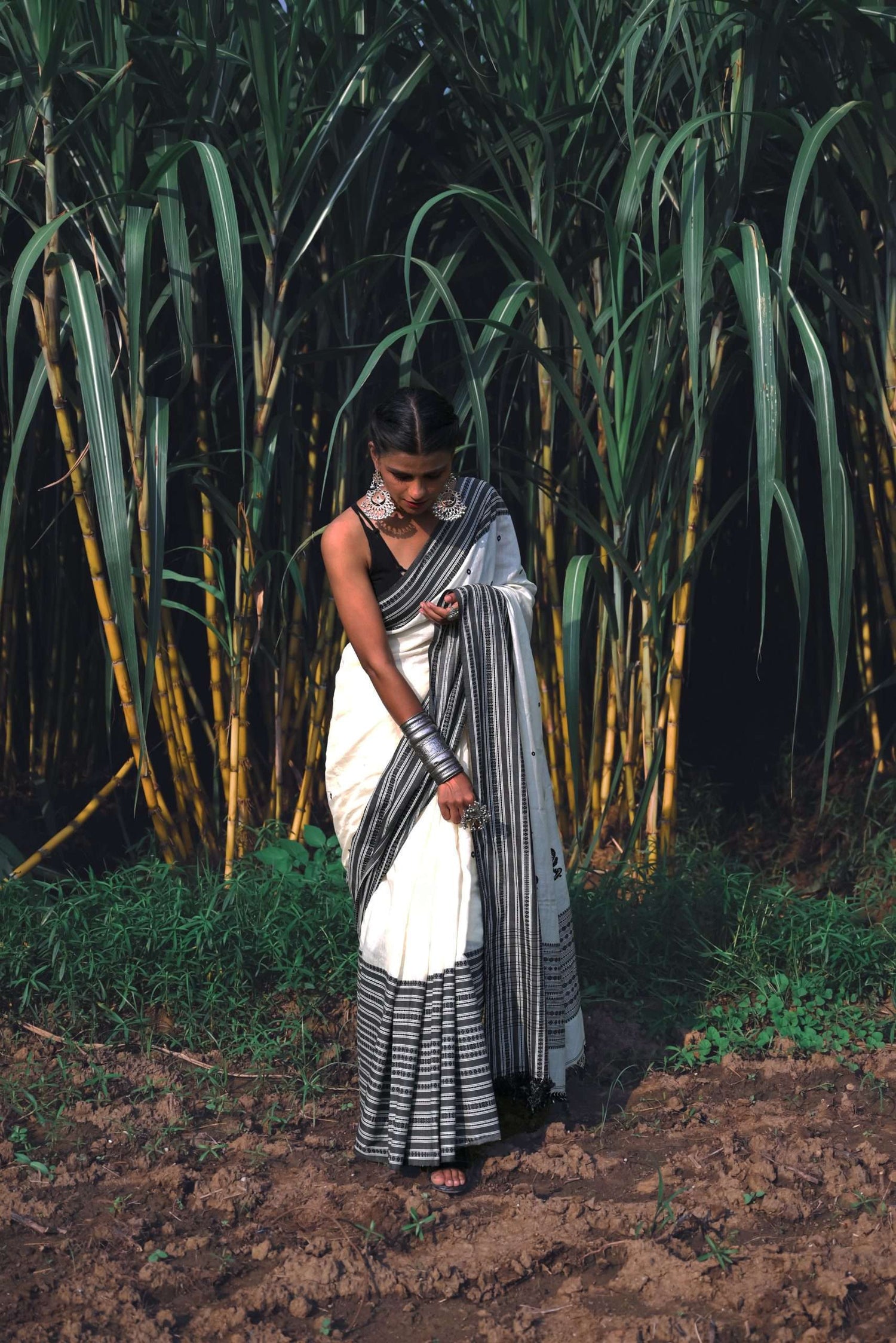 Our sarees are made from completely organic fabrics such as pure cotton, silk, and linen. Every piece is handwoven by indigenous artisans, ensuring a blend of tradition, quality, and sustainability.