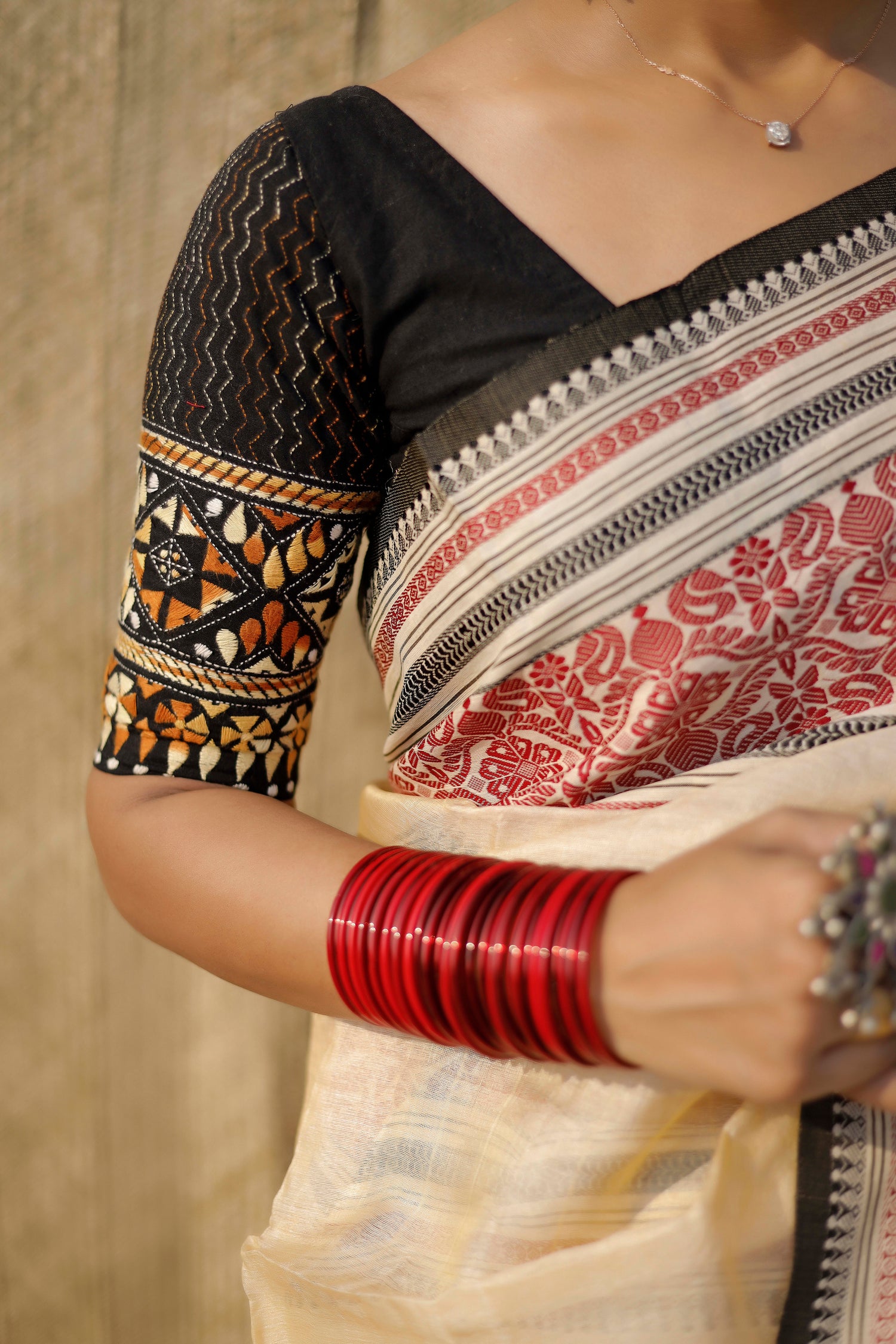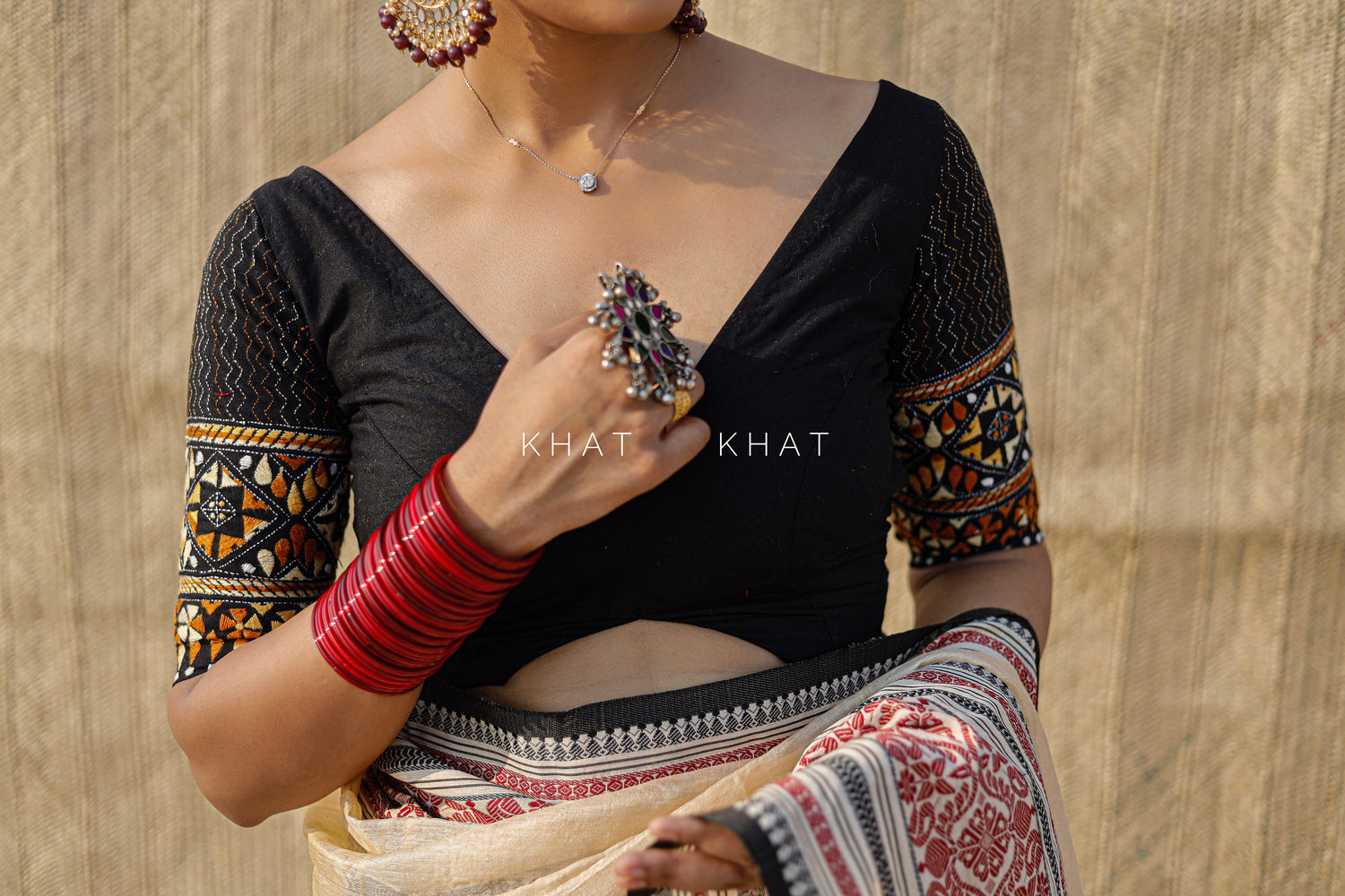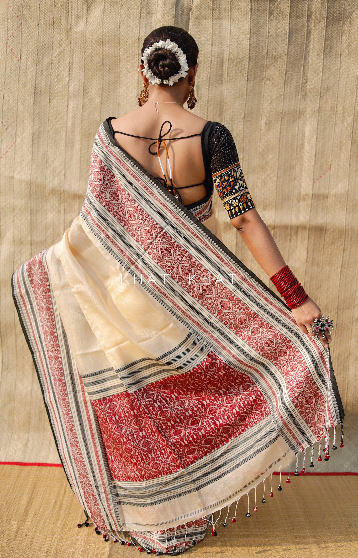 KHAT KHAT sarees are handcrafted using age-old weaving techniques passed down through generations. Each saree carries the essence of our artisans’ hard work and emotional connection to their craft, making every piece unique and full of character.