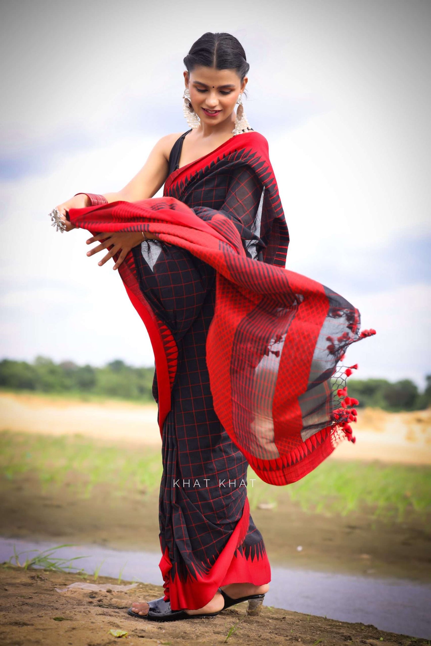 KHAT KHAT sarees are handcrafted using age-old weaving techniques passed down through generations. Each saree carries the essence of our artisans’ hard work and emotional connection to their craft, making every piece unique and full of character.