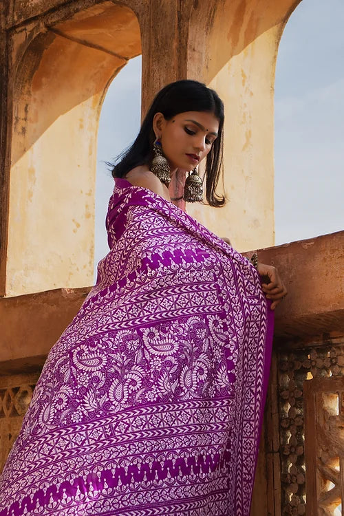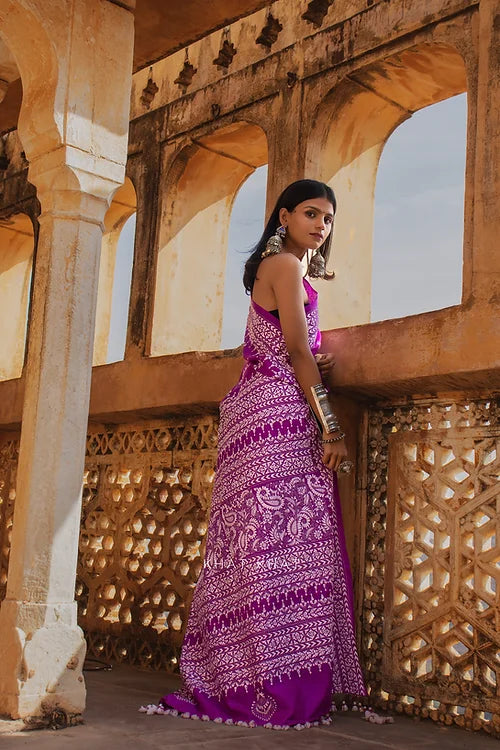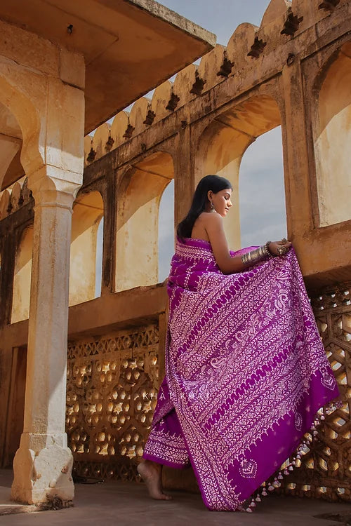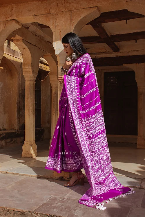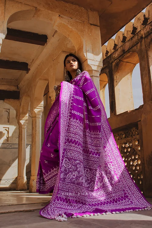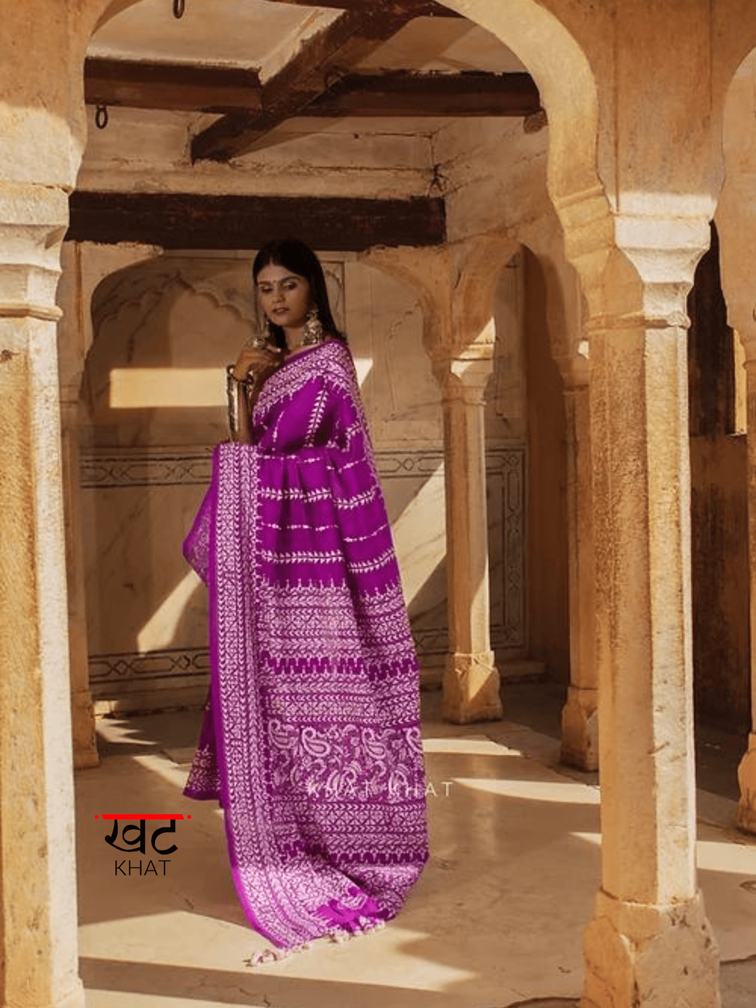 KHAT KHAT sarees are handcrafted using age-old weaving techniques passed down through generations. Each saree carries the essence of our artisans’ hard work and emotional connection to their craft, making every piece unique and full of character.