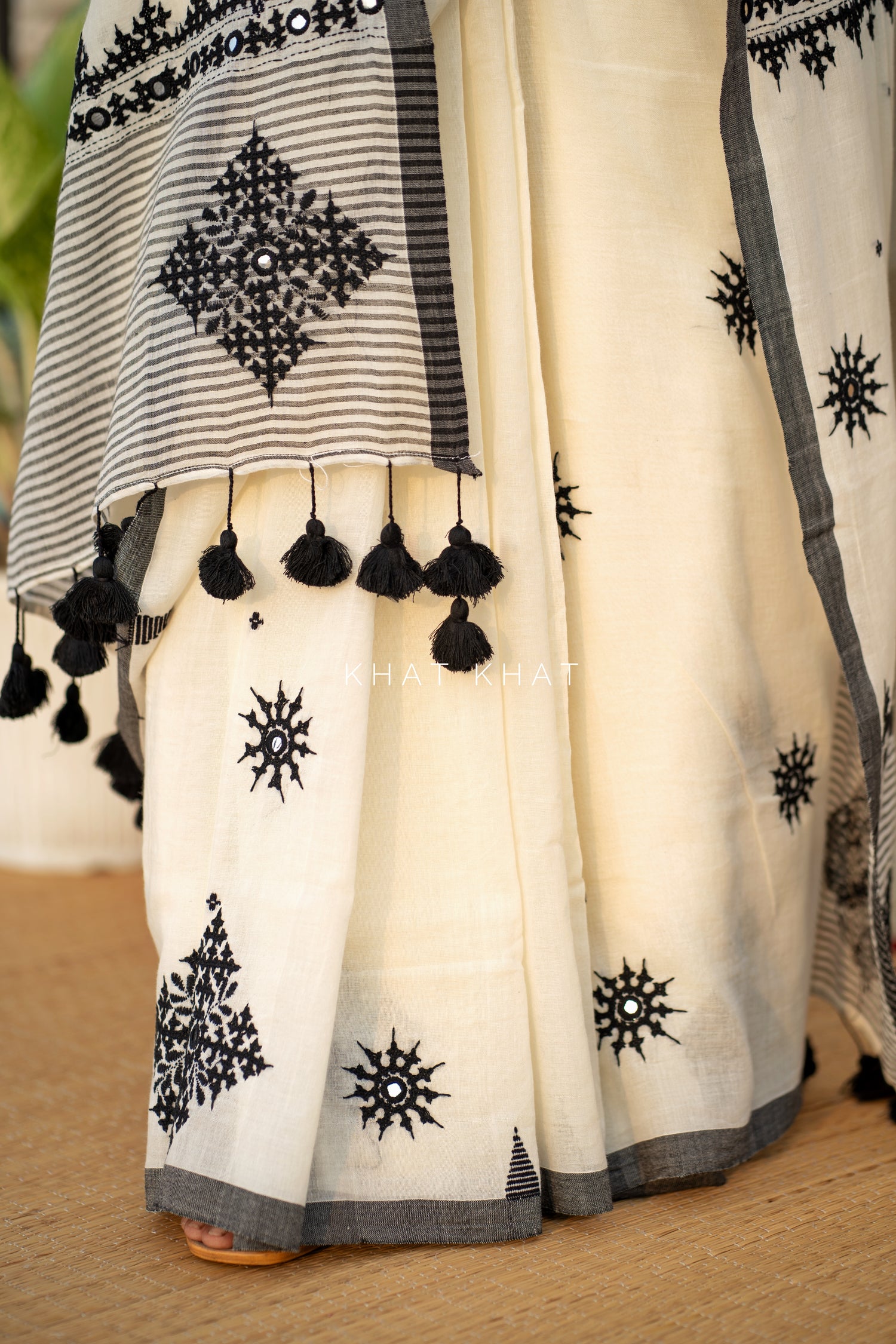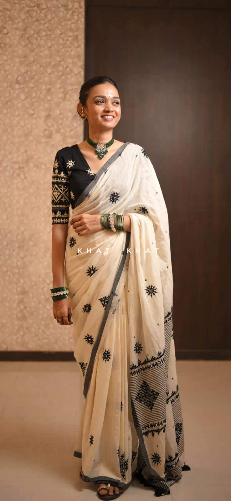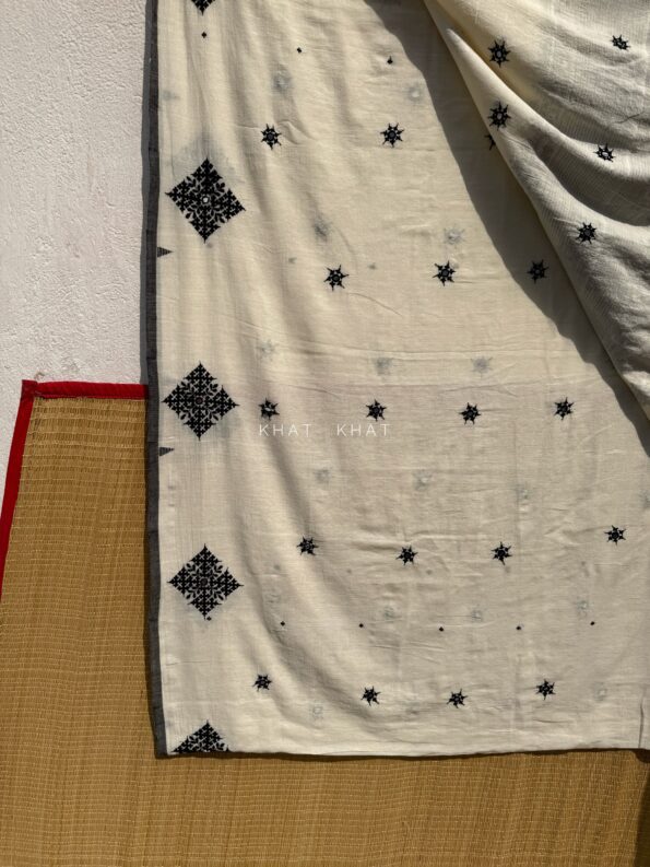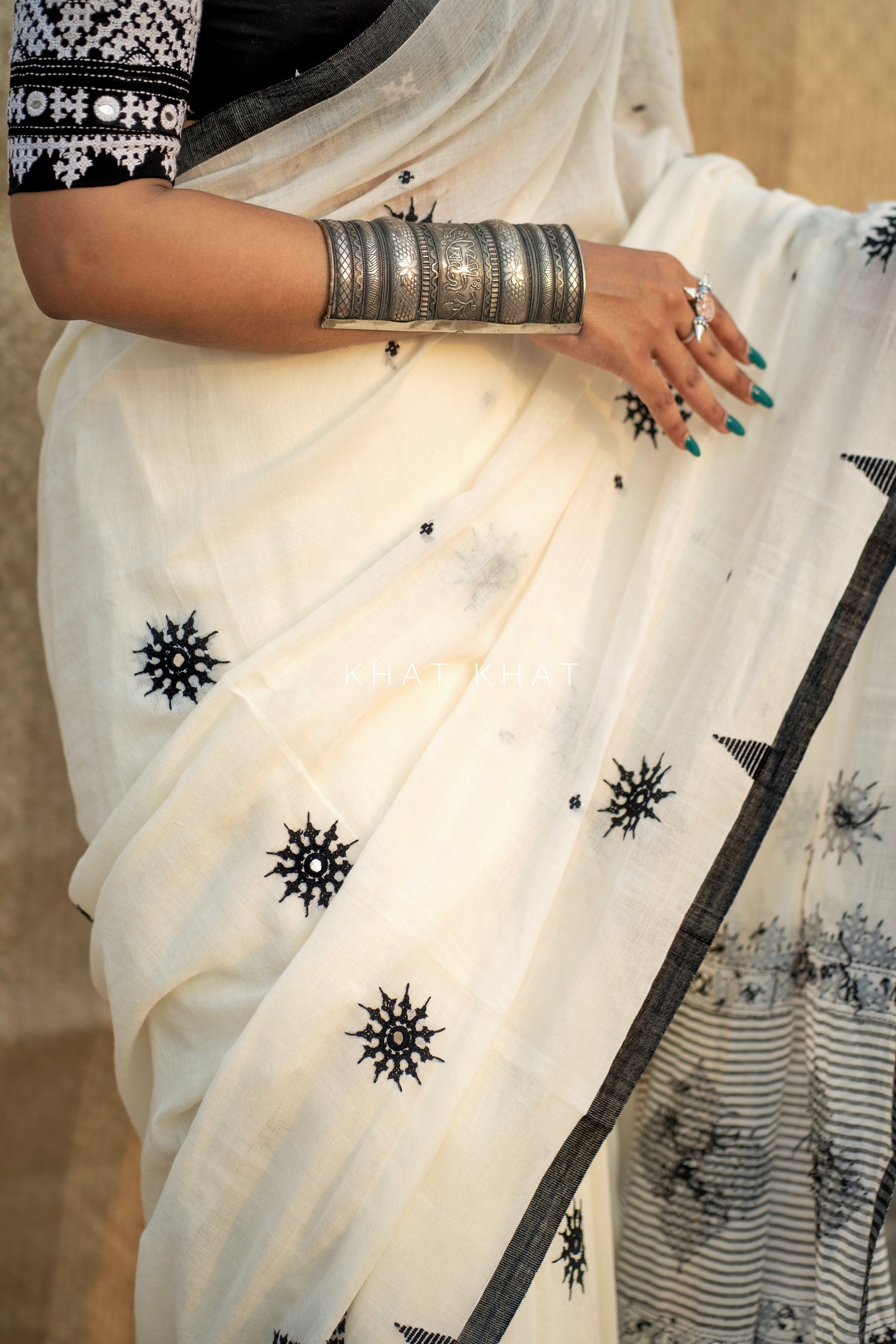 KHAT KHAT sarees are handcrafted using age-old weaving techniques passed down through generations. Each saree carries the essence of our artisans’ hard work and emotional connection to their craft, making every piece unique and full of character.