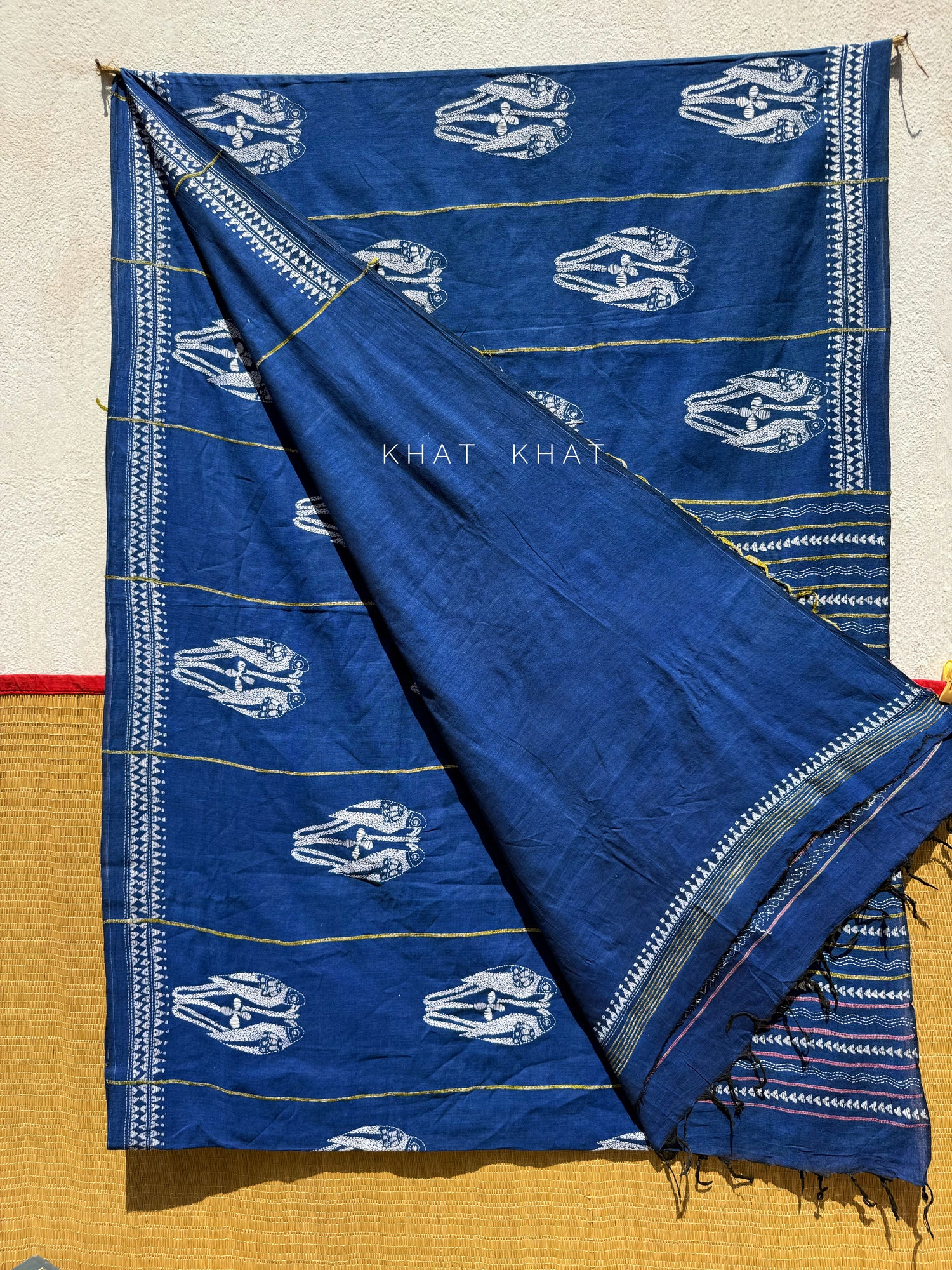 KHAT KHAT sarees are handcrafted using age-old weaving techniques passed down through generations. Each saree carries the essence of our artisans’ hard work and emotional connection to their craft, making every piece unique and full of character.