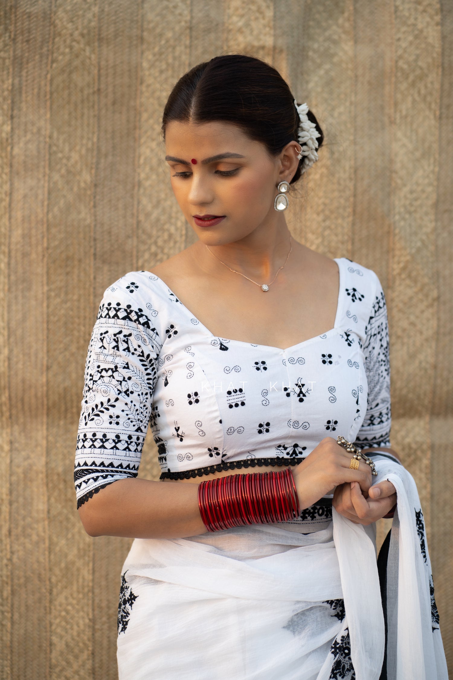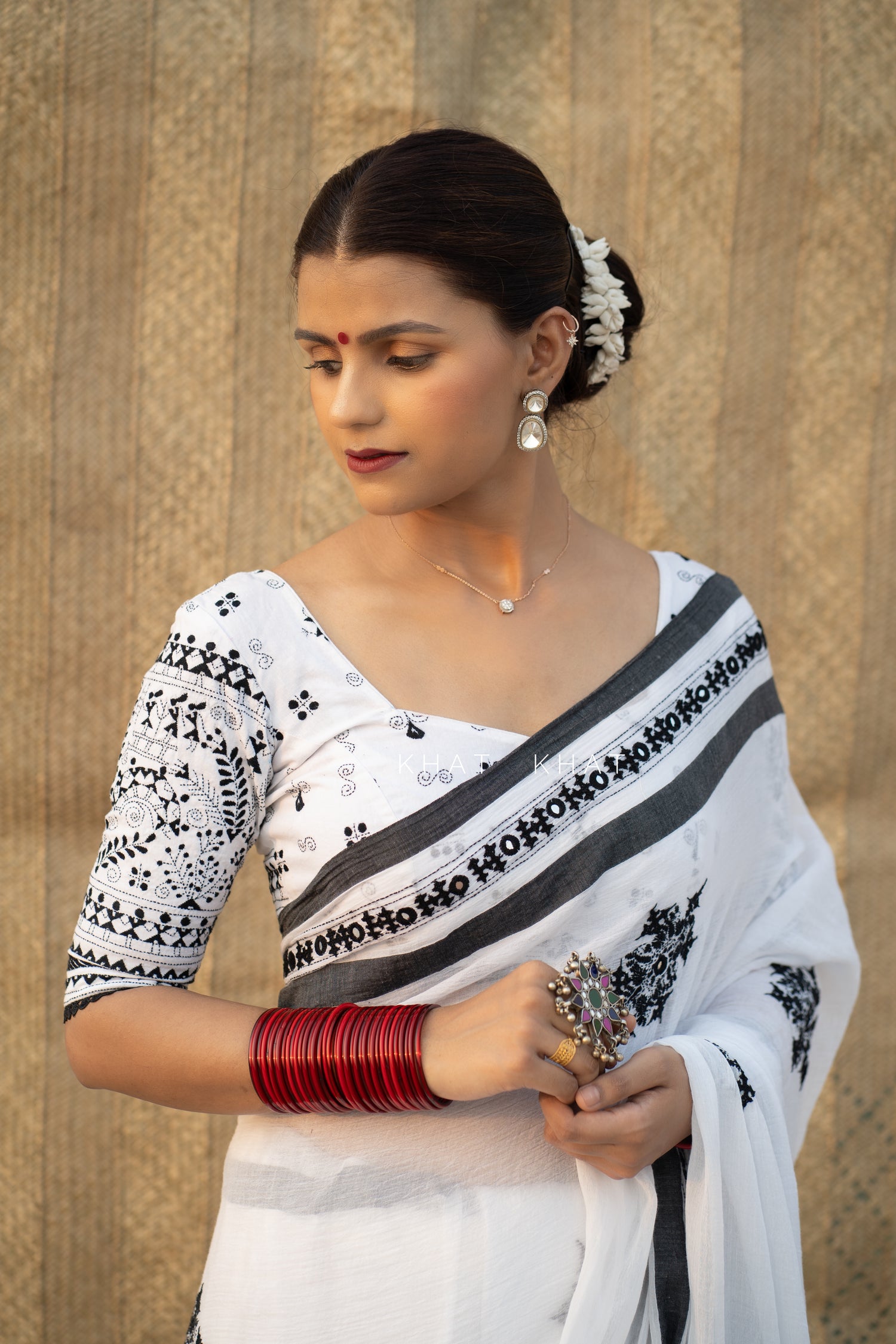 KHAT KHAT sarees are handcrafted using age-old weaving techniques passed down through generations. Each saree carries the essence of our artisans’ hard work and emotional connection to their craft, making every piece unique and full of character.