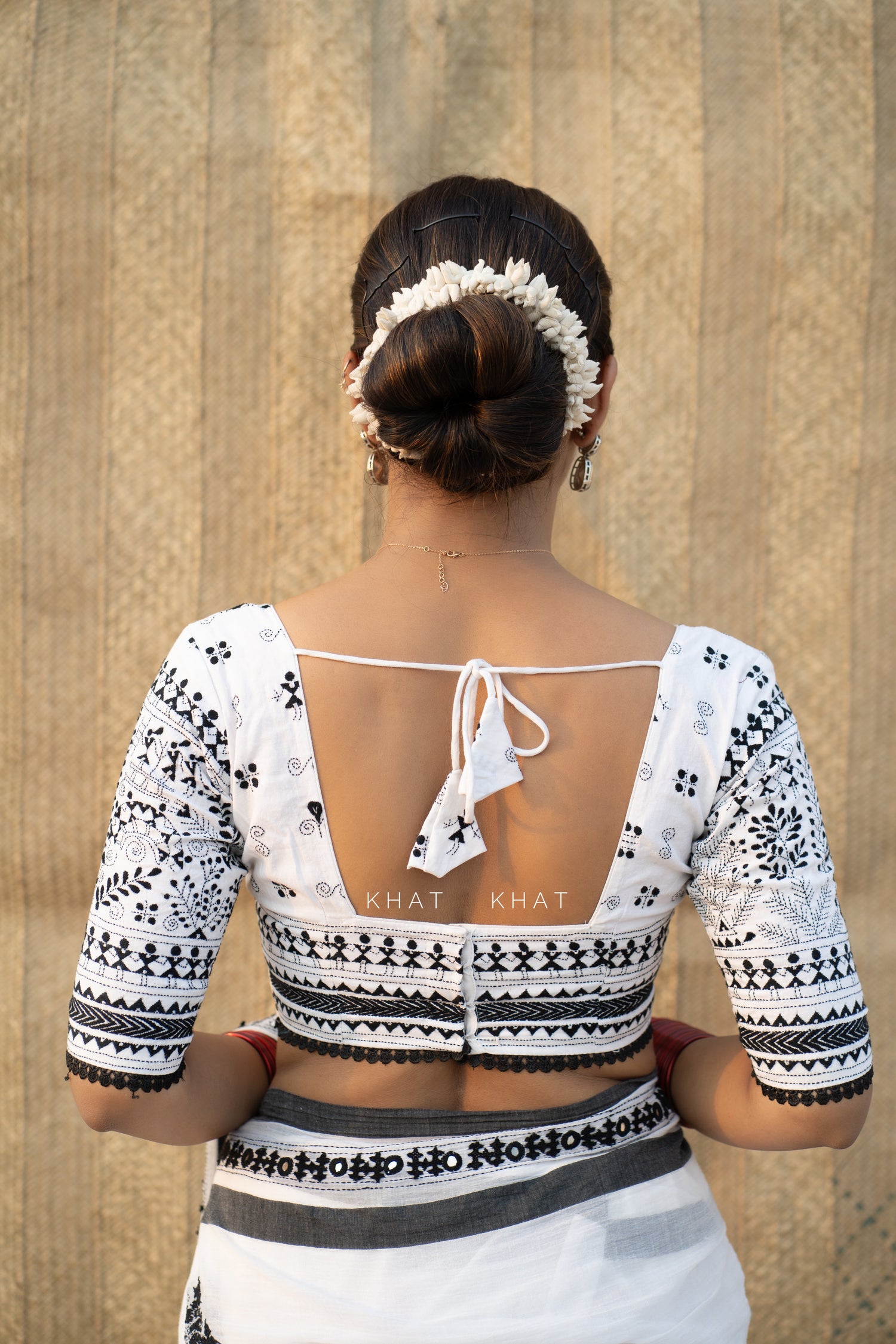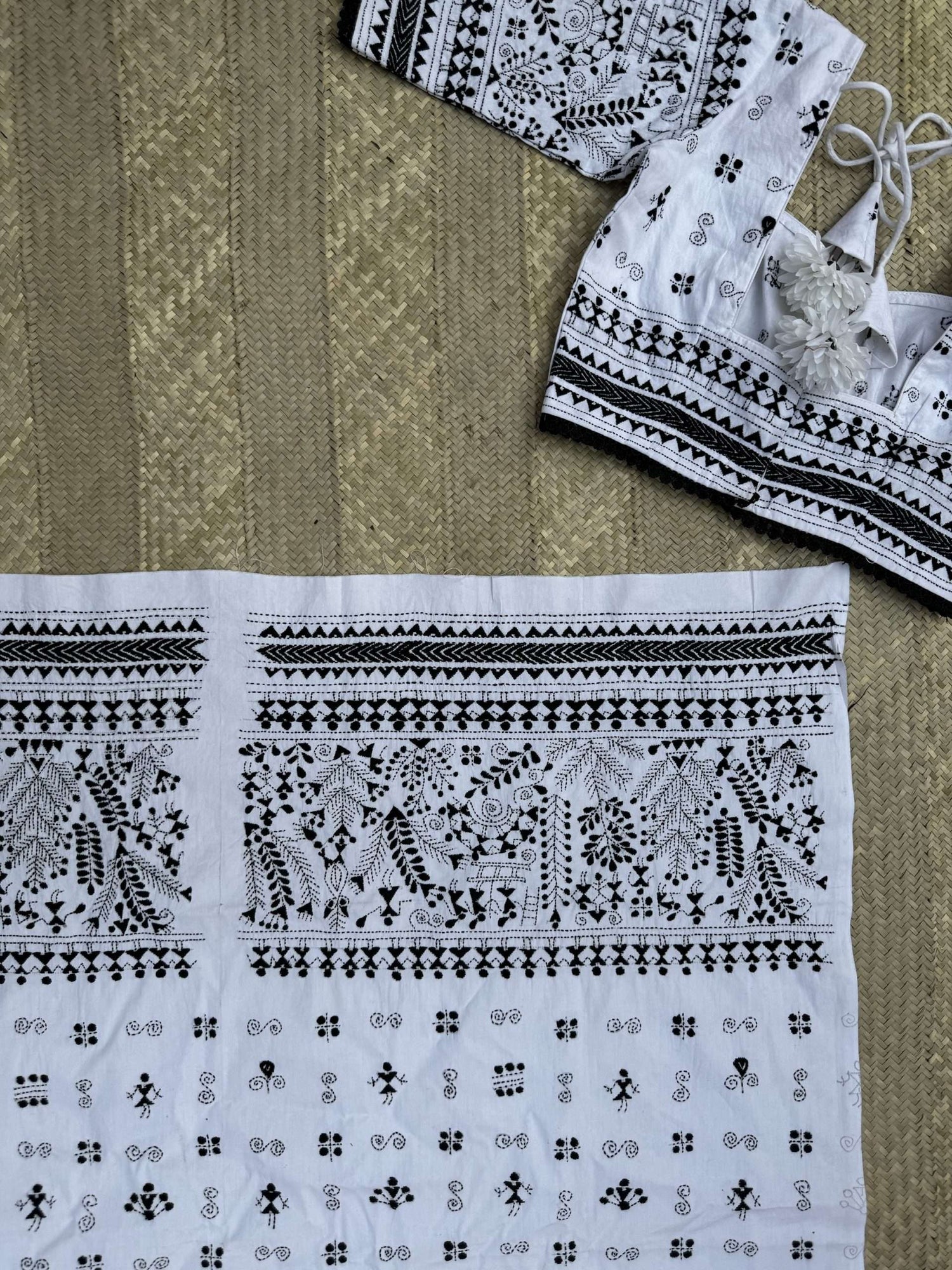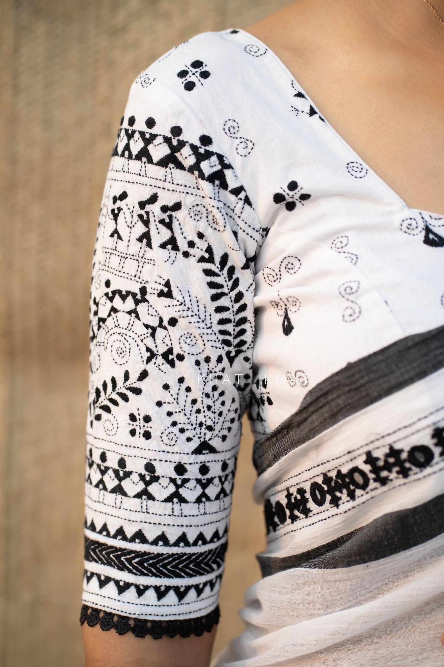 Colour : White (black kantha embroidery)