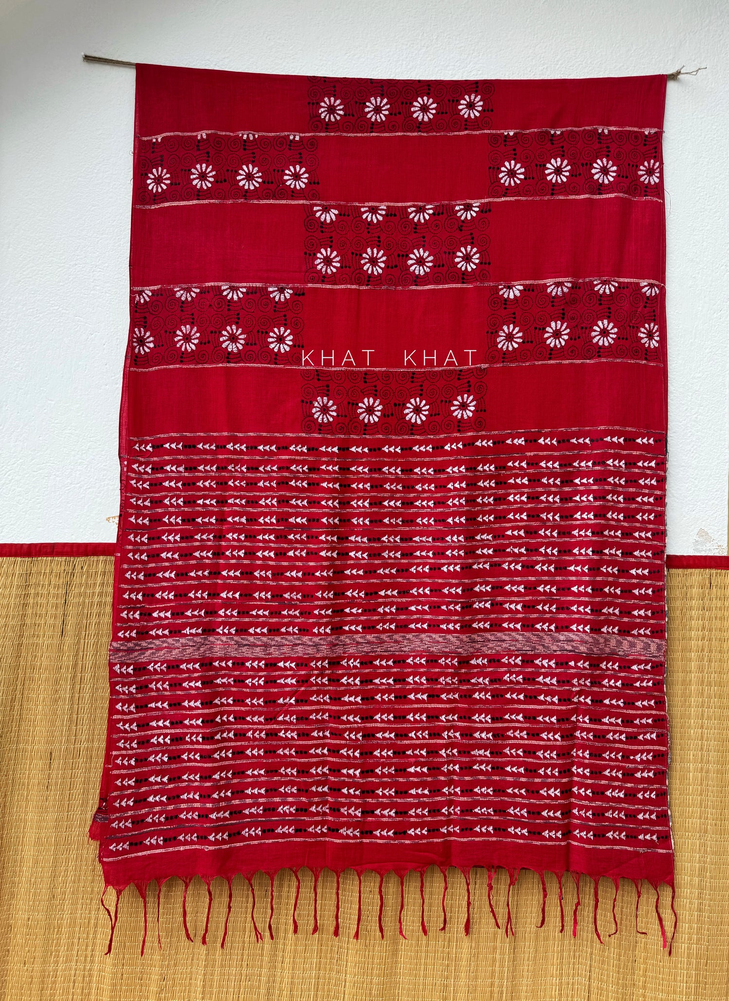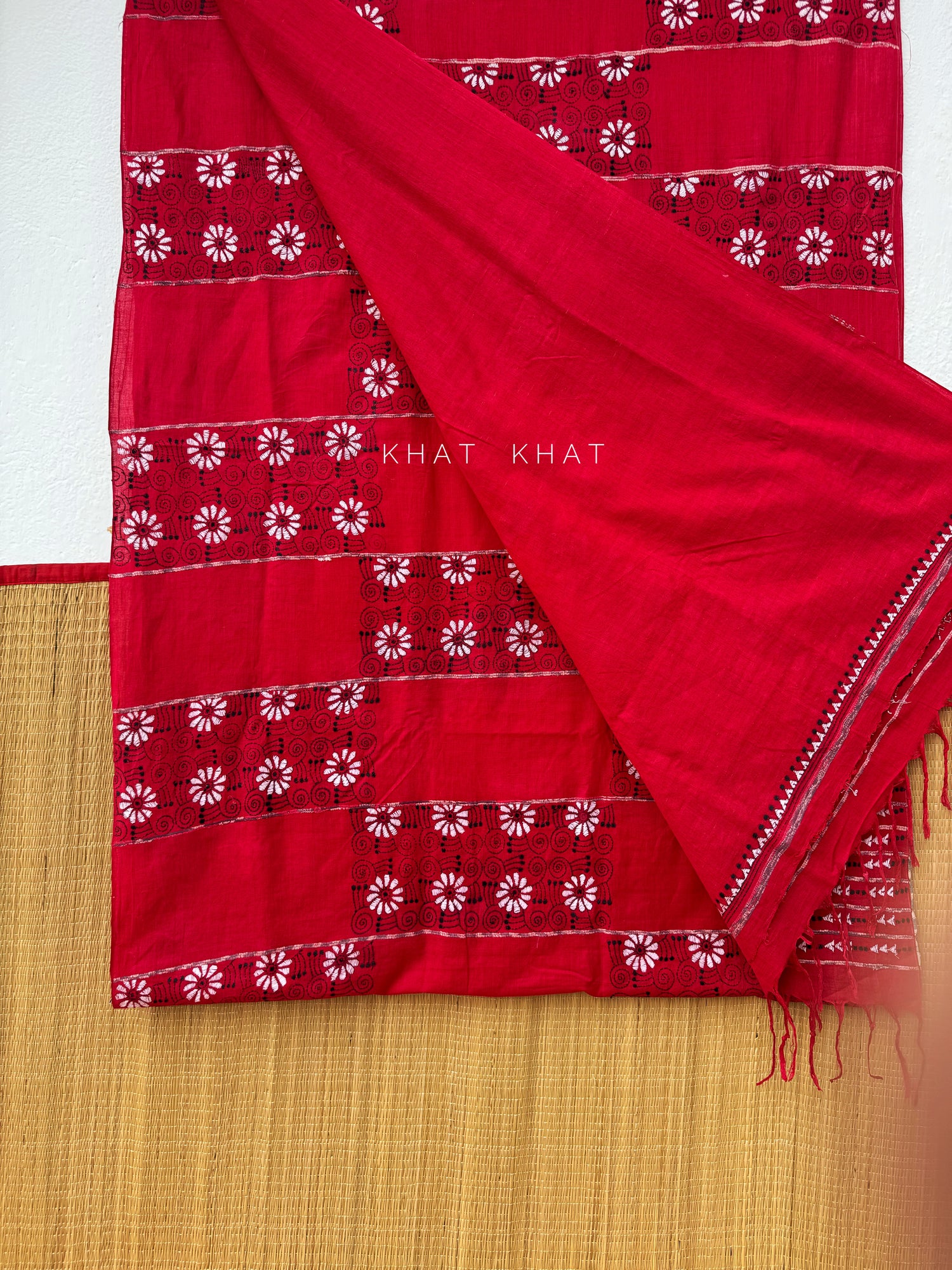 KHAT KHAT sarees are handcrafted using age-old weaving techniques passed down through generations. Each saree carries the essence of our artisans’ hard work and emotional connection to their craft, making every piece unique and full of character.