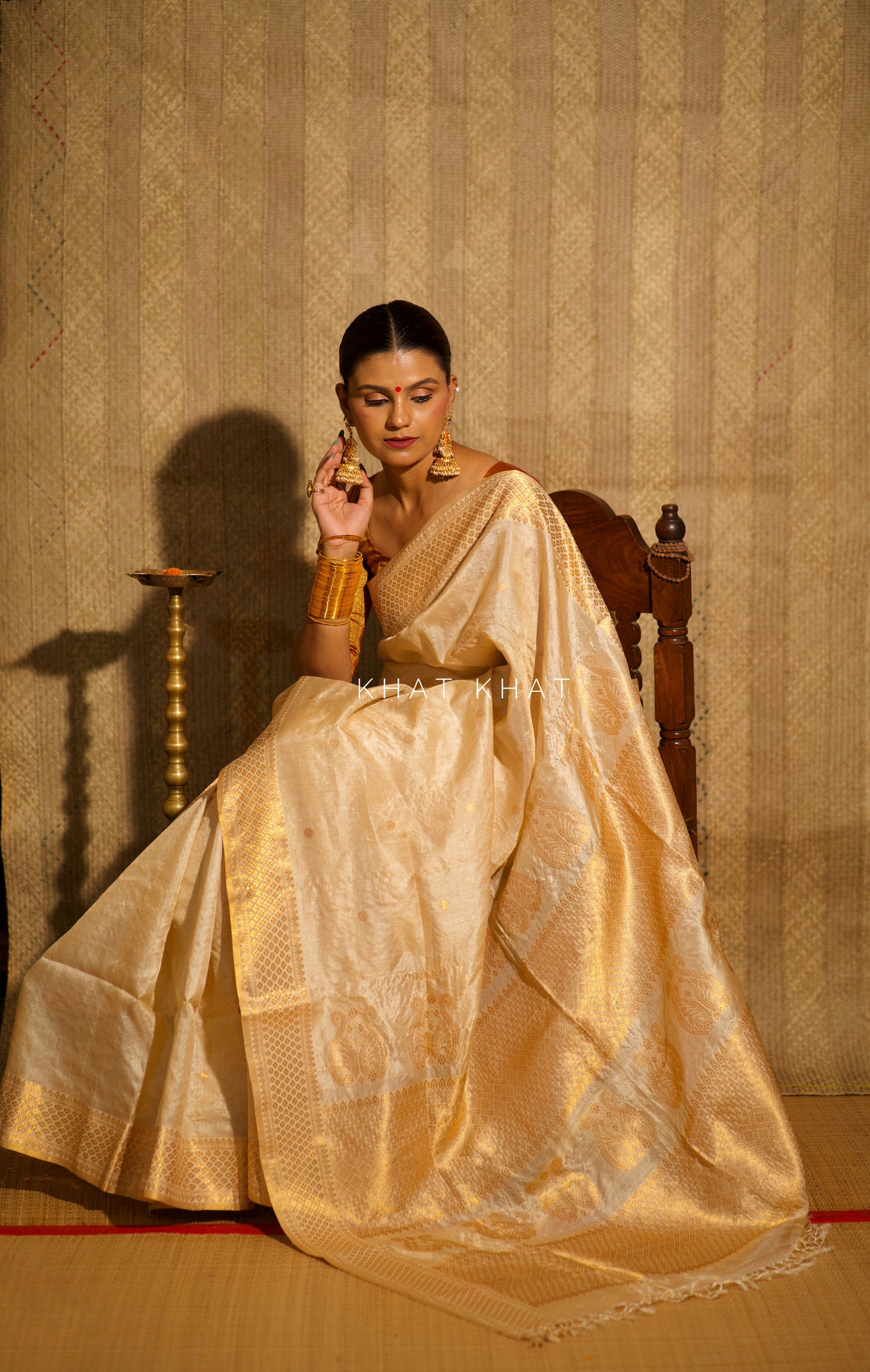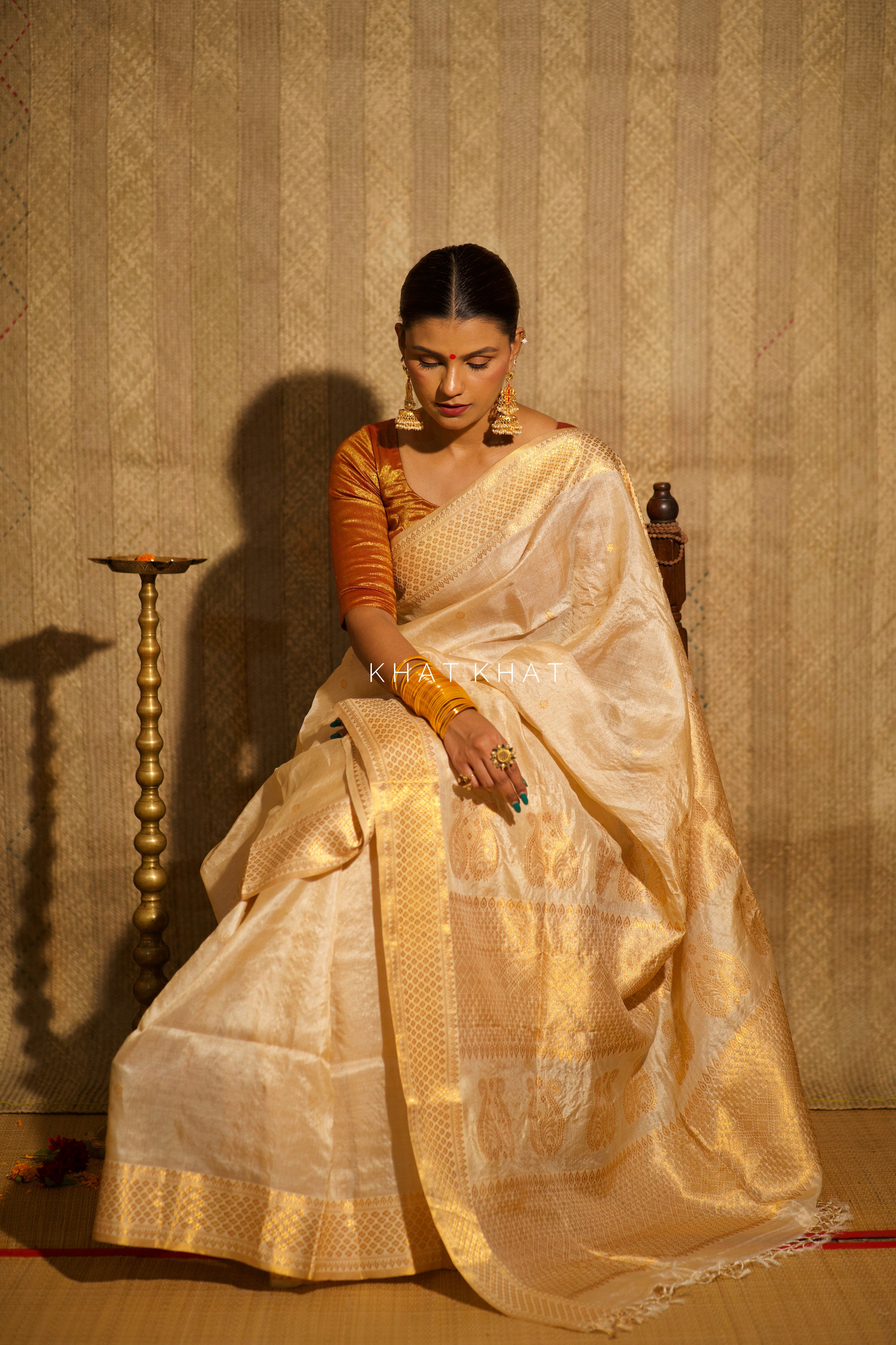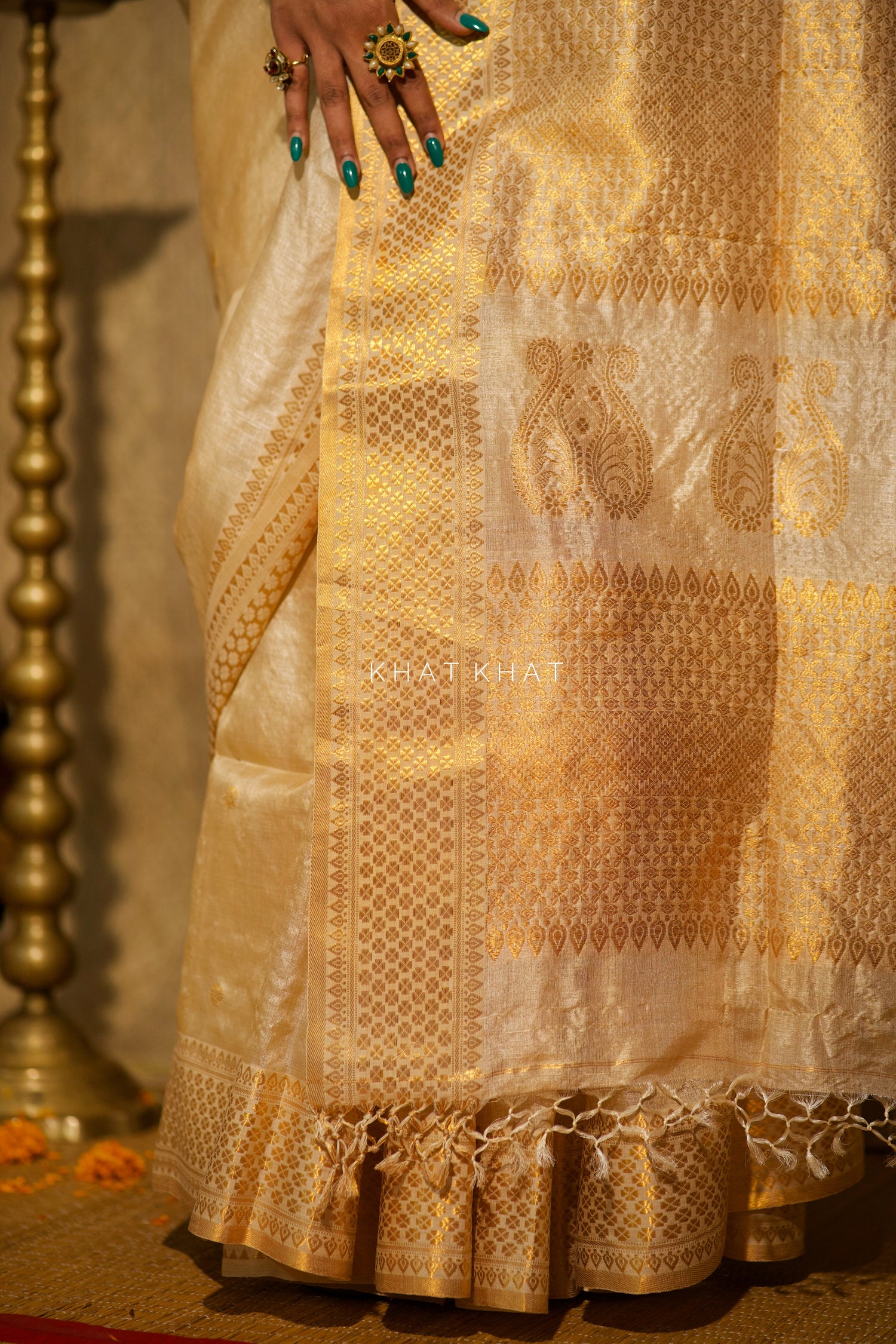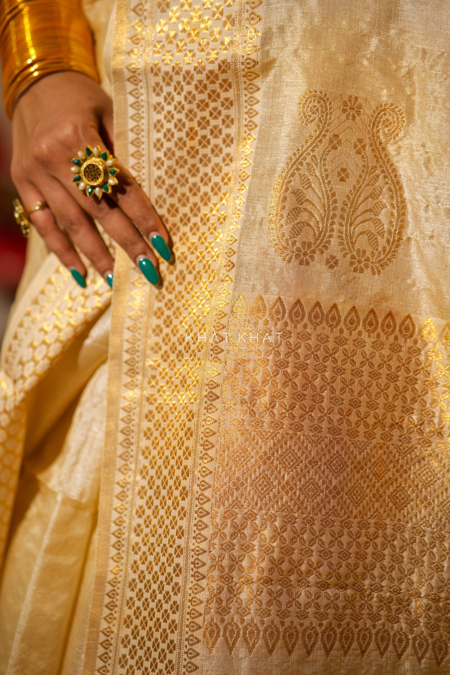 KHAT KHAT sarees are handcrafted using age-old weaving techniques passed down through generations. Each saree carries the essence of our artisans’ hard work and emotional connection to their craft, making every piece unique and full of character.