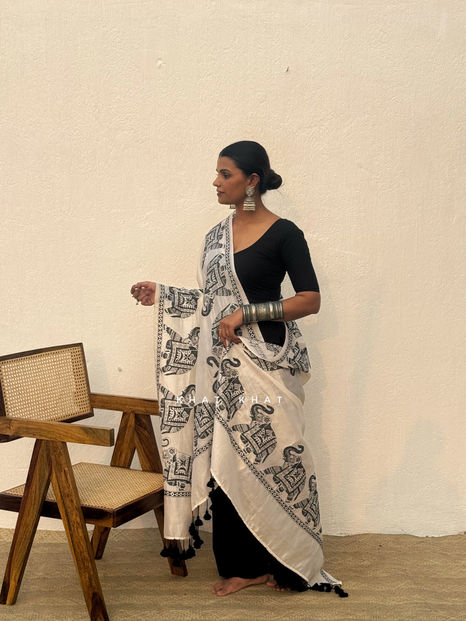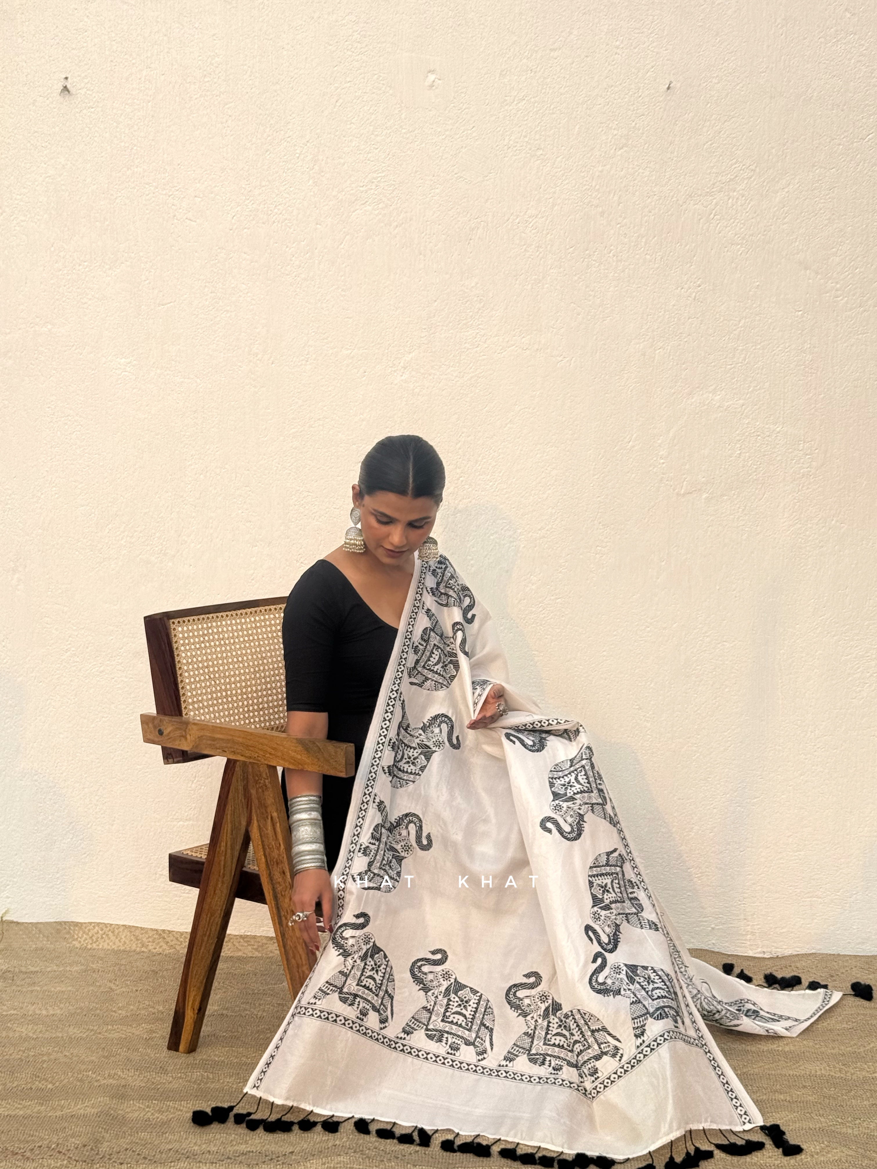 KHAT KHAT sarees are handcrafted using age-old weaving techniques passed down through generations. Each saree carries the essence of our artisans’ hard work and emotional connection to their craft, making every piece unique and full of character.