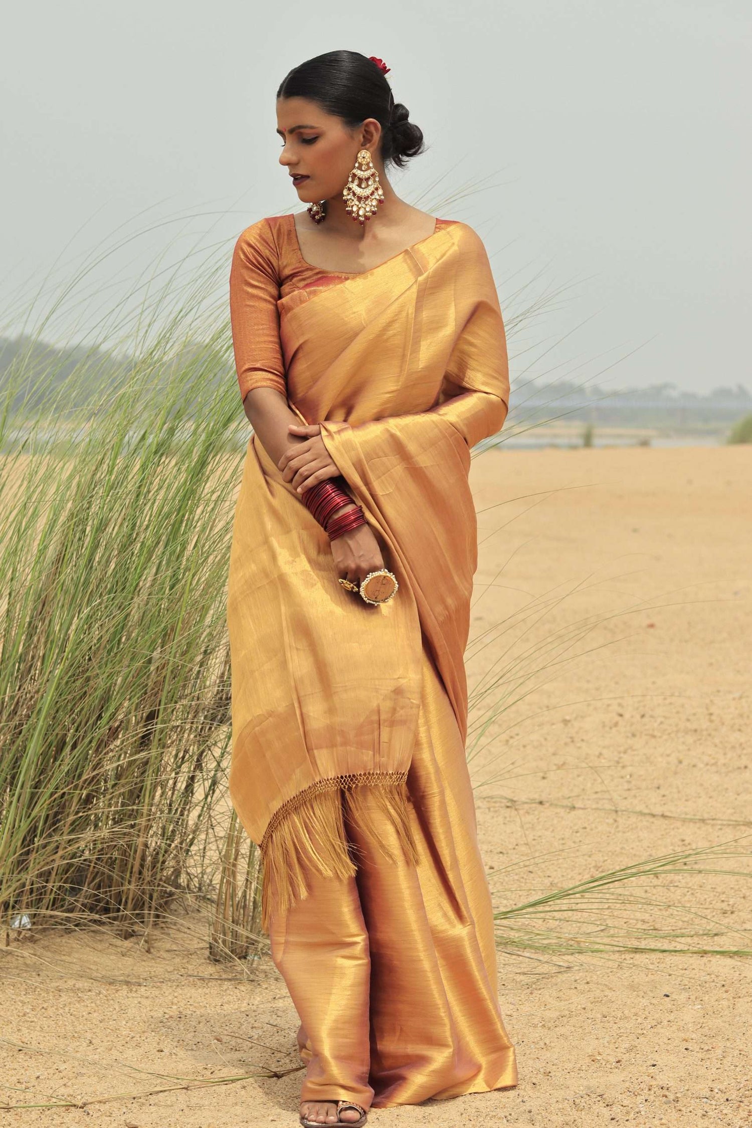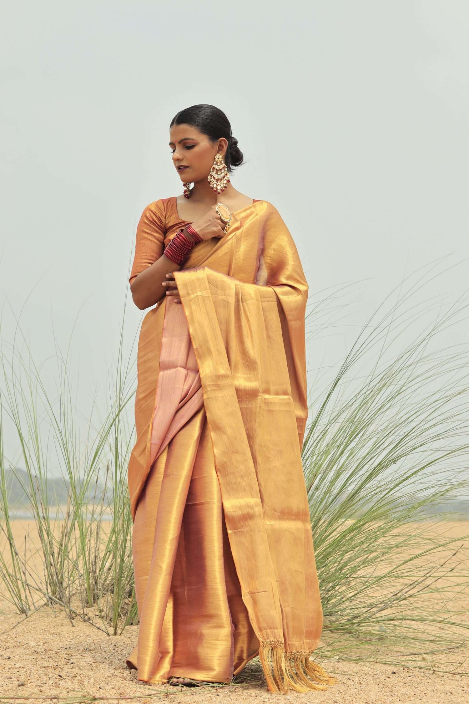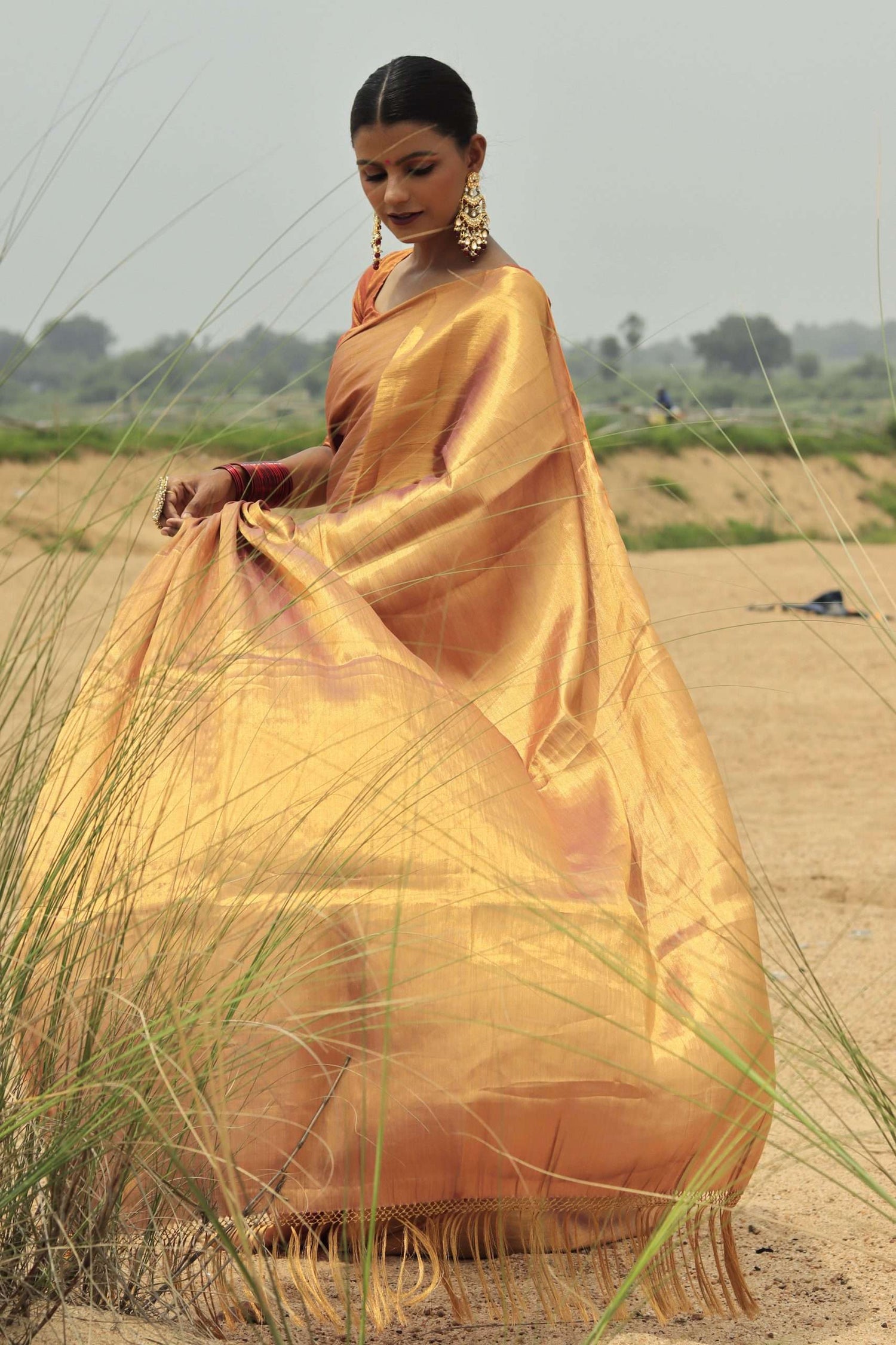 KHAT KHAT sarees are handcrafted using age-old weaving techniques passed down through generations. Each saree carries the essence of our artisans’ hard work and emotional connection to their craft, making every piece unique and full of character.