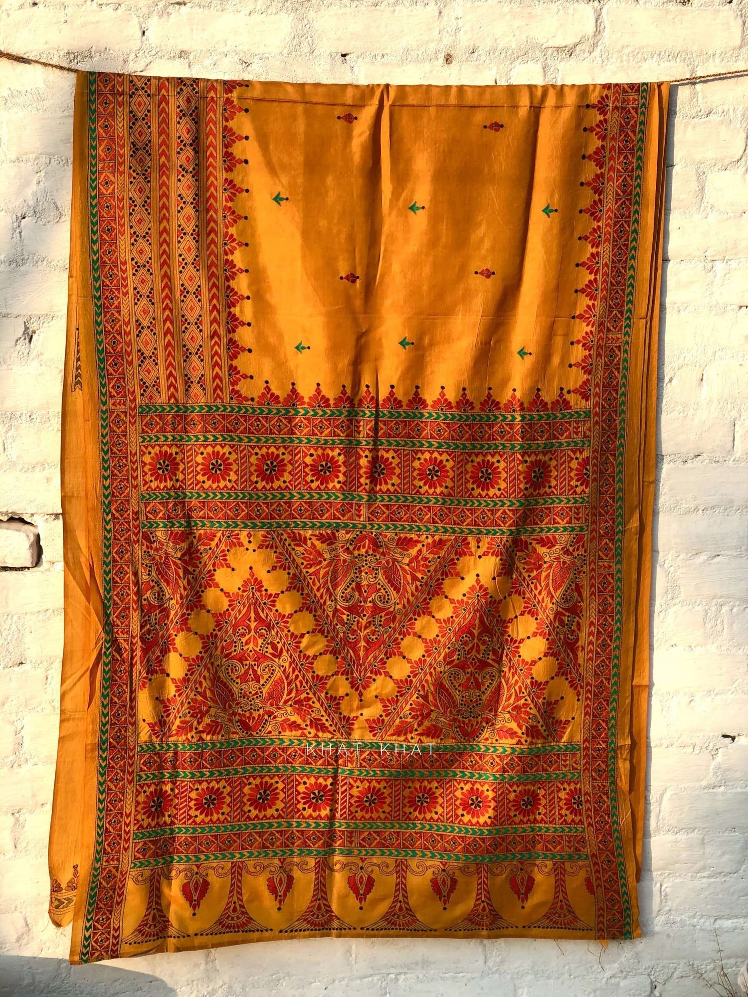 KHAT KHAT sarees are handcrafted using age-old weaving techniques passed down through generations. Each saree carries the essence of our artisans’ hard work and emotional connection to their craft, making every piece unique and full of character.