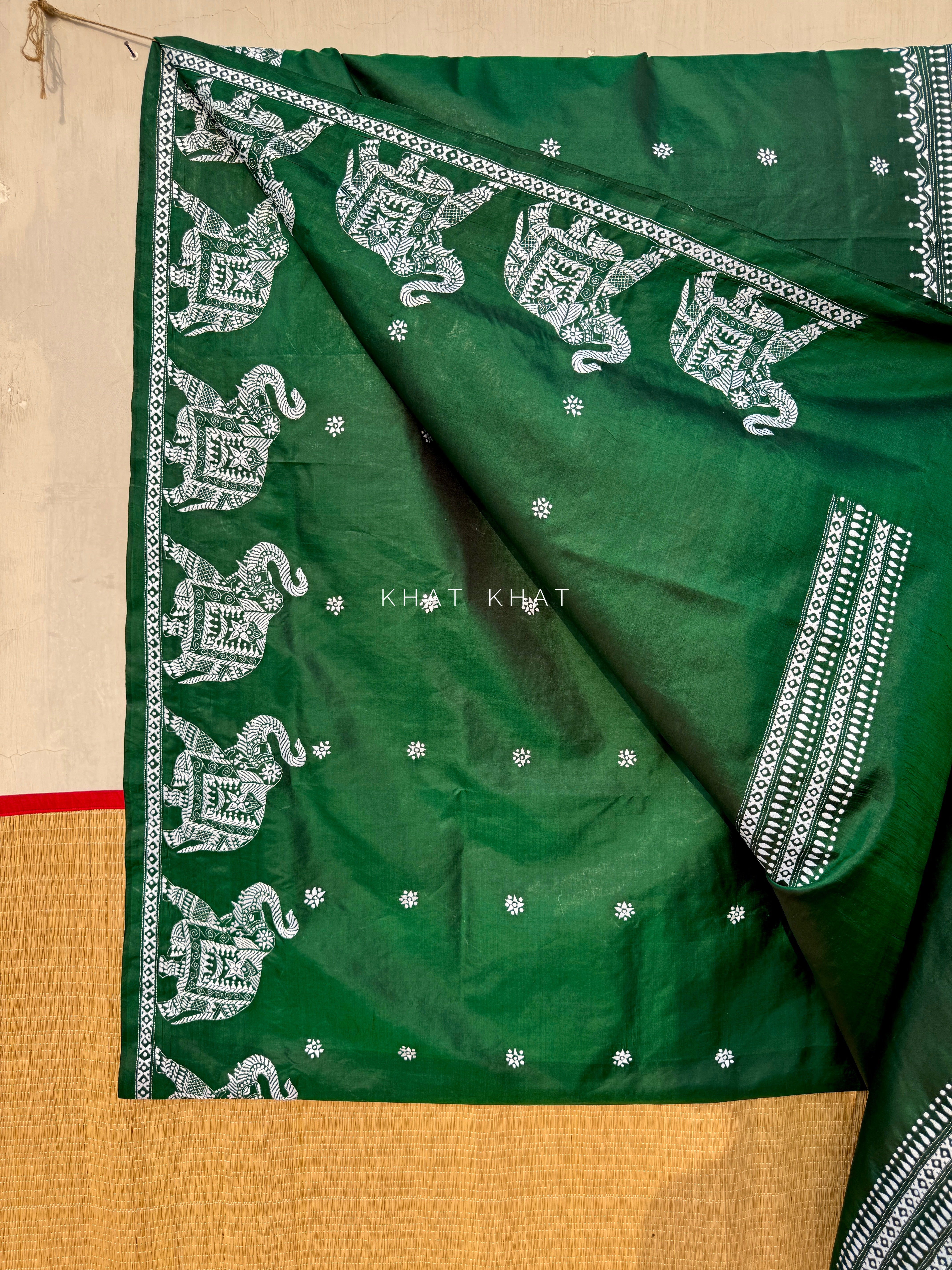 KHAT KHAT sarees are handcrafted using age-old weaving techniques passed down through generations. Each saree carries the essence of our artisans’ hard work and emotional connection to their craft, making every piece unique and full of character.