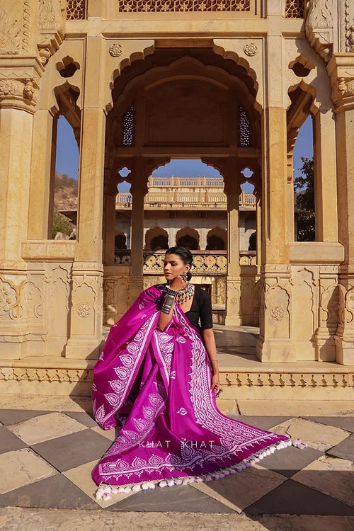 KHAT KHAT sarees are handcrafted using age-old weaving techniques passed down through generations. Each saree carries the essence of our artisans’ hard work and emotional connection to their craft, making every piece unique and full of character.