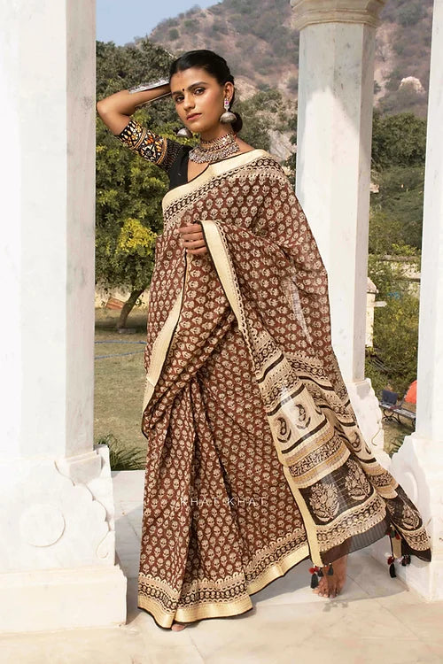 KHAT KHAT sarees are handcrafted using age-old weaving techniques passed down through generations. Each saree carries the essence of our artisans’ hard work and emotional connection to their craft, making every piece unique and full of character.