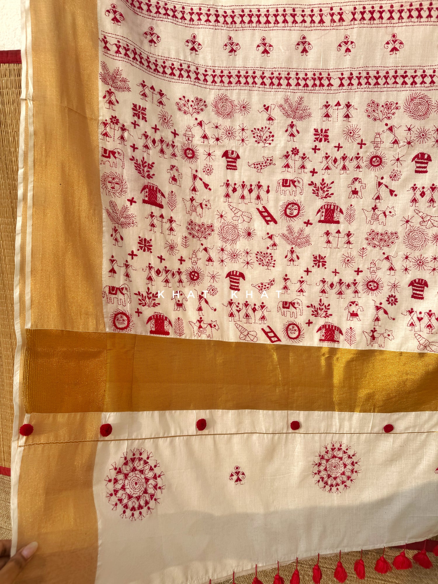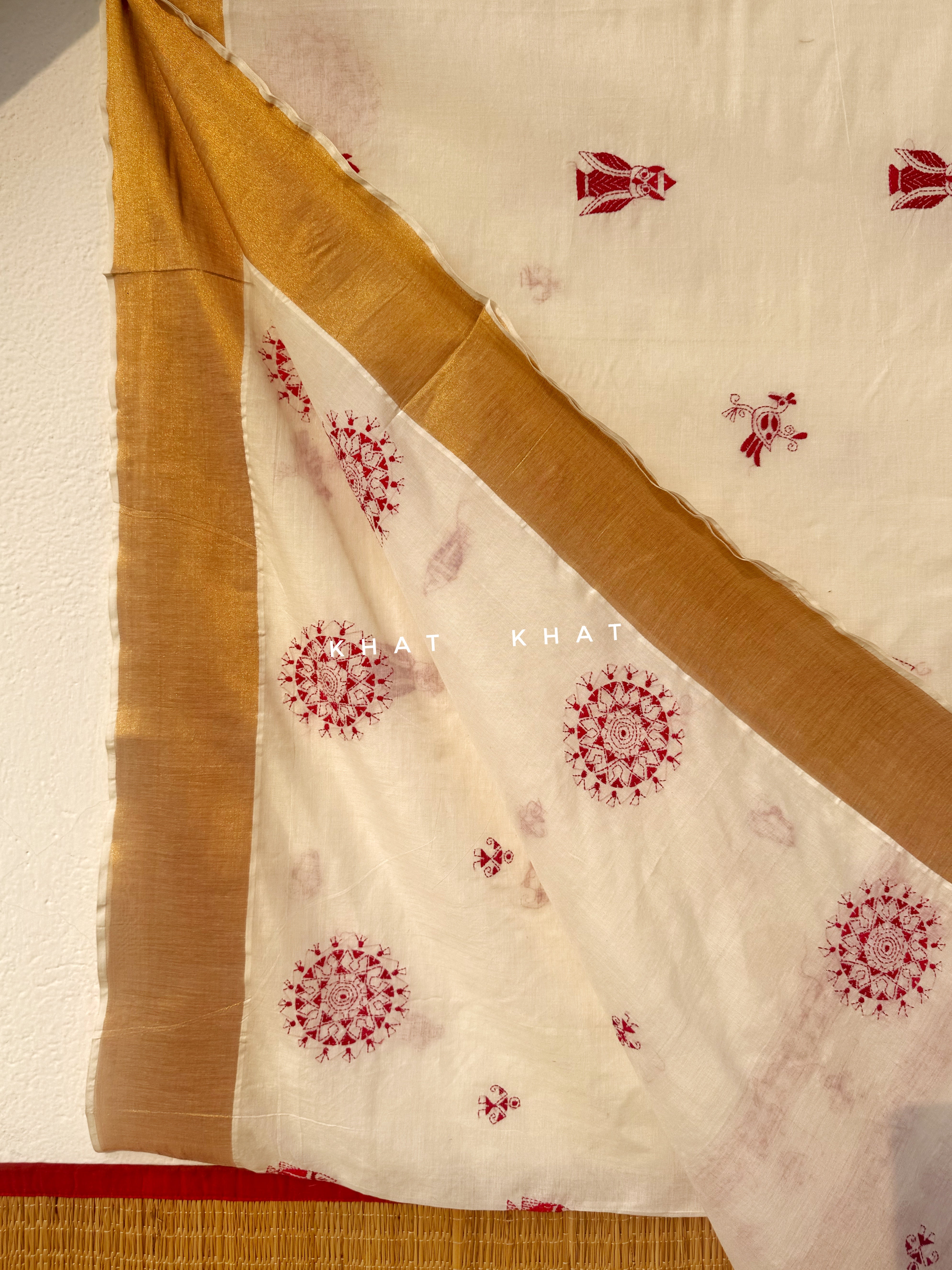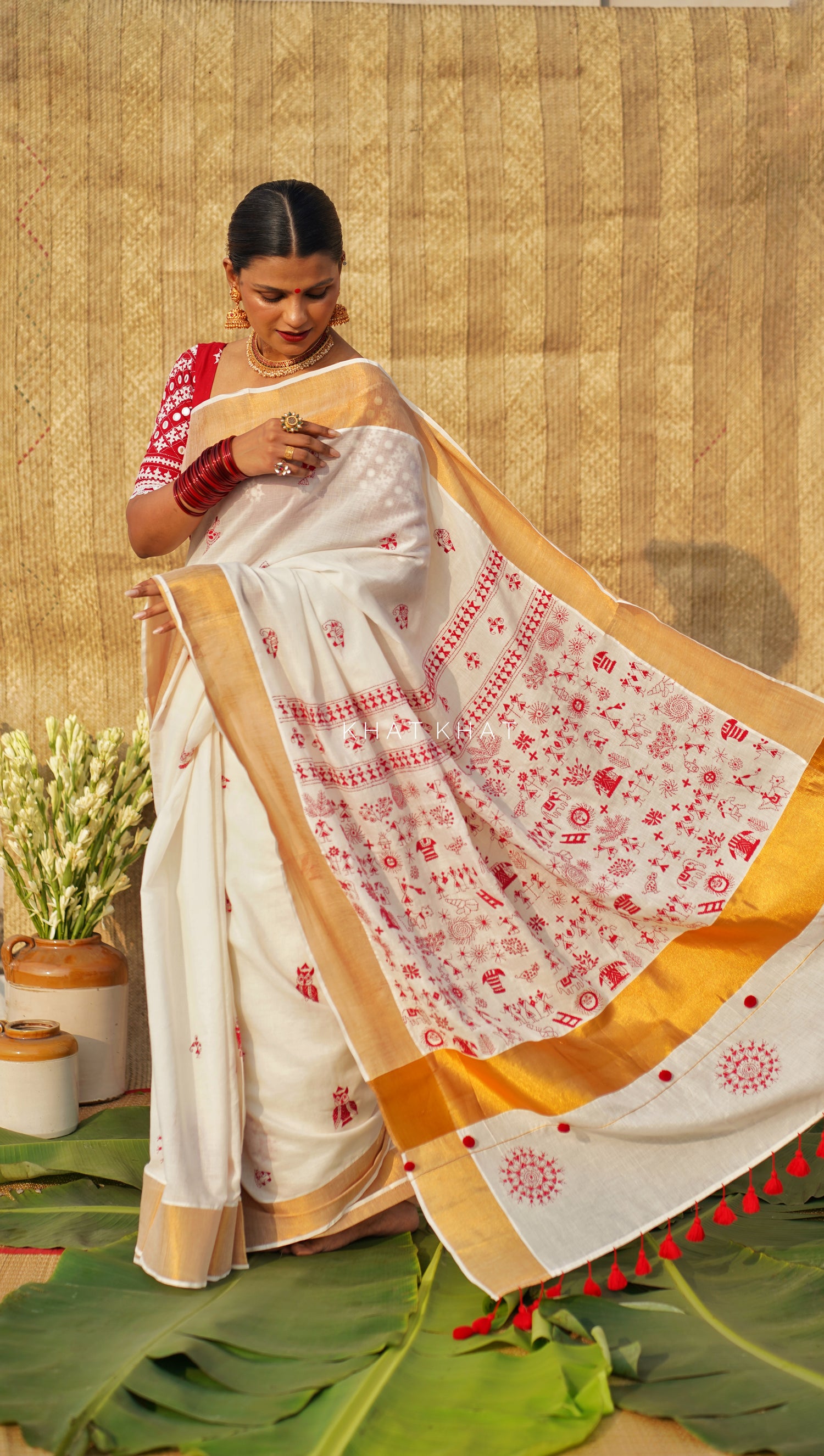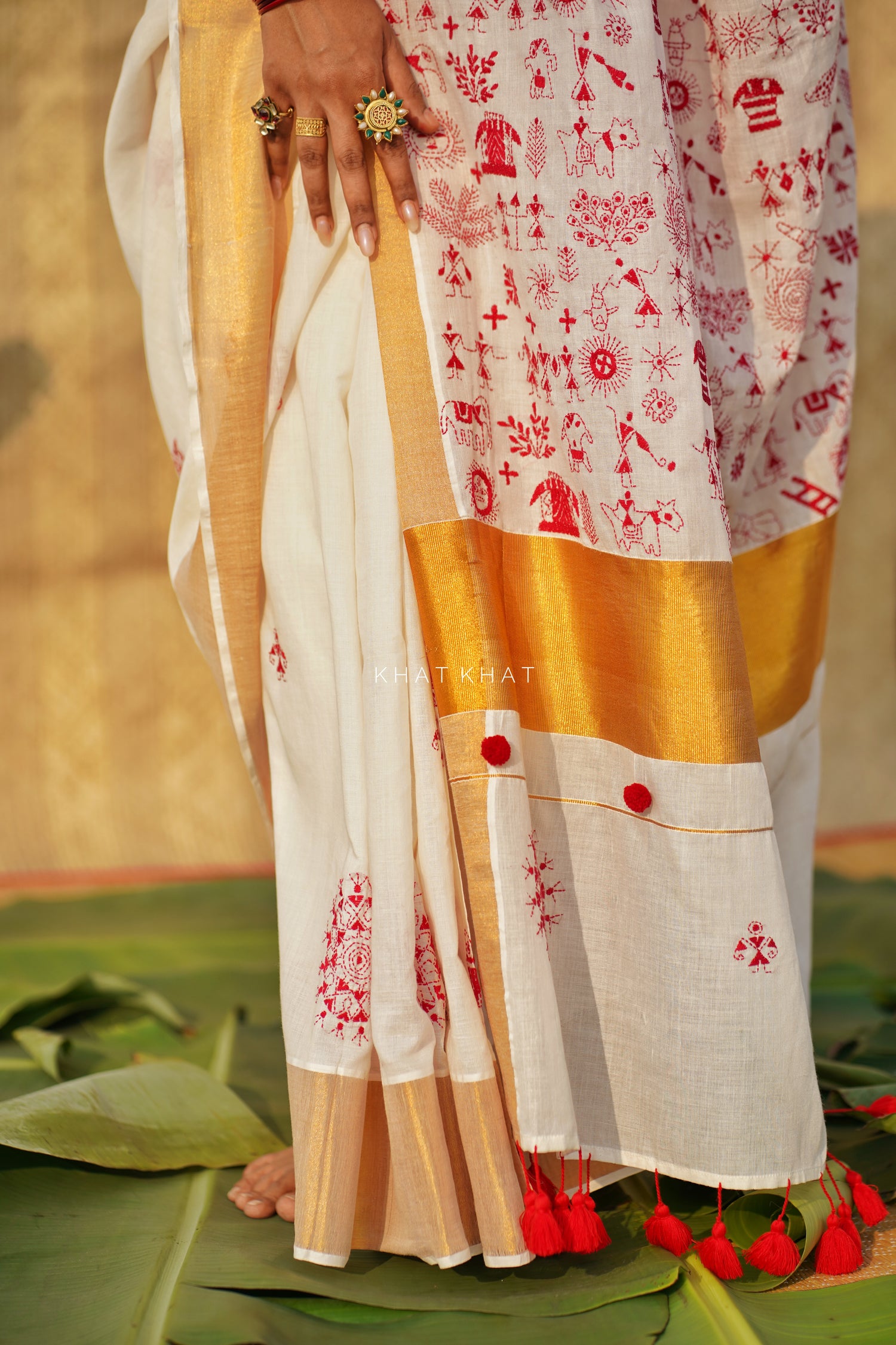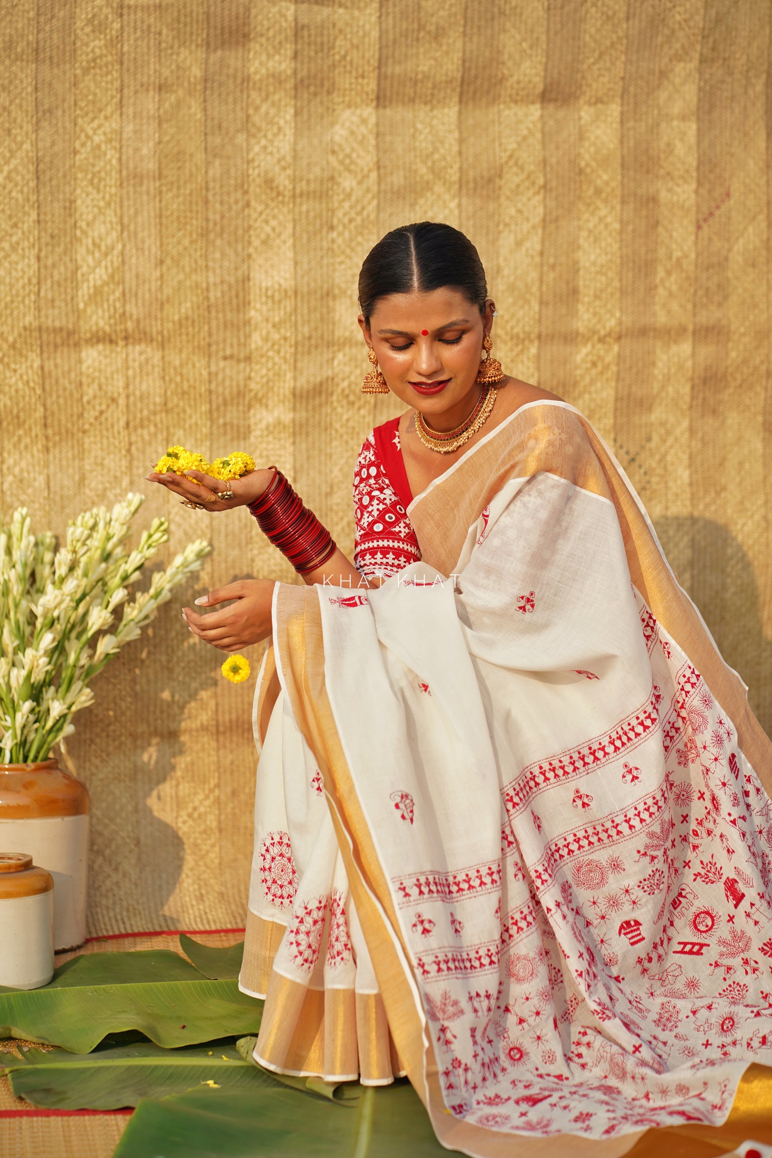 KHAT KHAT sarees are handcrafted using age-old weaving techniques passed down through generations. Each saree carries the essence of our artisans’ hard work and emotional connection to their craft, making every piece unique and full of character.