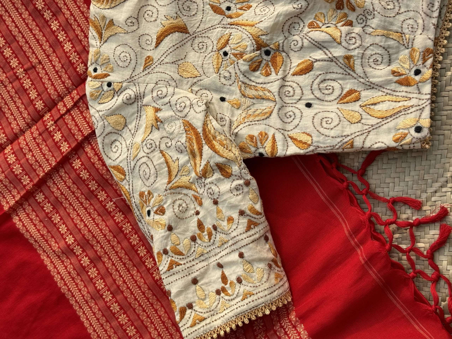 Our sarees are made from completely organic fabrics such as pure cotton, silk, and linen. Every piece is handwoven by indigenous artisans, ensuring a blend of tradition, quality, and sustainability.