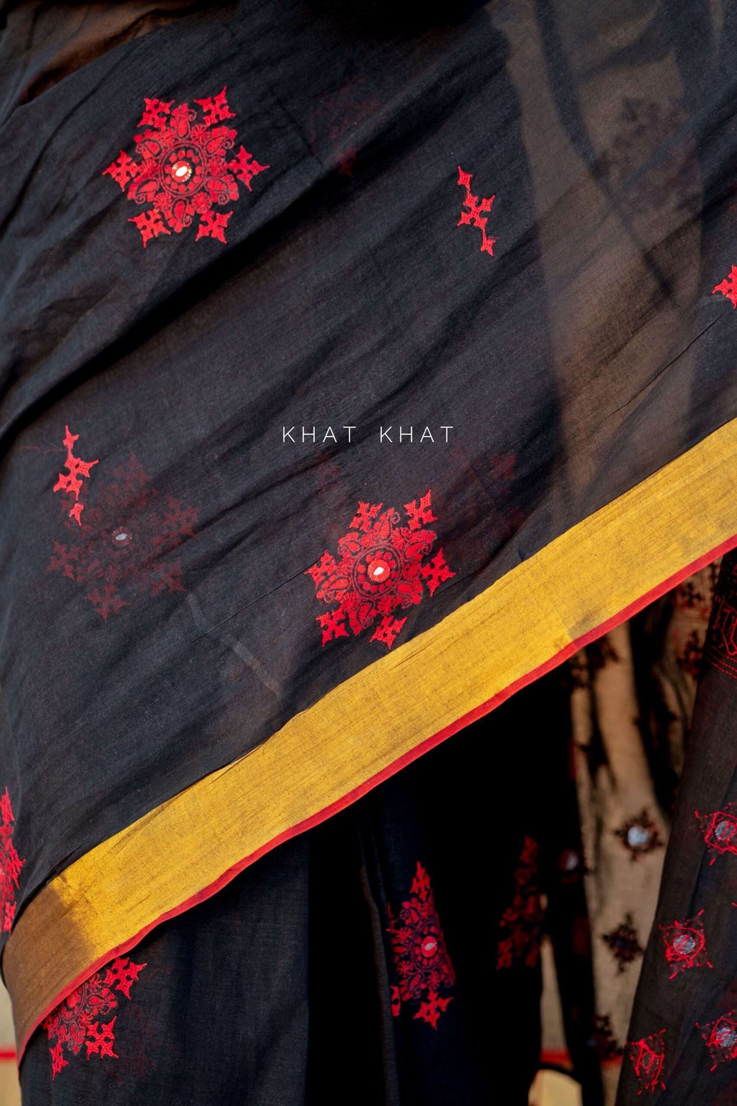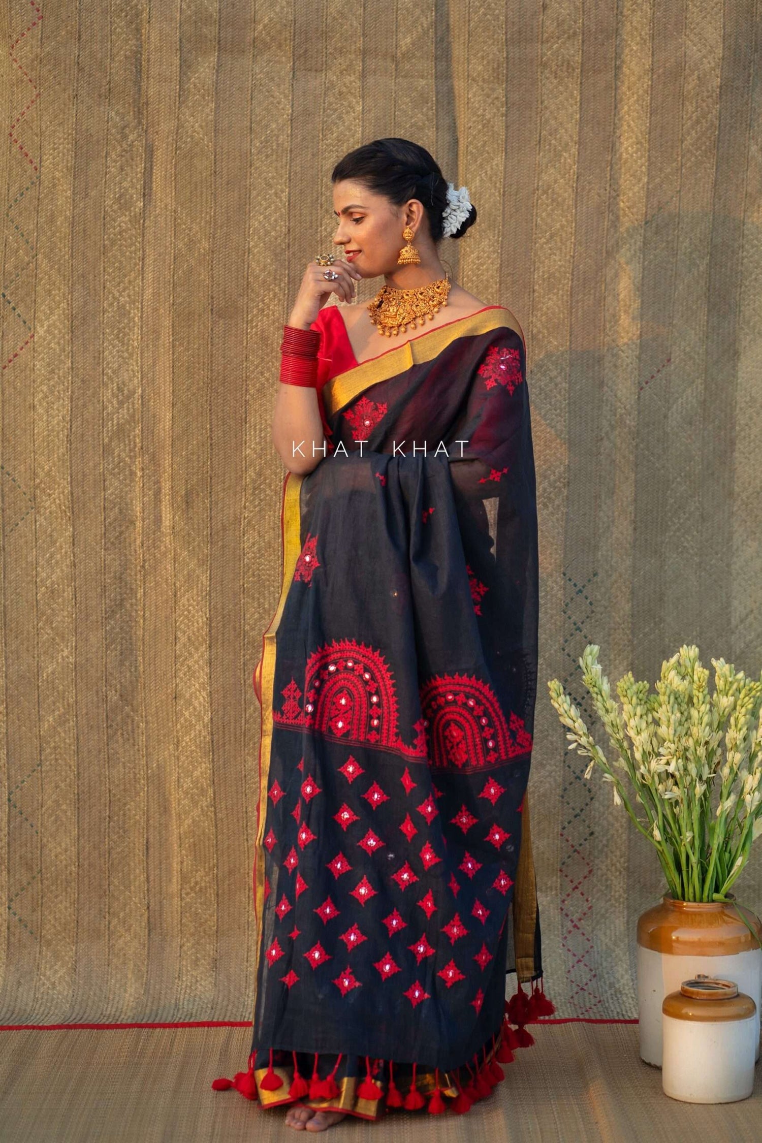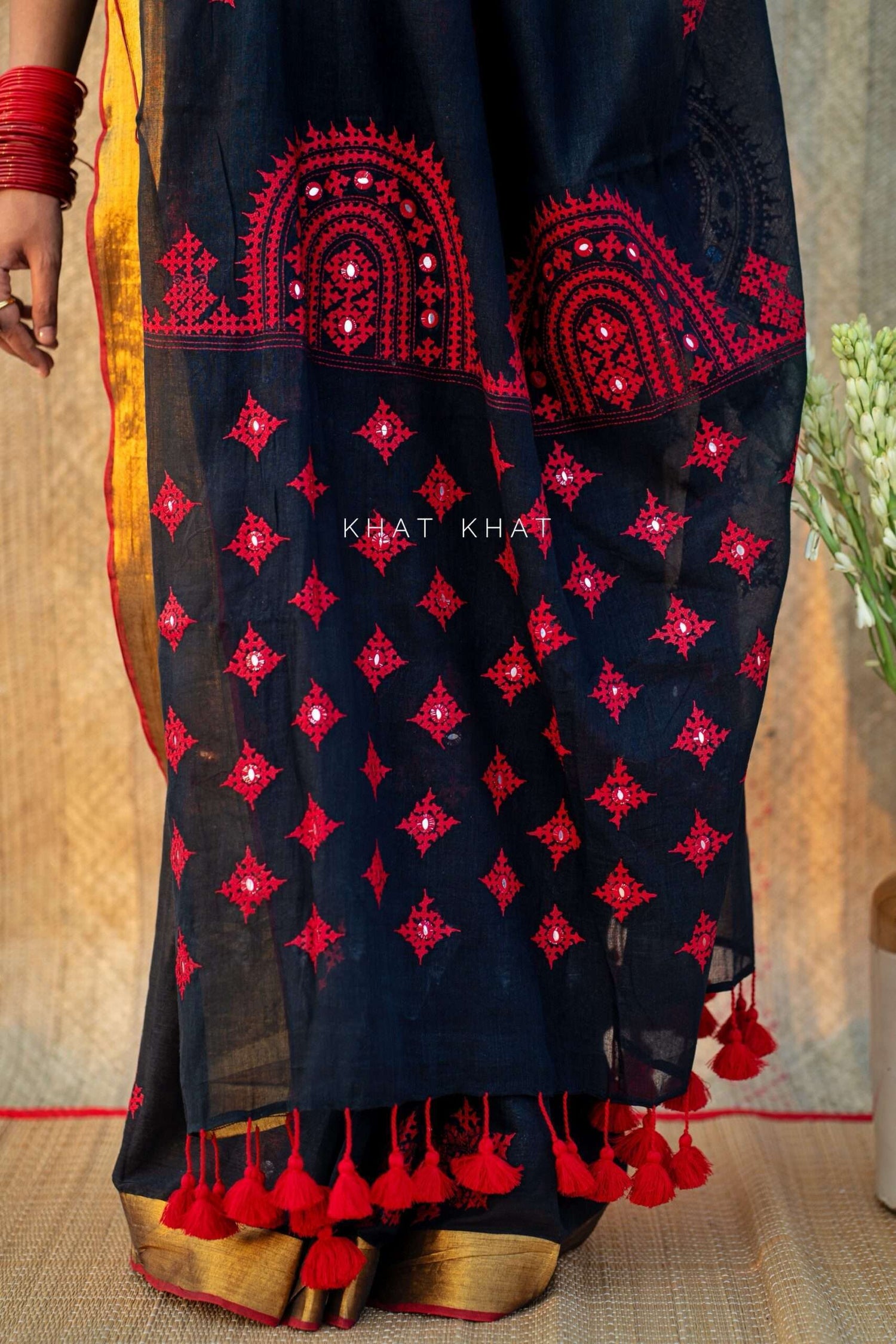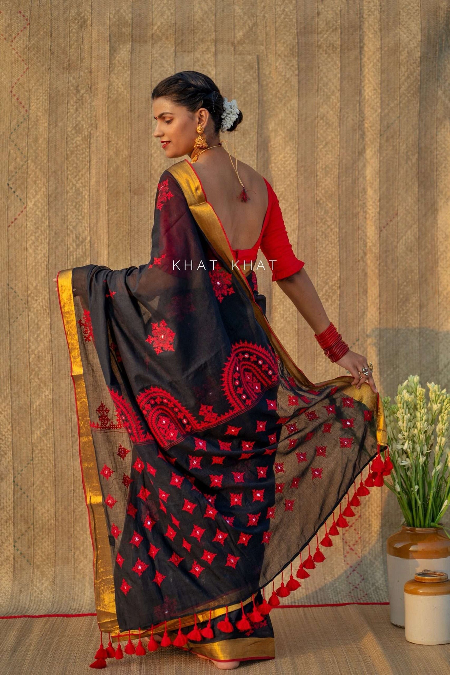 KHAT KHAT sarees are handcrafted using age-old weaving techniques passed down through generations. Each saree carries the essence of our artisans’ hard work and emotional connection to their craft, making every piece unique and full of character.