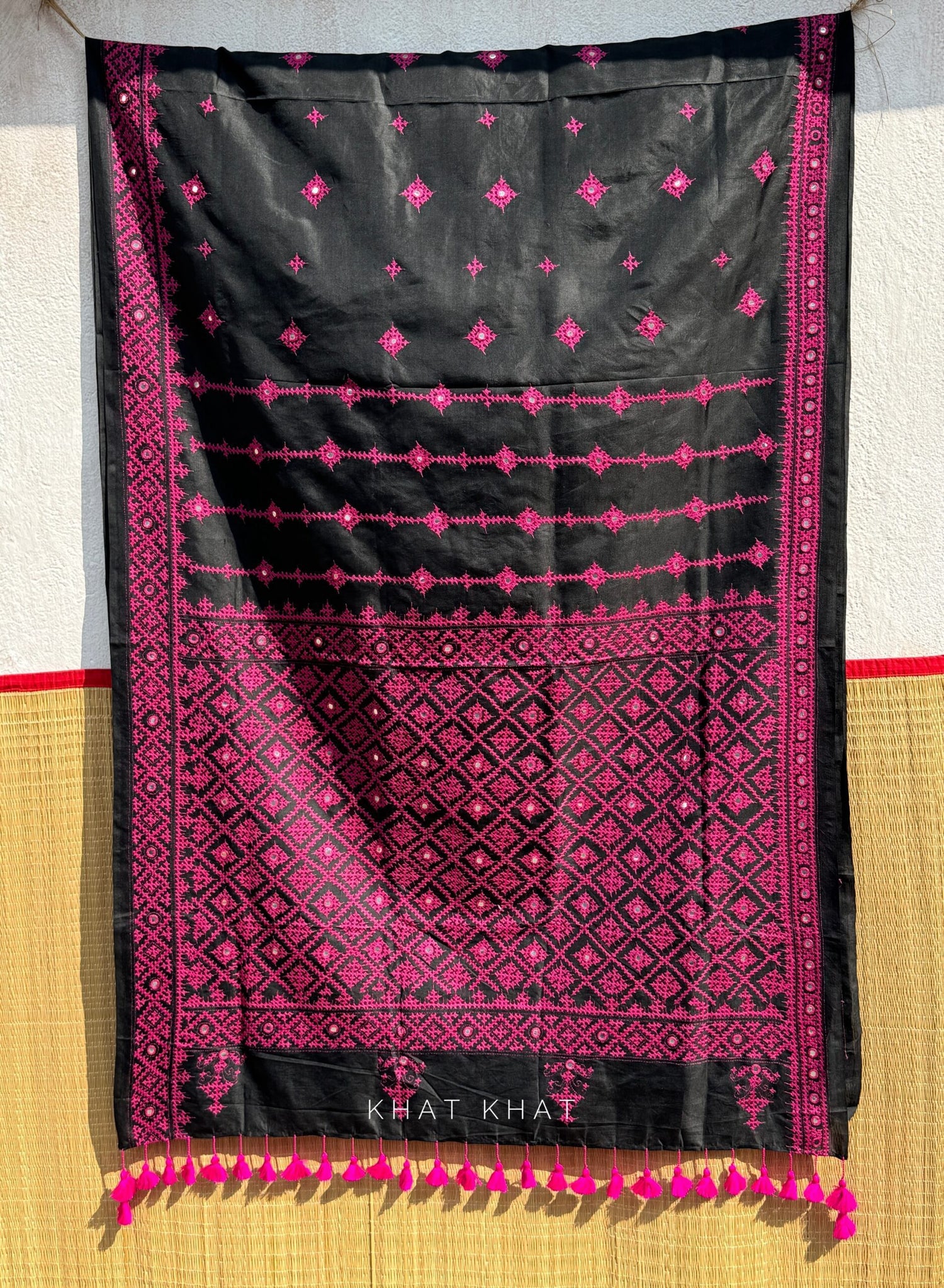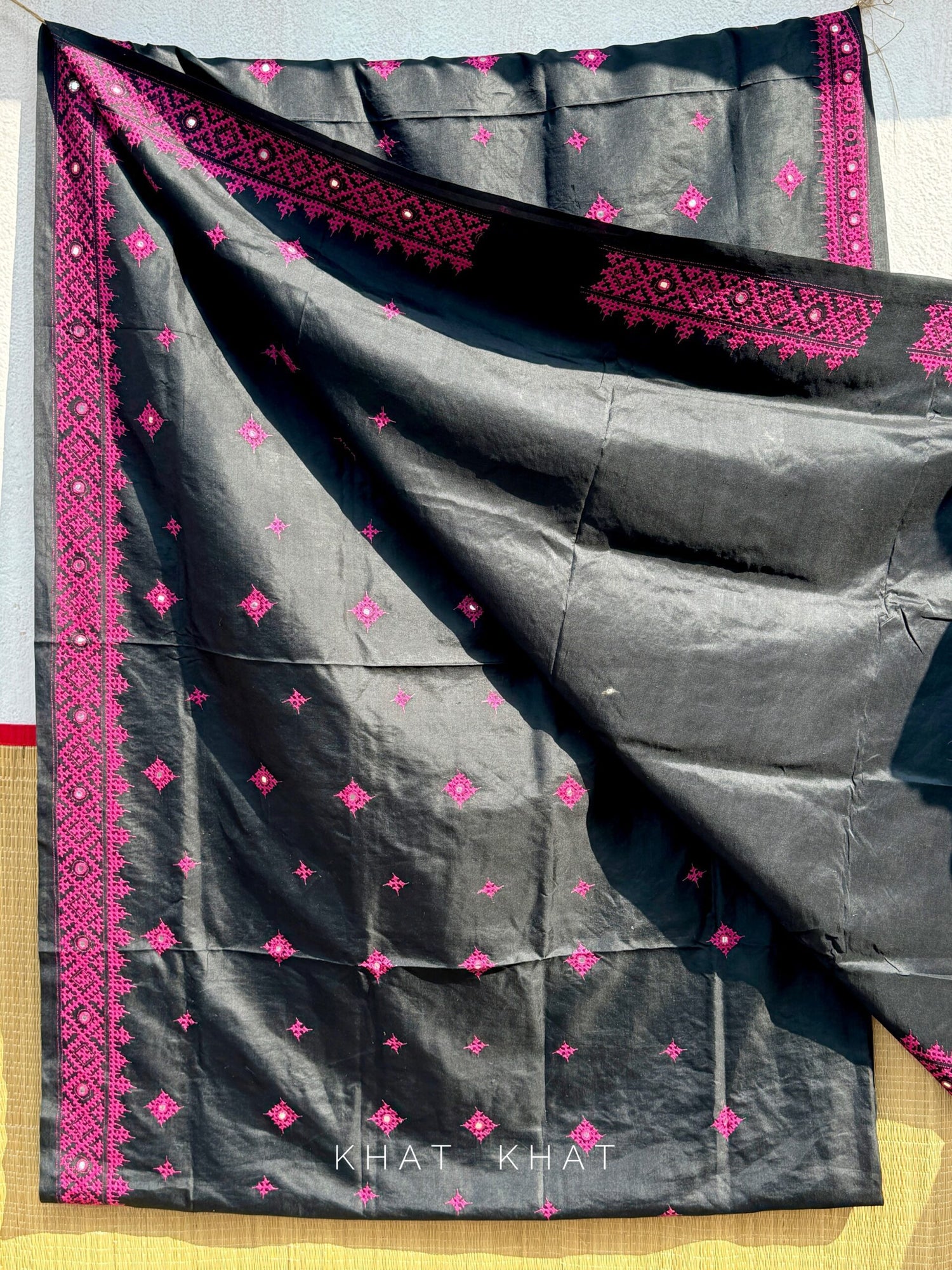 KHAT KHAT sarees are handcrafted using age-old weaving techniques passed down through generations. Each saree carries the essence of our artisans’ hard work and emotional connection to their craft, making every piece unique and full of character.