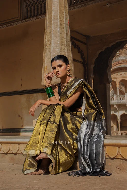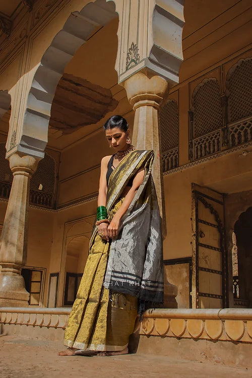 KHAT KHAT sarees are handcrafted using age-old weaving techniques passed down through generations. Each saree carries the essence of our artisans’ hard work and emotional connection to their craft, making every piece unique and full of character.