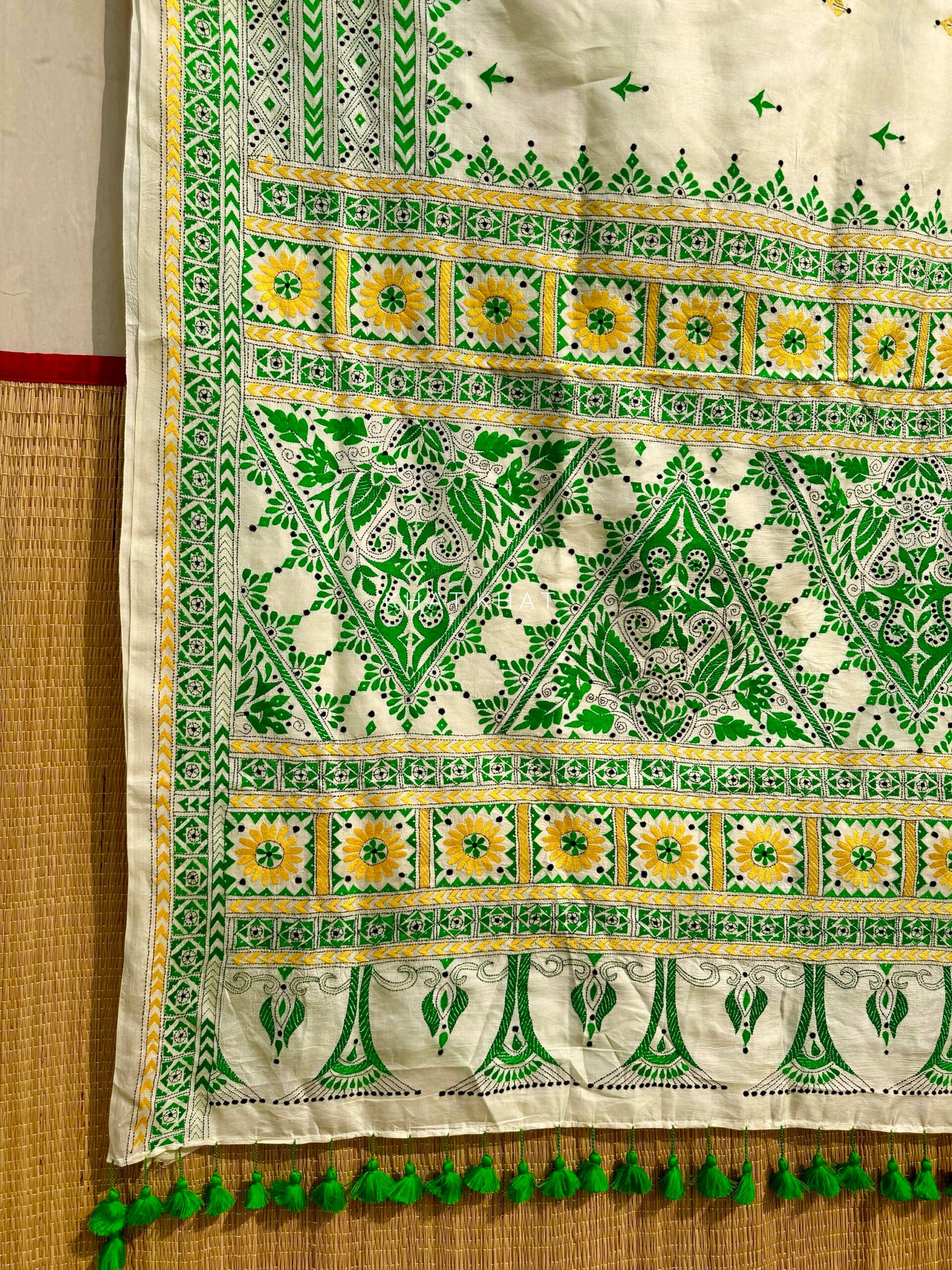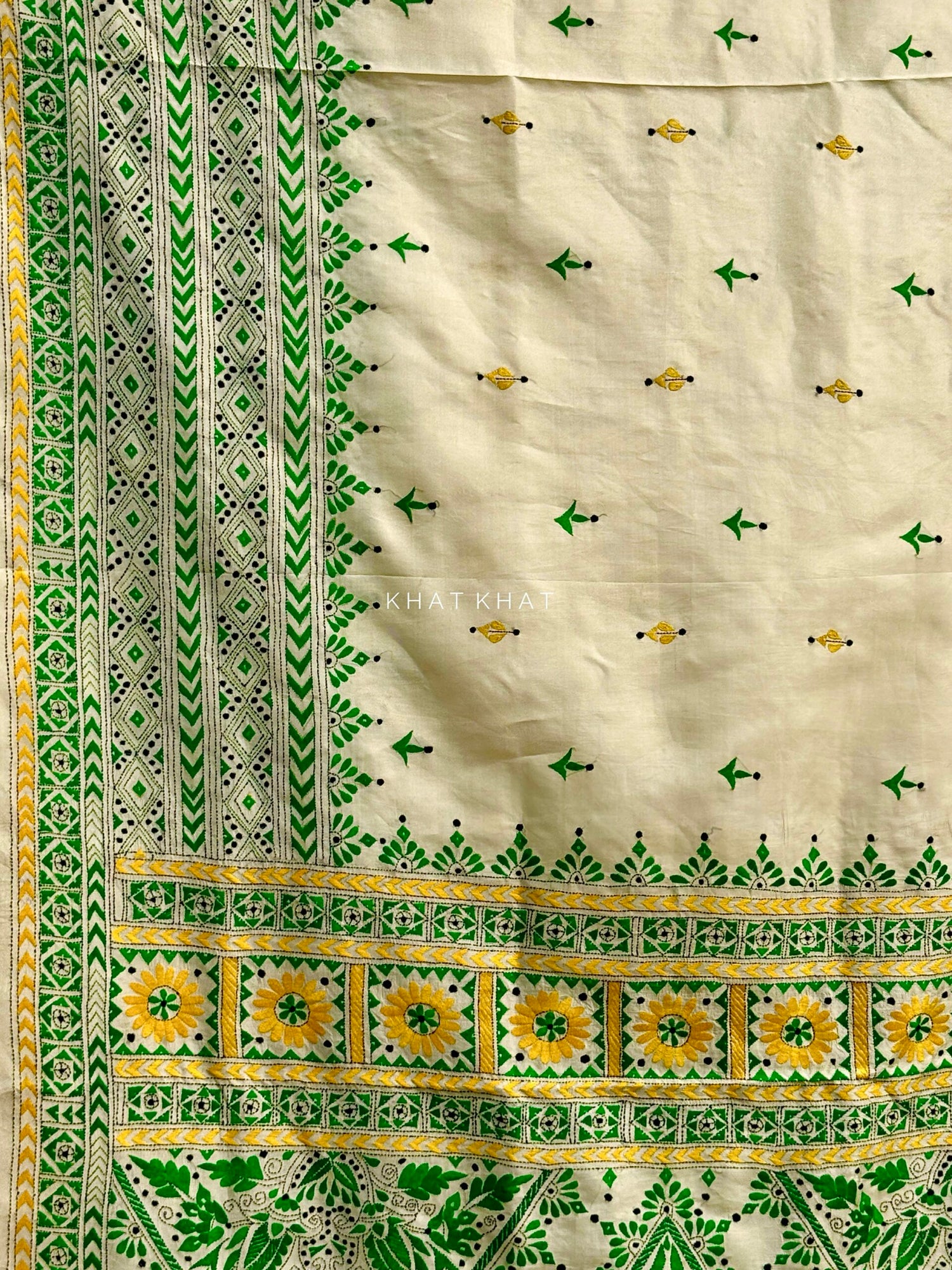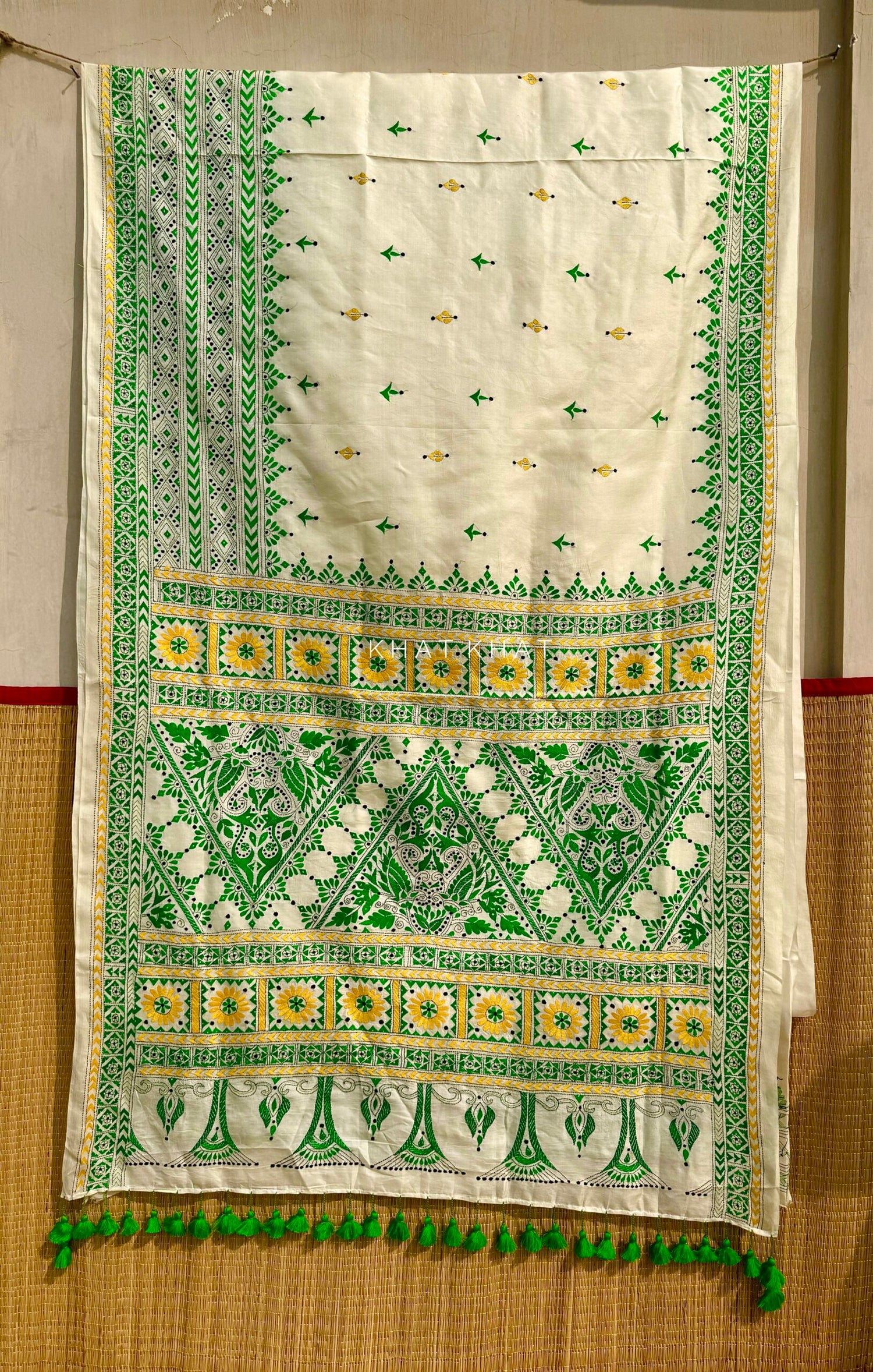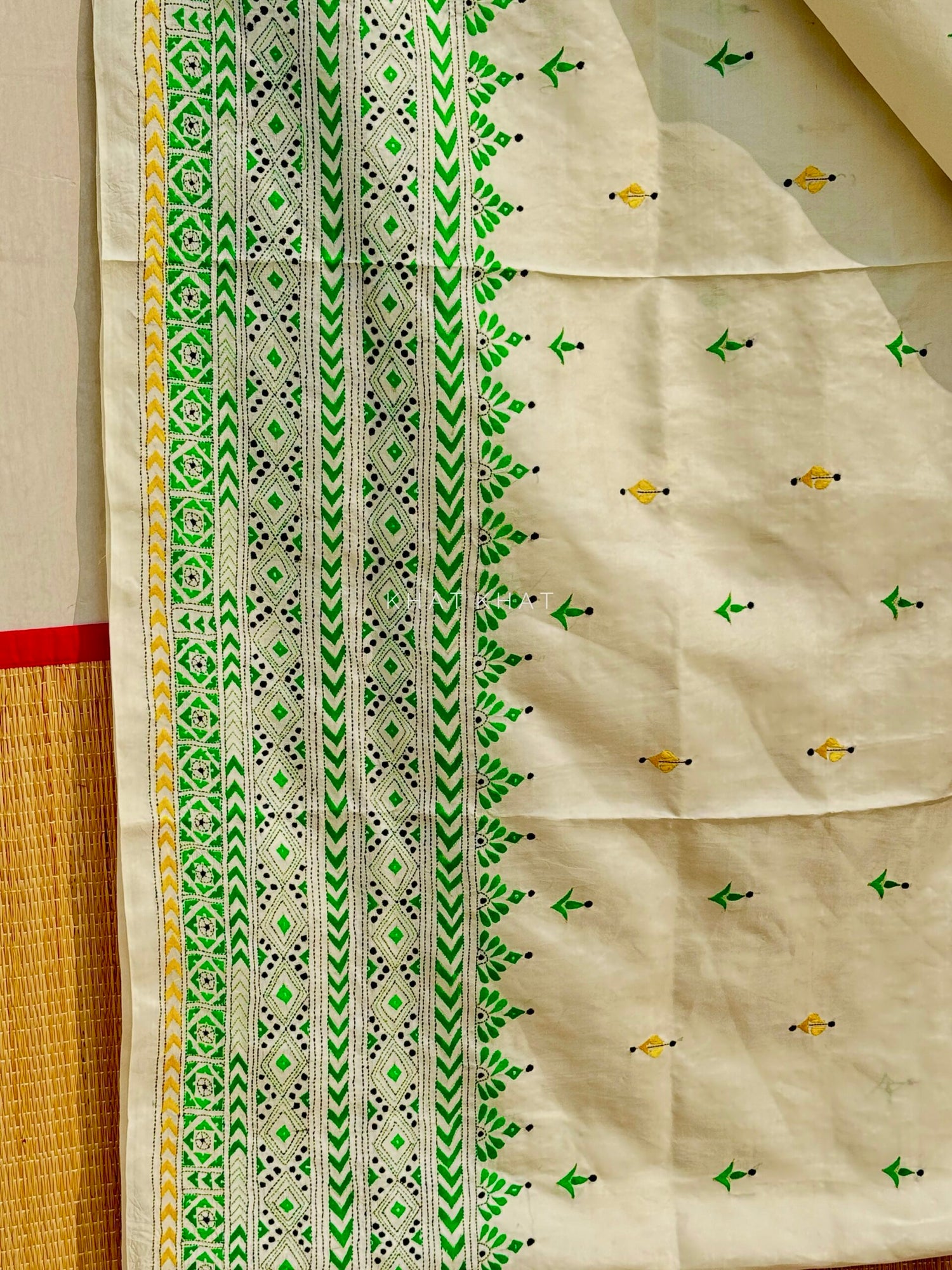 KHAT KHAT sarees are handcrafted using age-old weaving techniques passed down through generations. Each saree carries the essence of our artisans’ hard work and emotional connection to their craft, making every piece unique and full of character.