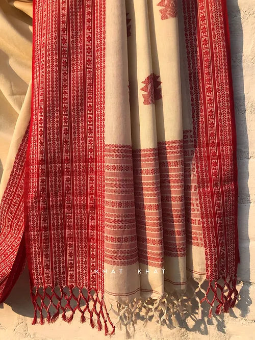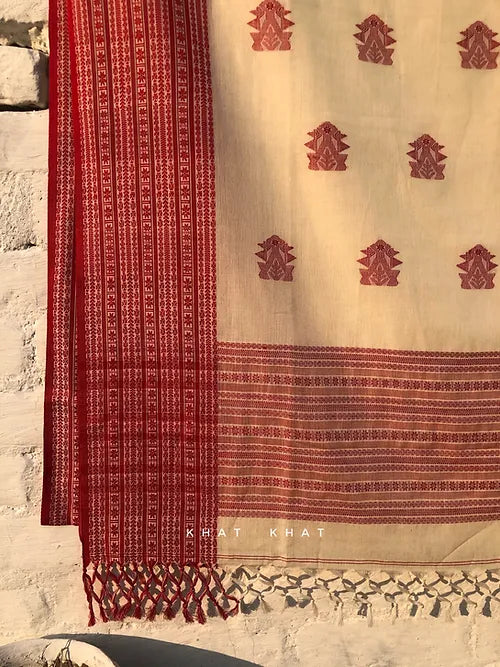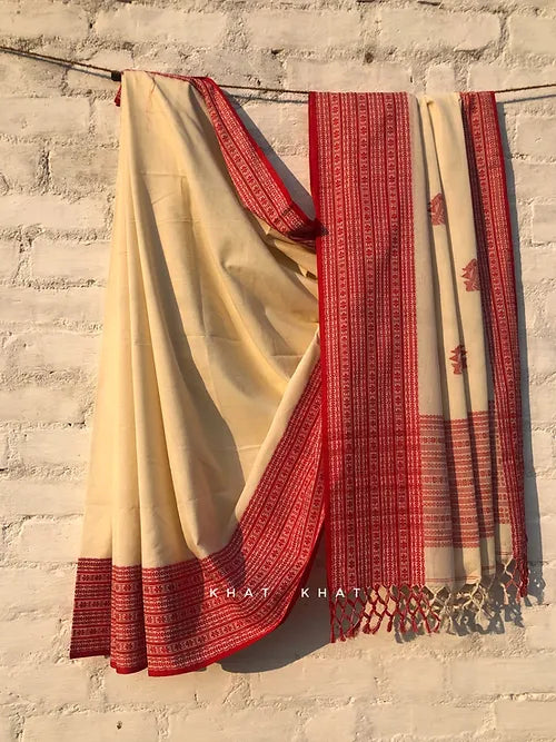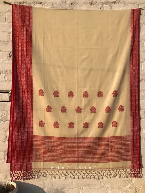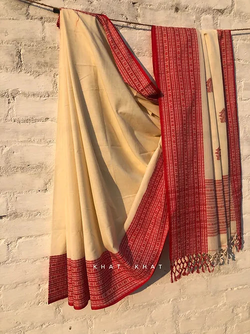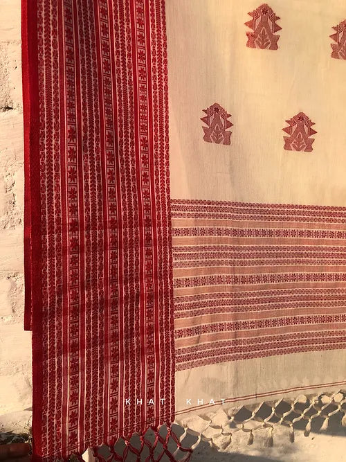 KHAT KHAT sarees are handcrafted using age-old weaving techniques passed down through generations. Each saree carries the essence of our artisans’ hard work and emotional connection to their craft, making every piece unique and full of character.