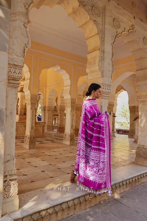 KHAT KHAT sarees are handcrafted using age-old weaving techniques passed down through generations. Each saree carries the essence of our artisans’ hard work and emotional connection to their craft, making every piece unique and full of character.