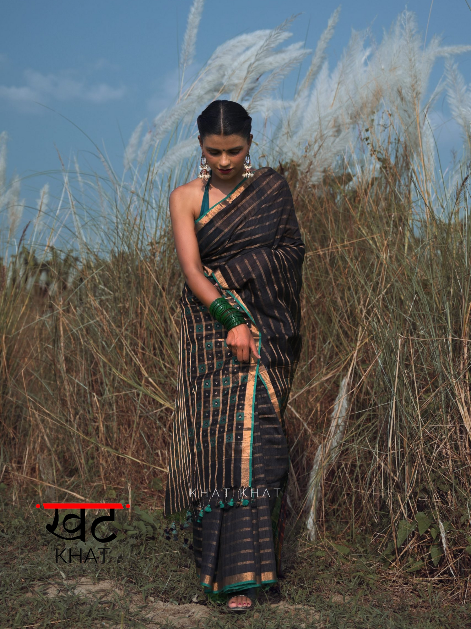 KHAT KHAT sarees are handcrafted using age-old weaving techniques passed down through generations. Each saree carries the essence of our artisans’ hard work and emotional connection to their craft, making every piece unique and full of character.