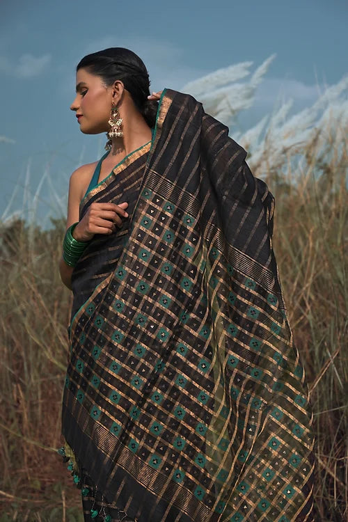 Technique: Handloom , jamdani motif at pallu , sequins hancrafted in weaving