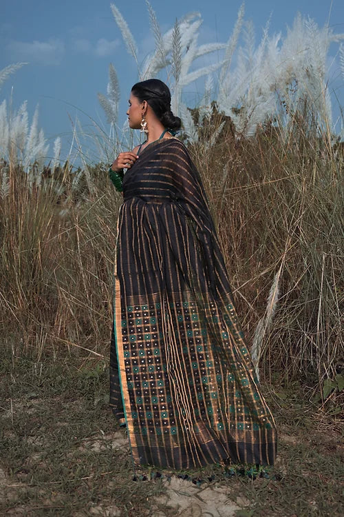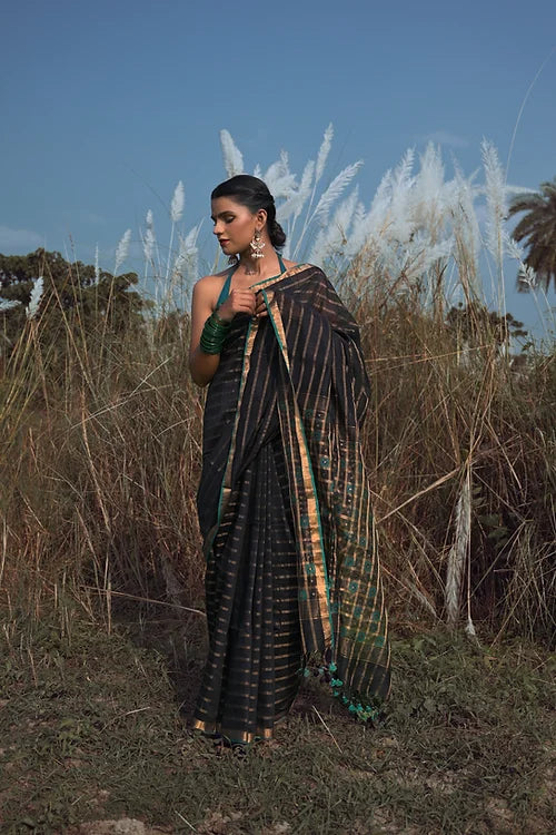 Our sarees are made from completely organic fabrics such as pure cotton, silk, and linen. Every piece is handwoven by indigenous artisans, ensuring a blend of tradition, quality, and sustainability.