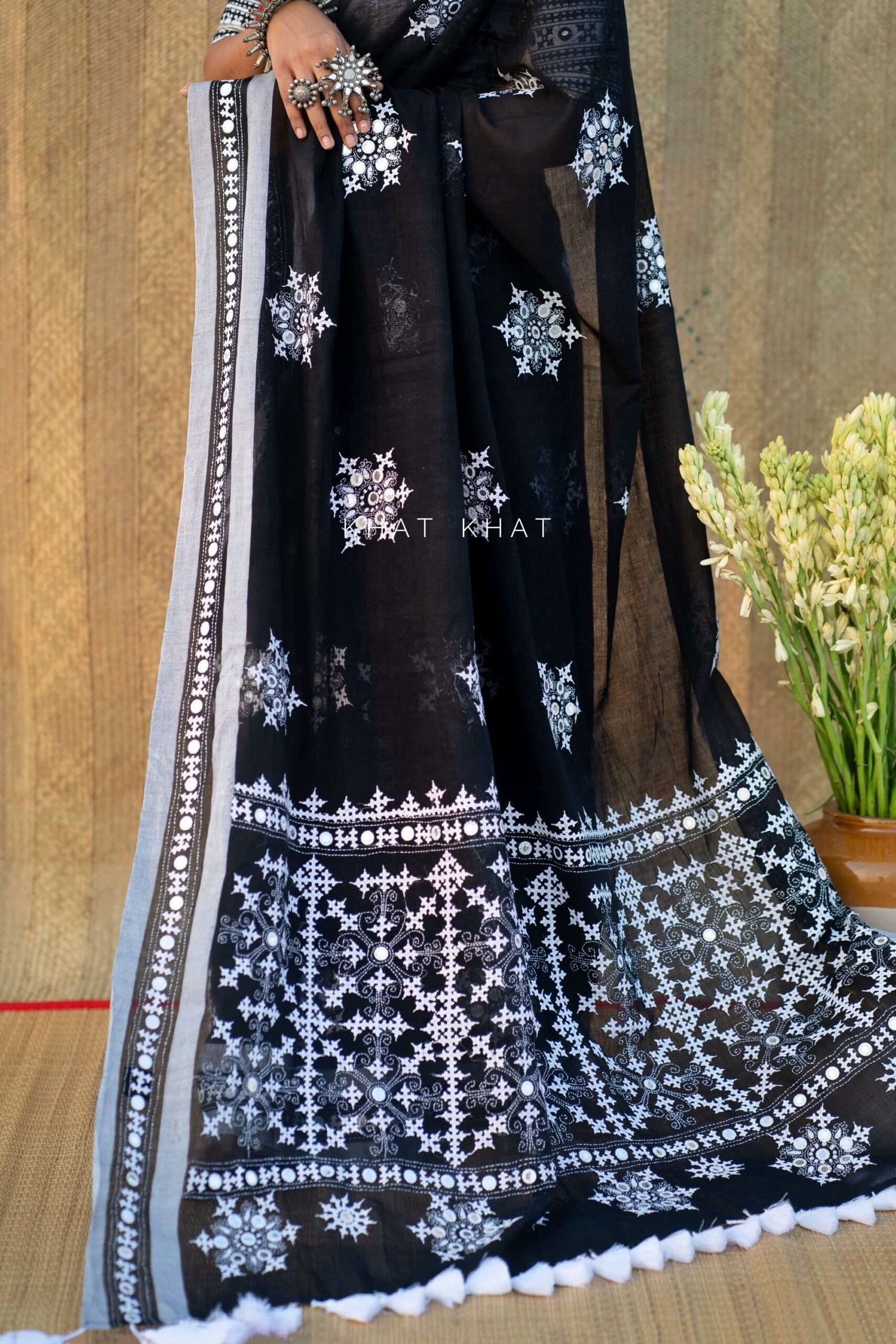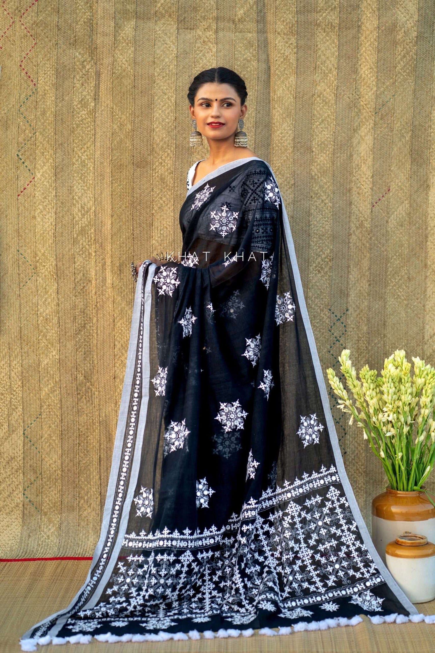 KHAT KHAT sarees are handcrafted using age-old weaving techniques passed down through generations. Each saree carries the essence of our artisans’ hard work and emotional connection to their craft, making every piece unique and full of character.