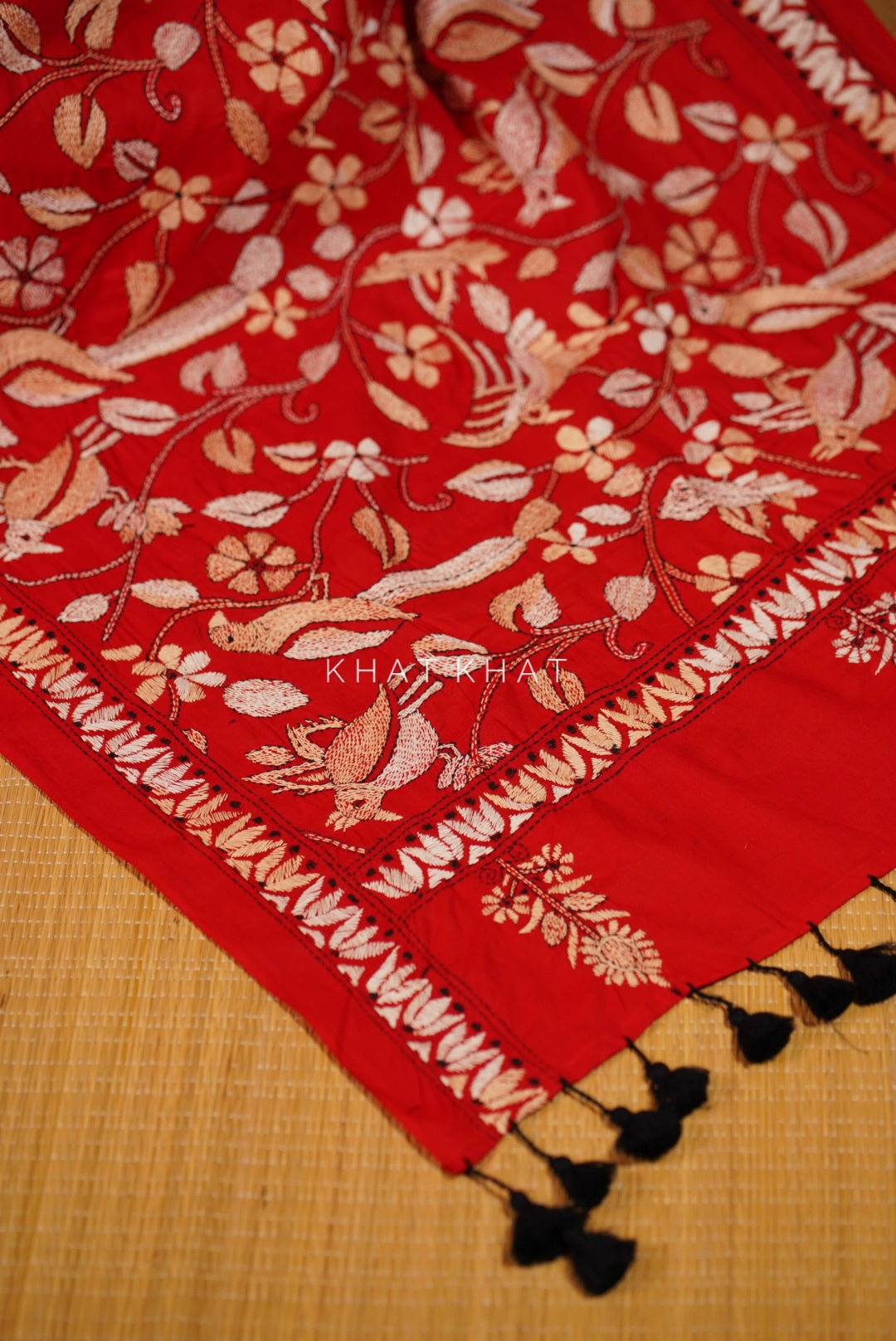 KHAT KHAT sarees are handcrafted using age-old weaving techniques passed down through generations. Each saree carries the essence of our artisans’ hard work and emotional connection to their craft, making every piece unique and full of character.
