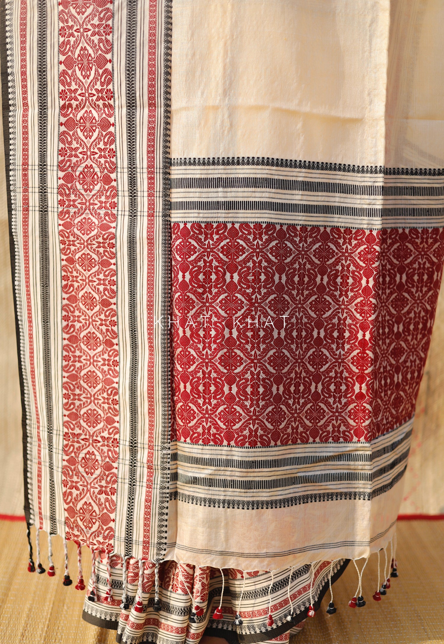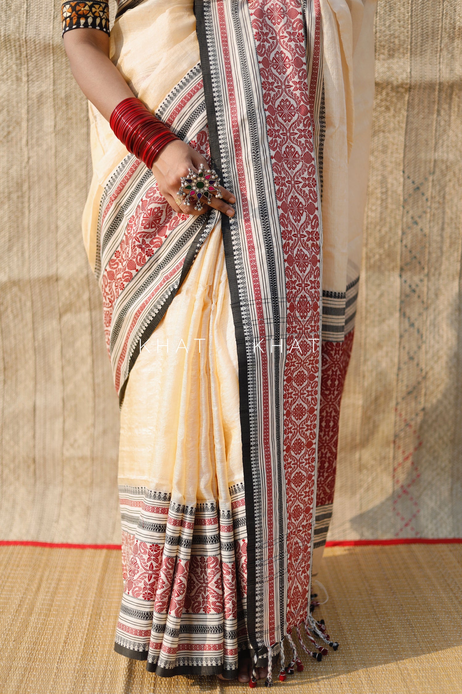 KHAT KHAT sarees are handcrafted using age-old weaving techniques passed down through generations. Each saree carries the essence of our artisans’ hard work and emotional connection to their craft, making every piece unique and full of character.