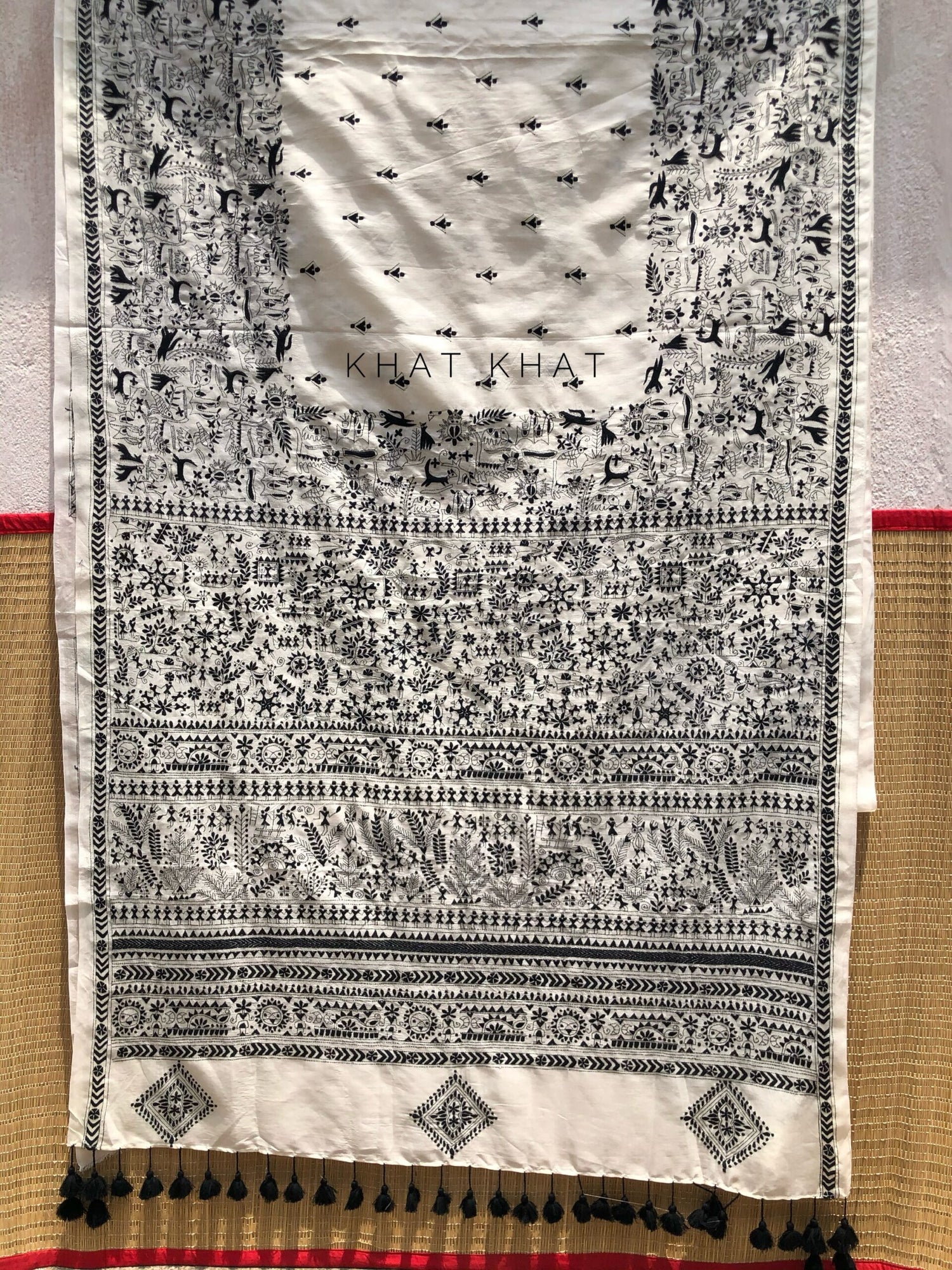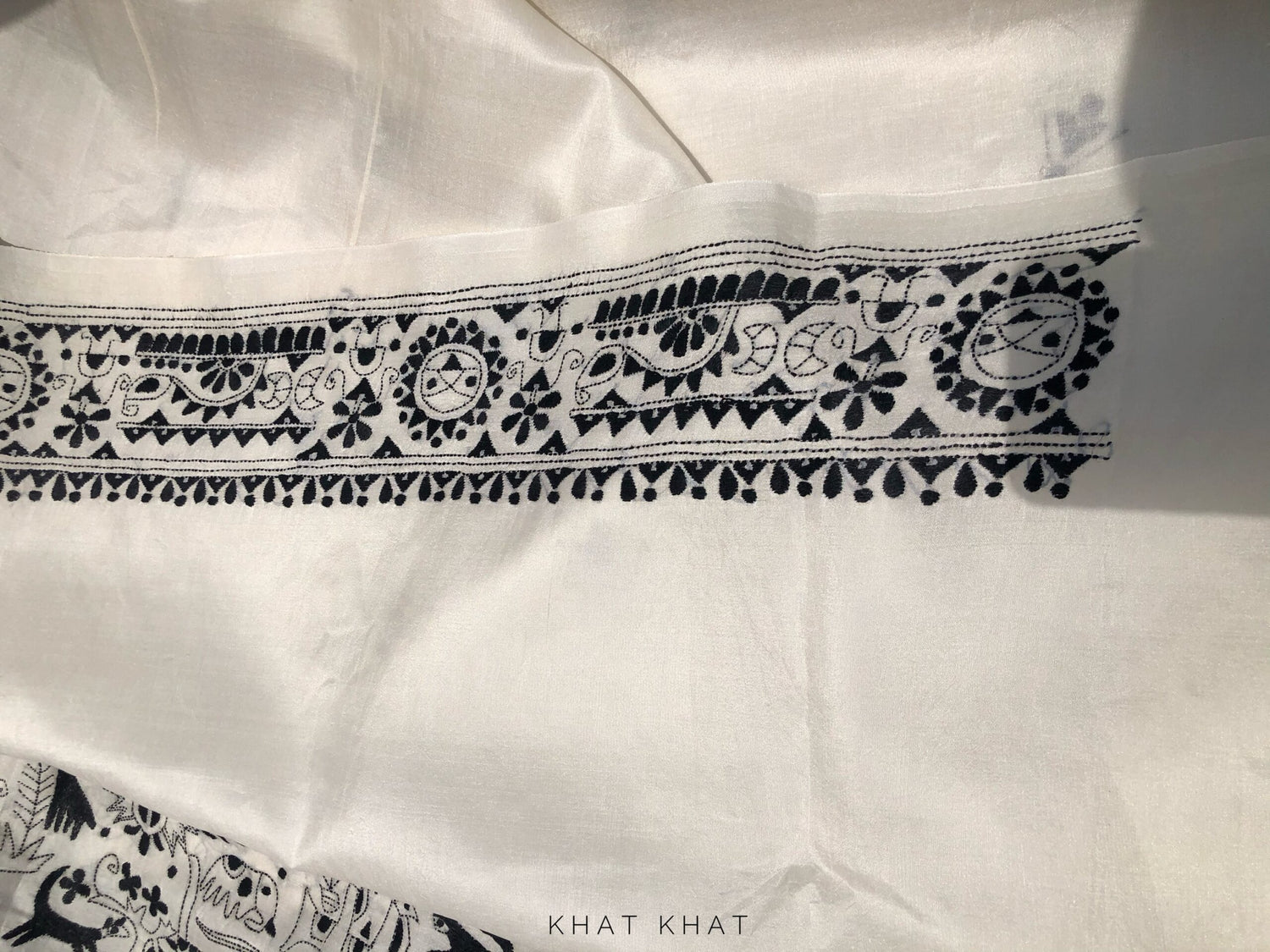 KHAT KHAT sarees are handcrafted using age-old weaving techniques passed down through generations. Each saree carries the essence of our artisans’ hard work and emotional connection to their craft, making every piece unique and full of character.