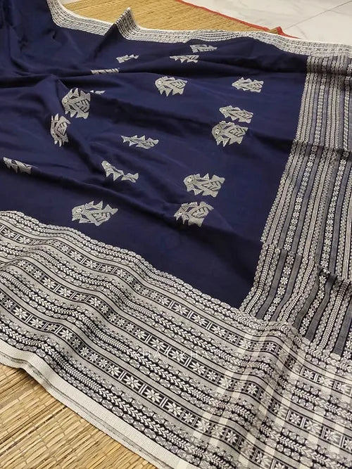 KHAT KHAT sarees are handcrafted using age-old weaving techniques passed down through generations. Each saree carries the essence of our artisans’ hard work and emotional connection to their craft, making every piece unique and full of character.