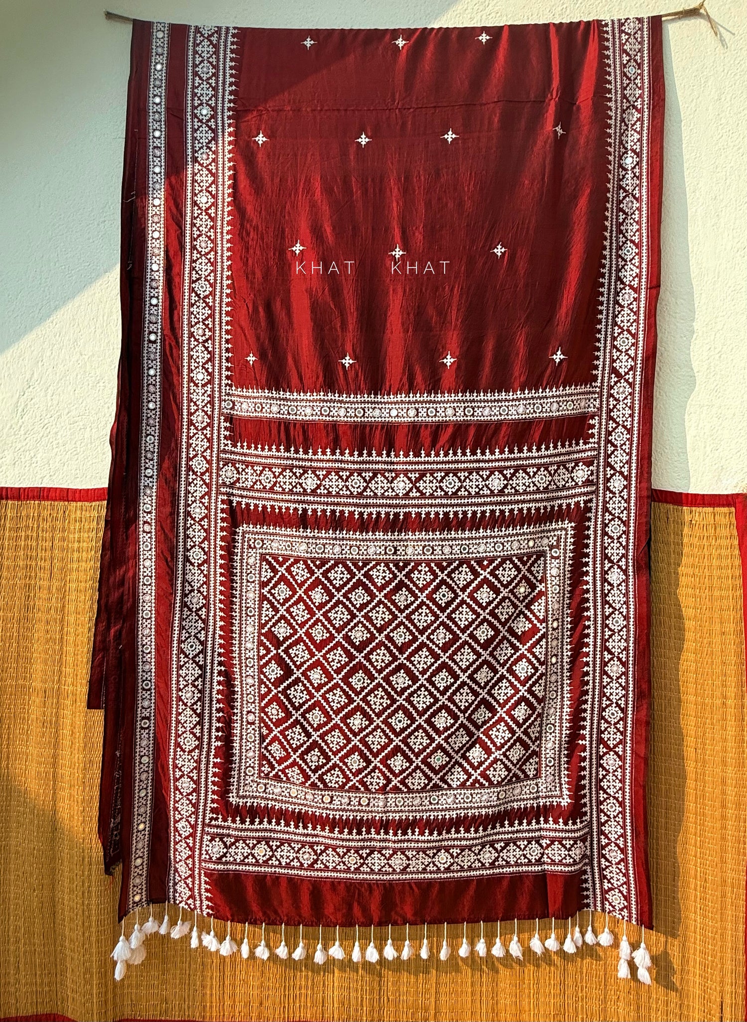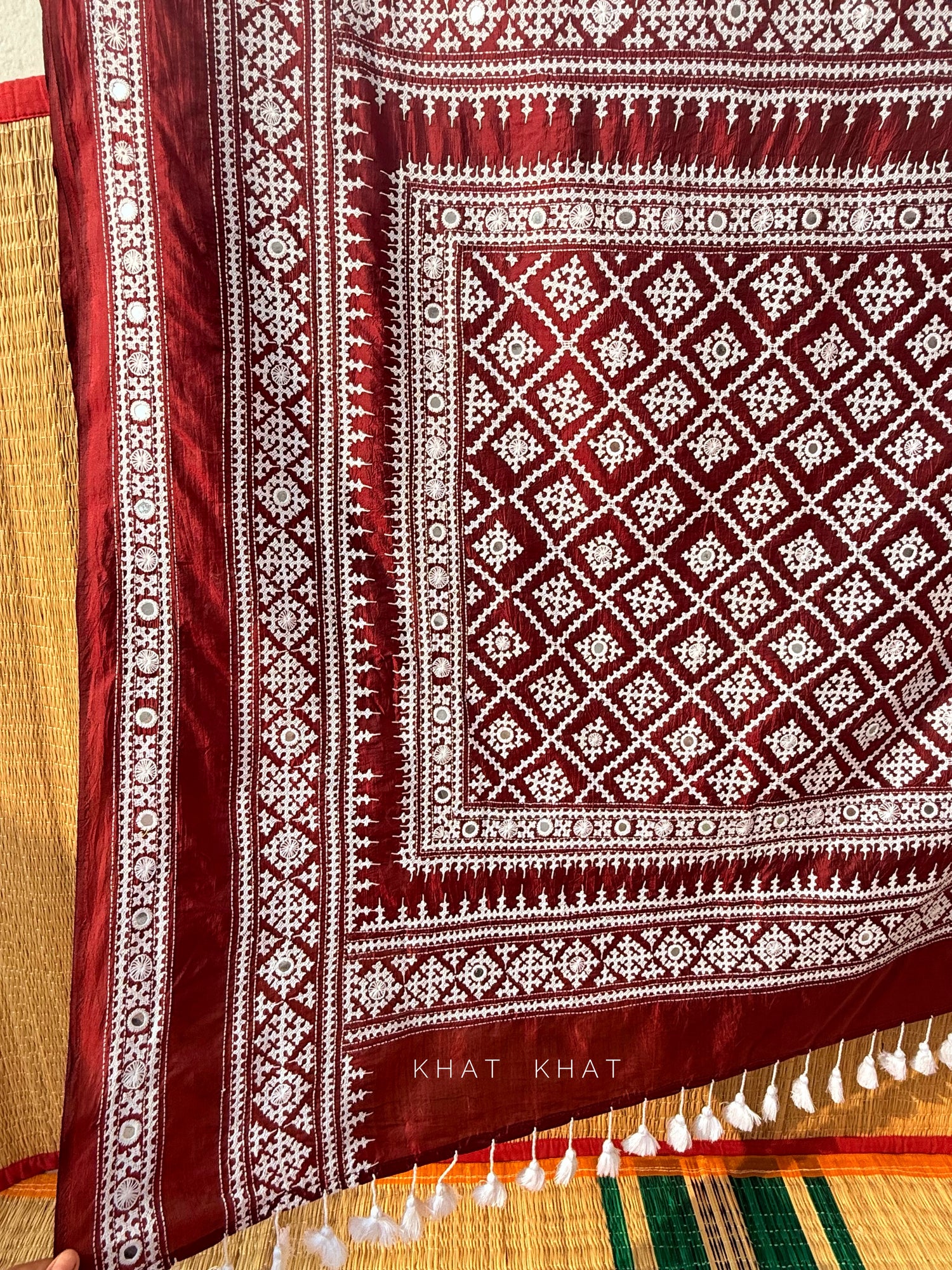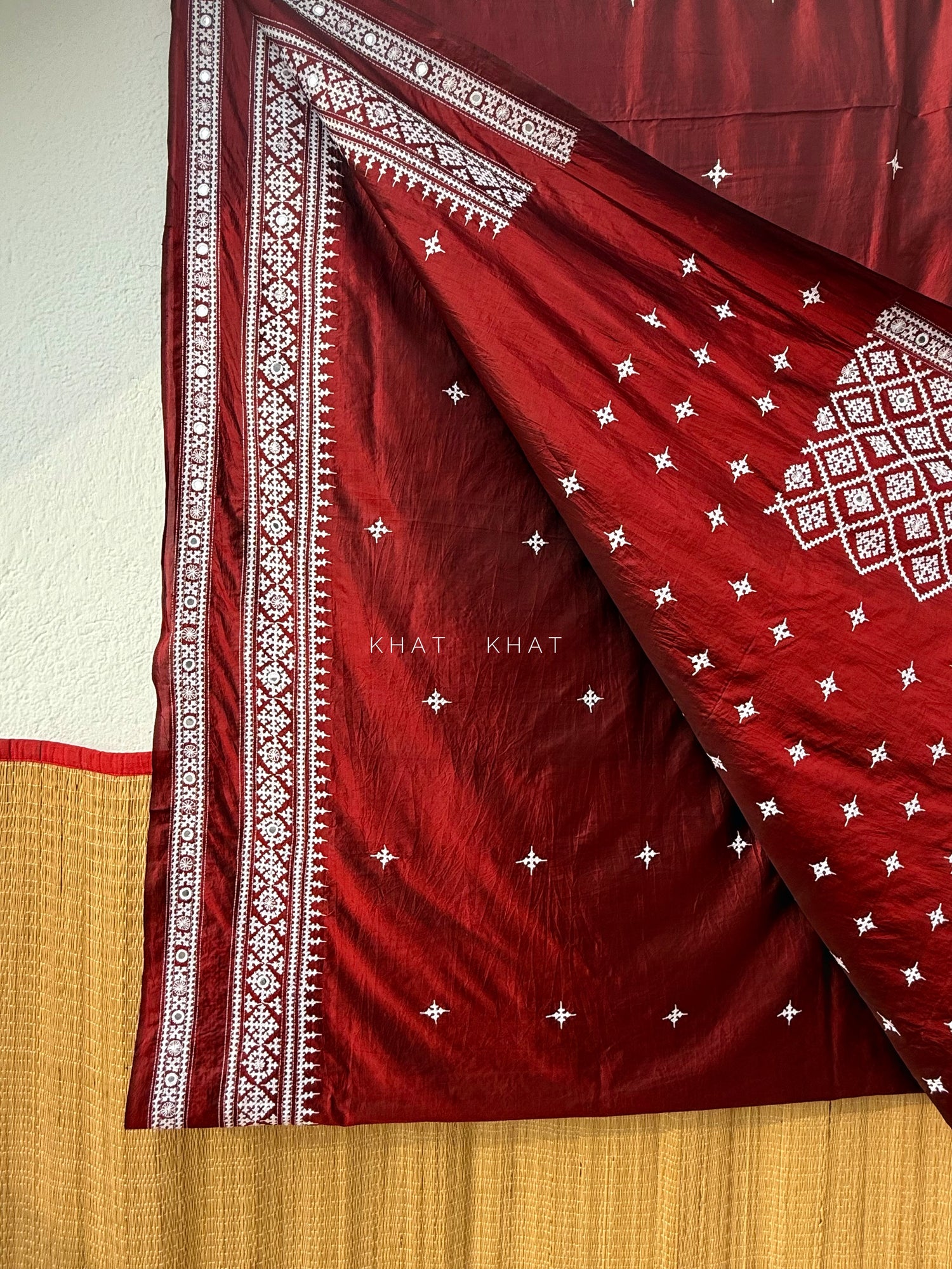 KHAT KHAT sarees are handcrafted using age-old weaving techniques passed down through generations. Each saree carries the essence of our artisans’ hard work and emotional connection to their craft, making every piece unique and full of character.