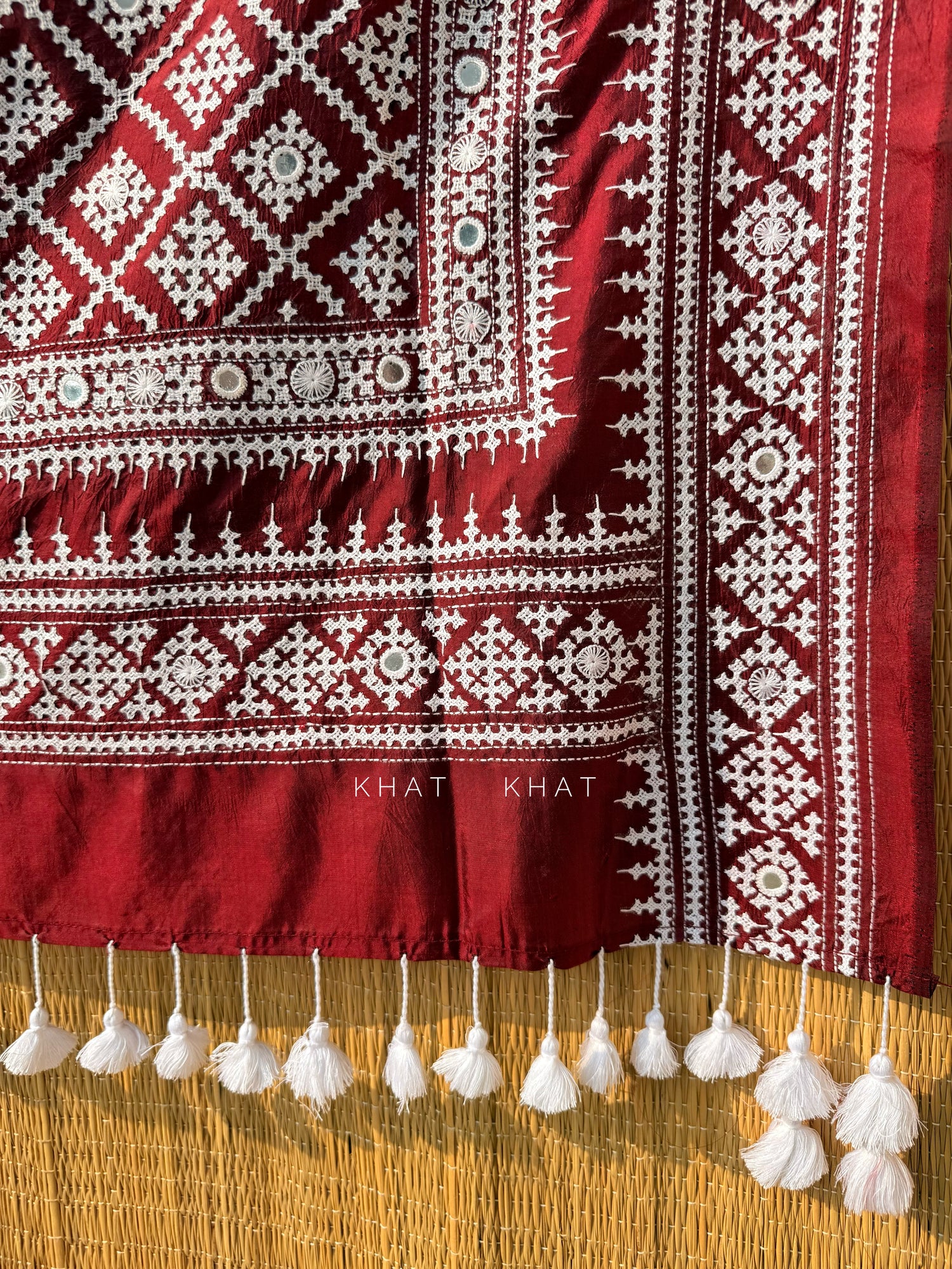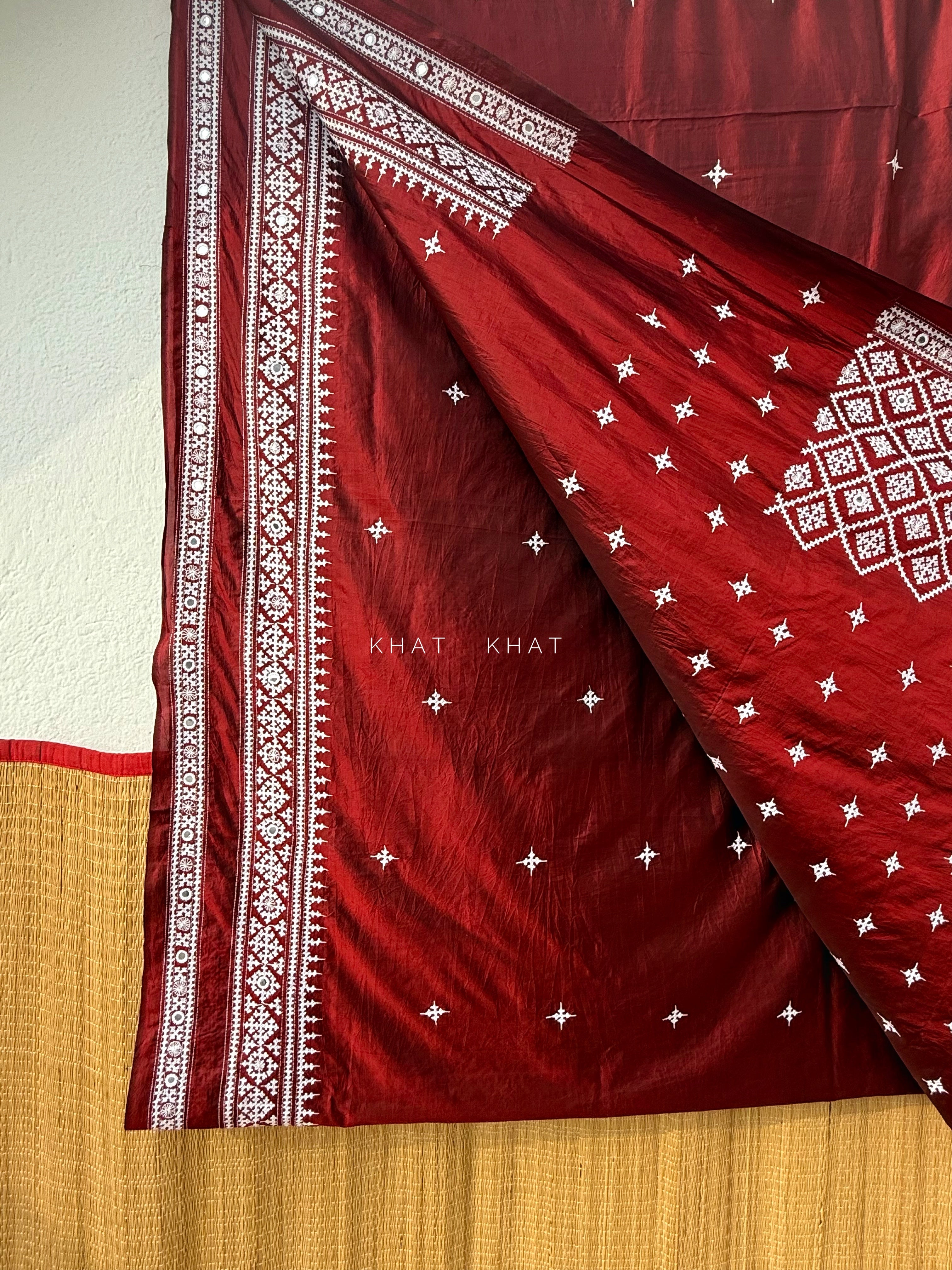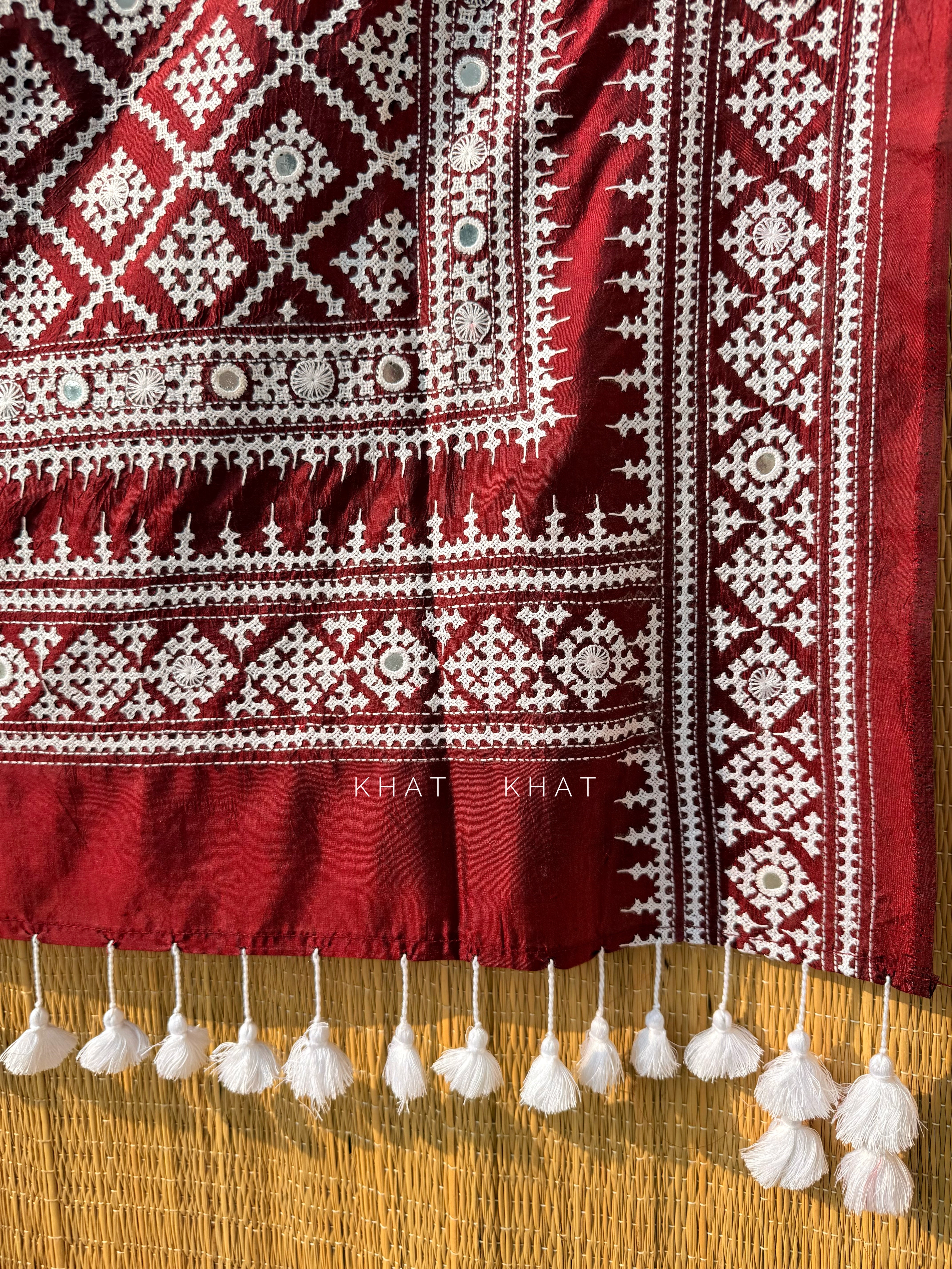 Colors : Dark maroon with white hand embroidery