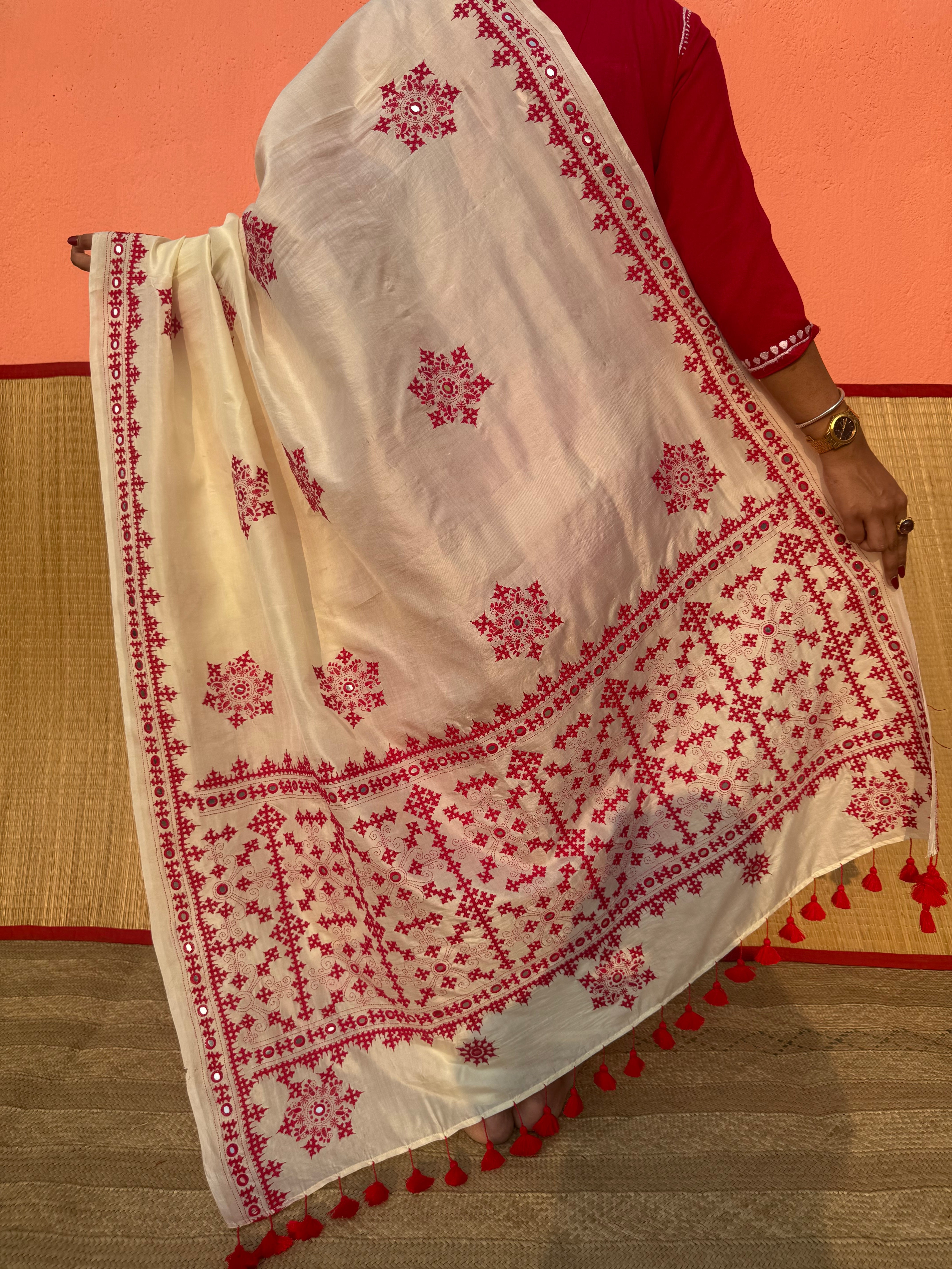 KHAT KHAT sarees are handcrafted using age-old weaving techniques passed down through generations. Each saree carries the essence of our artisans’ hard work and emotional connection to their craft, making every piece unique and full of character.