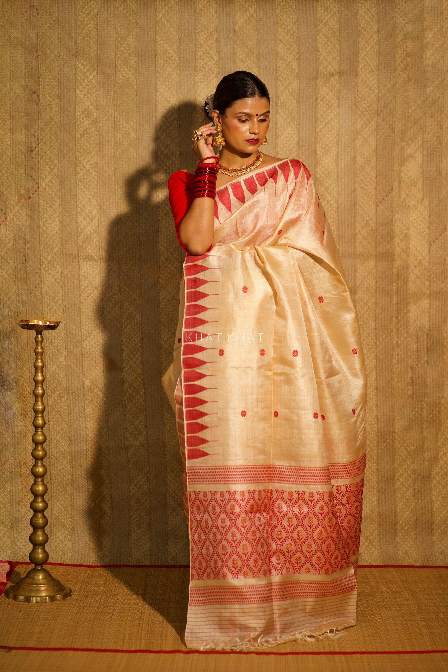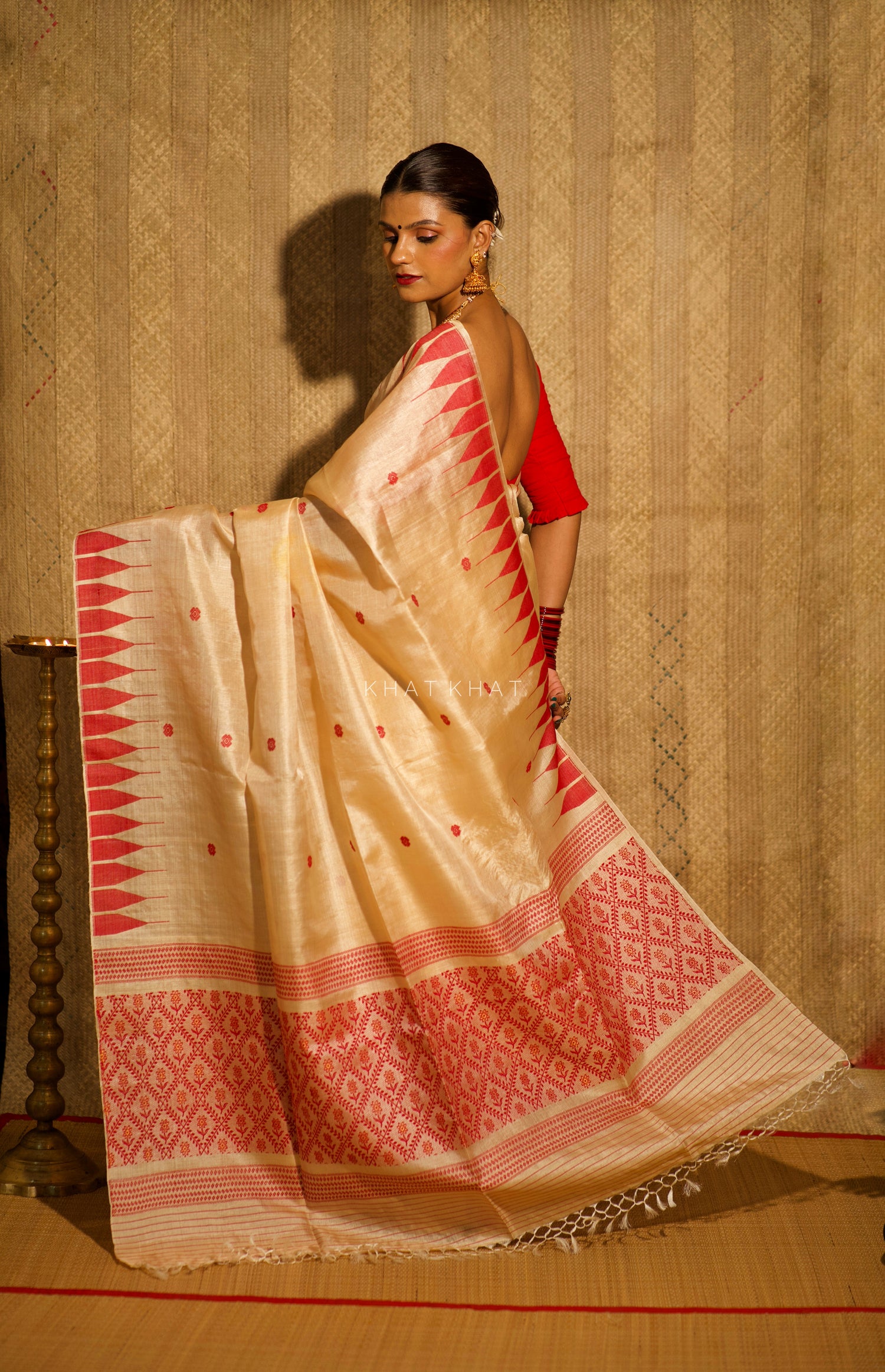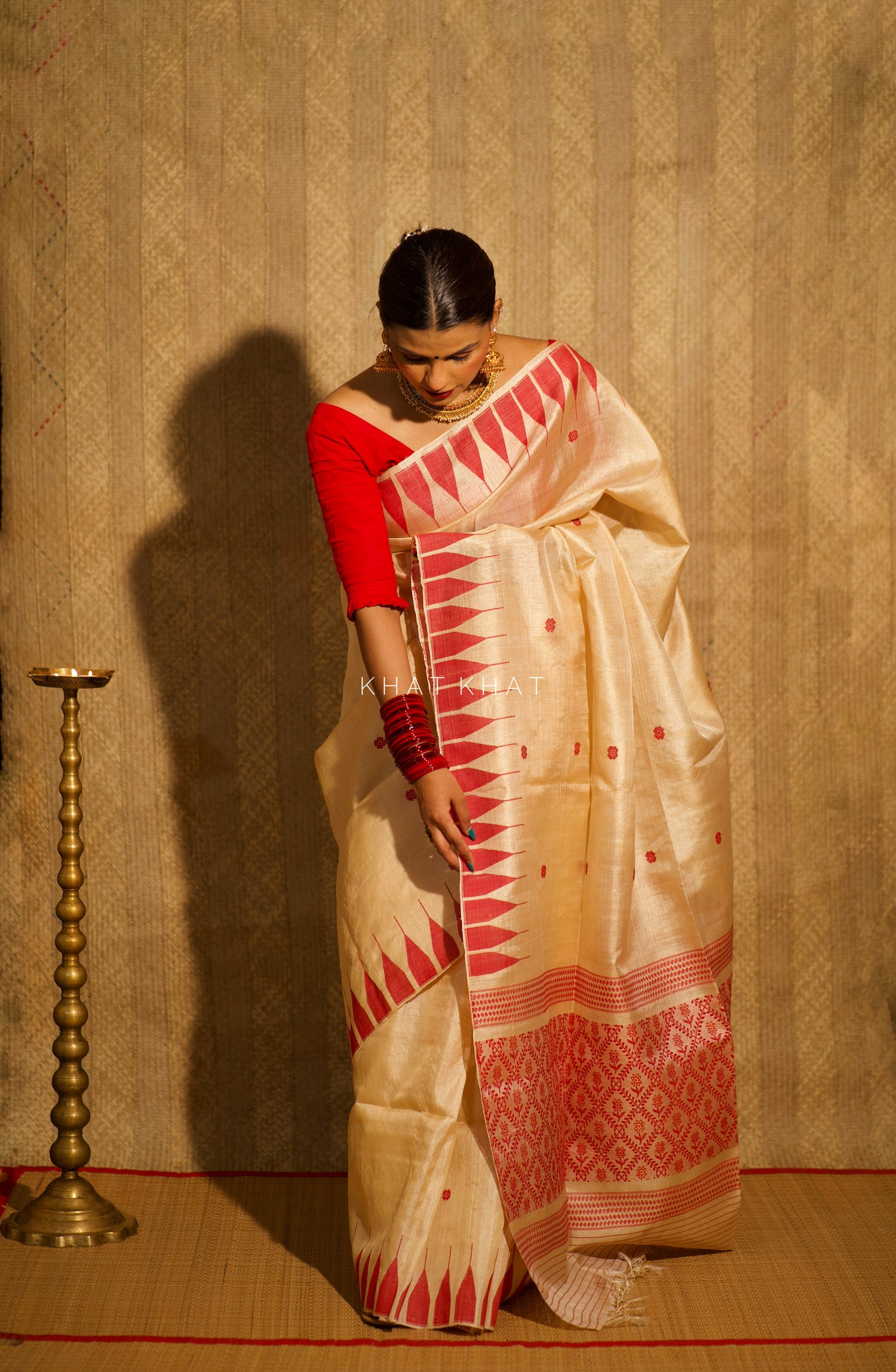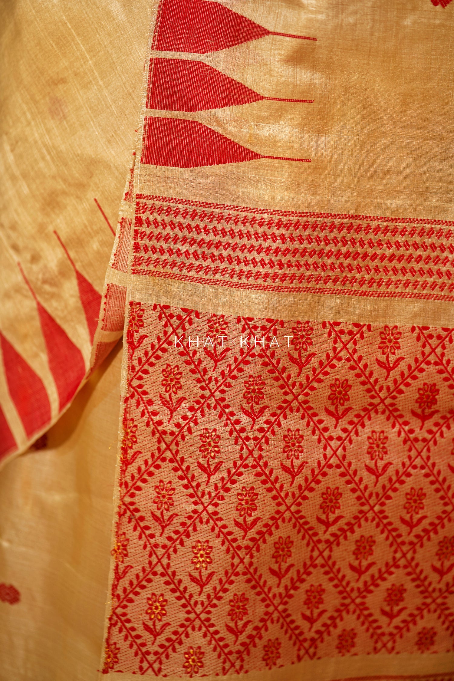 KHAT KHAT sarees are handcrafted using age-old weaving techniques passed down through generations. Each saree carries the essence of our artisans’ hard work and emotional connection to their craft, making every piece unique and full of character.