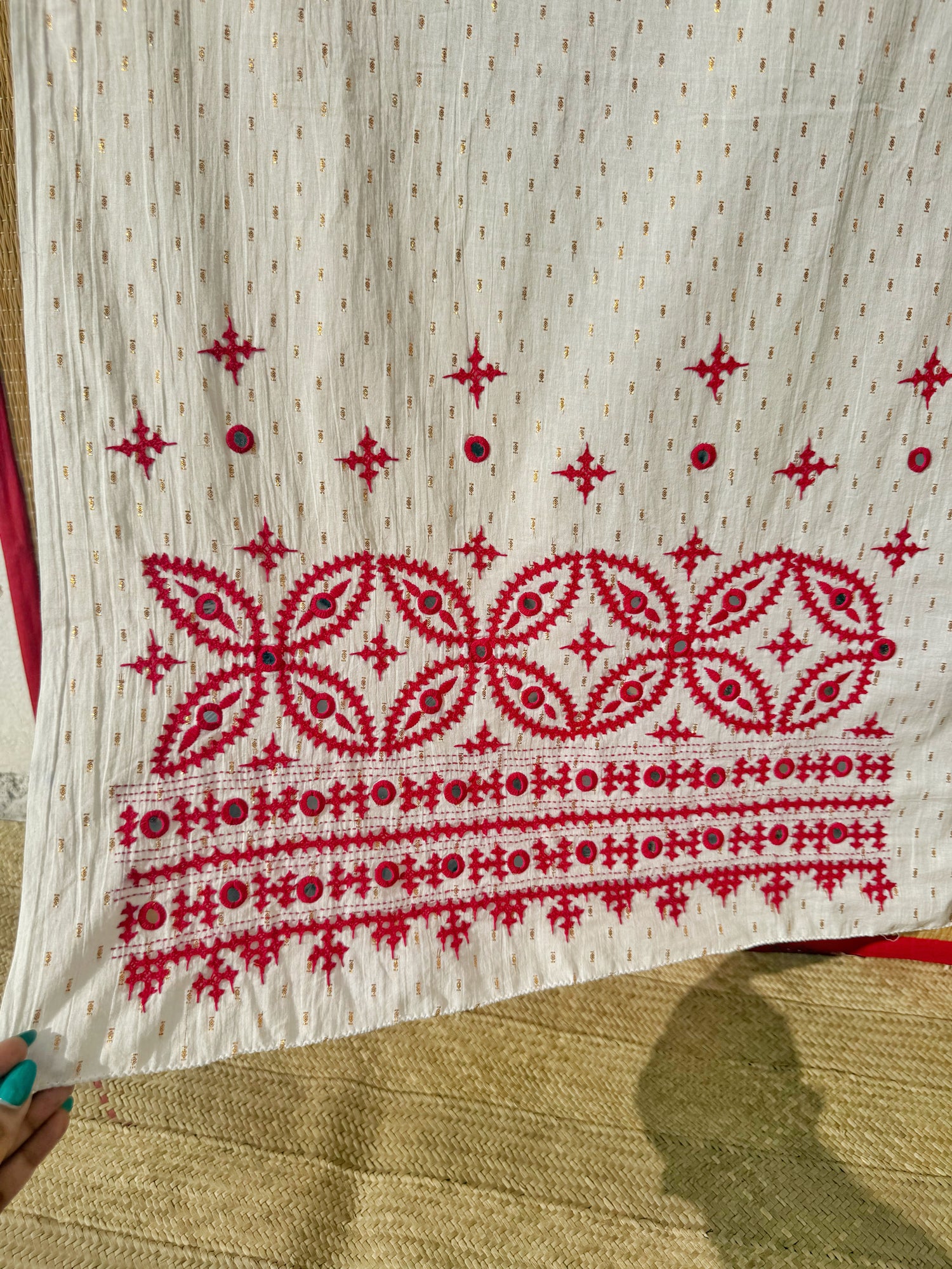 Colour :White (Red Kutch Hand Embroidery)