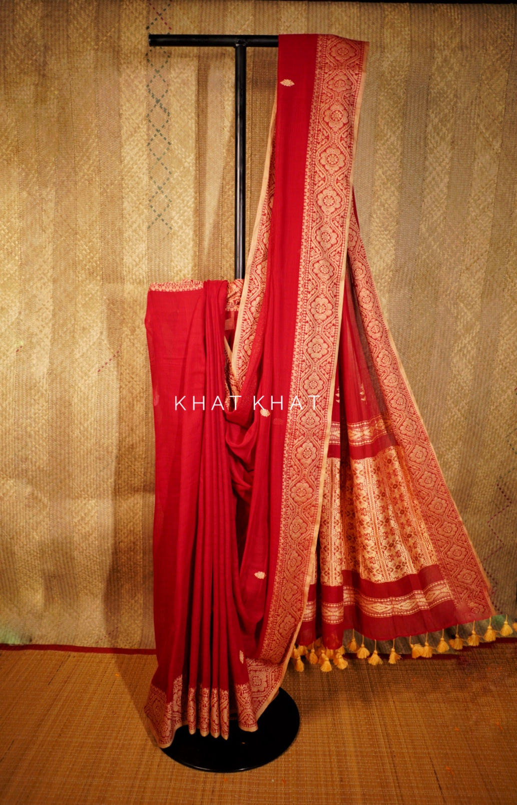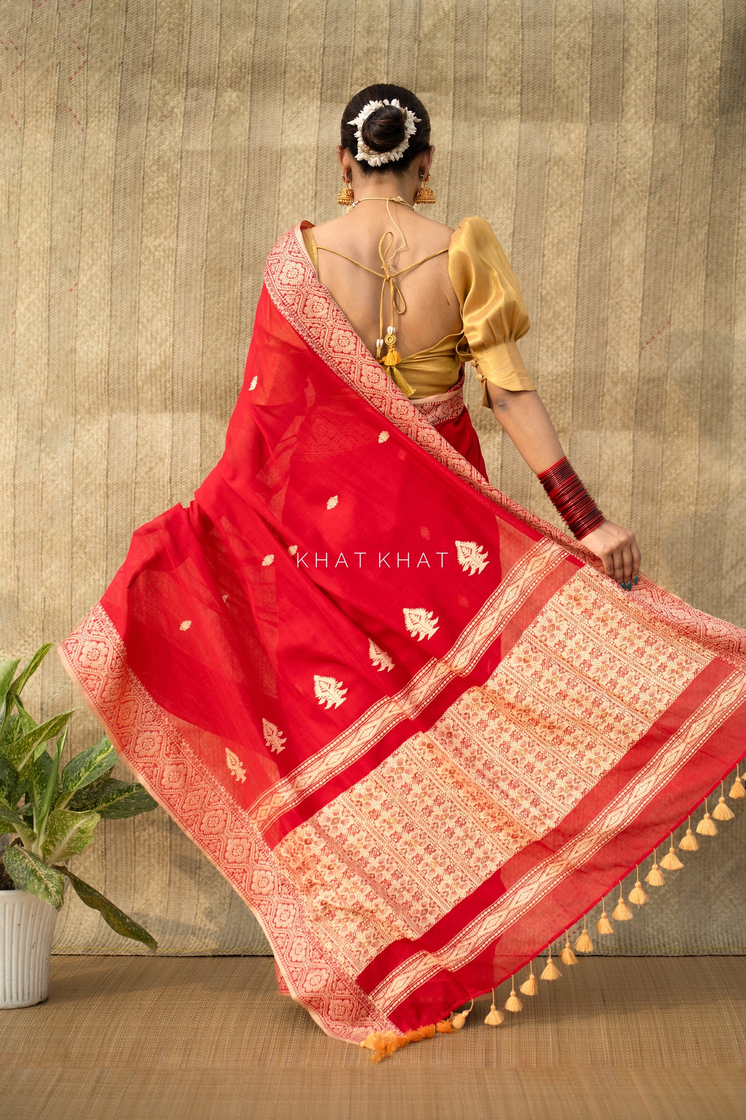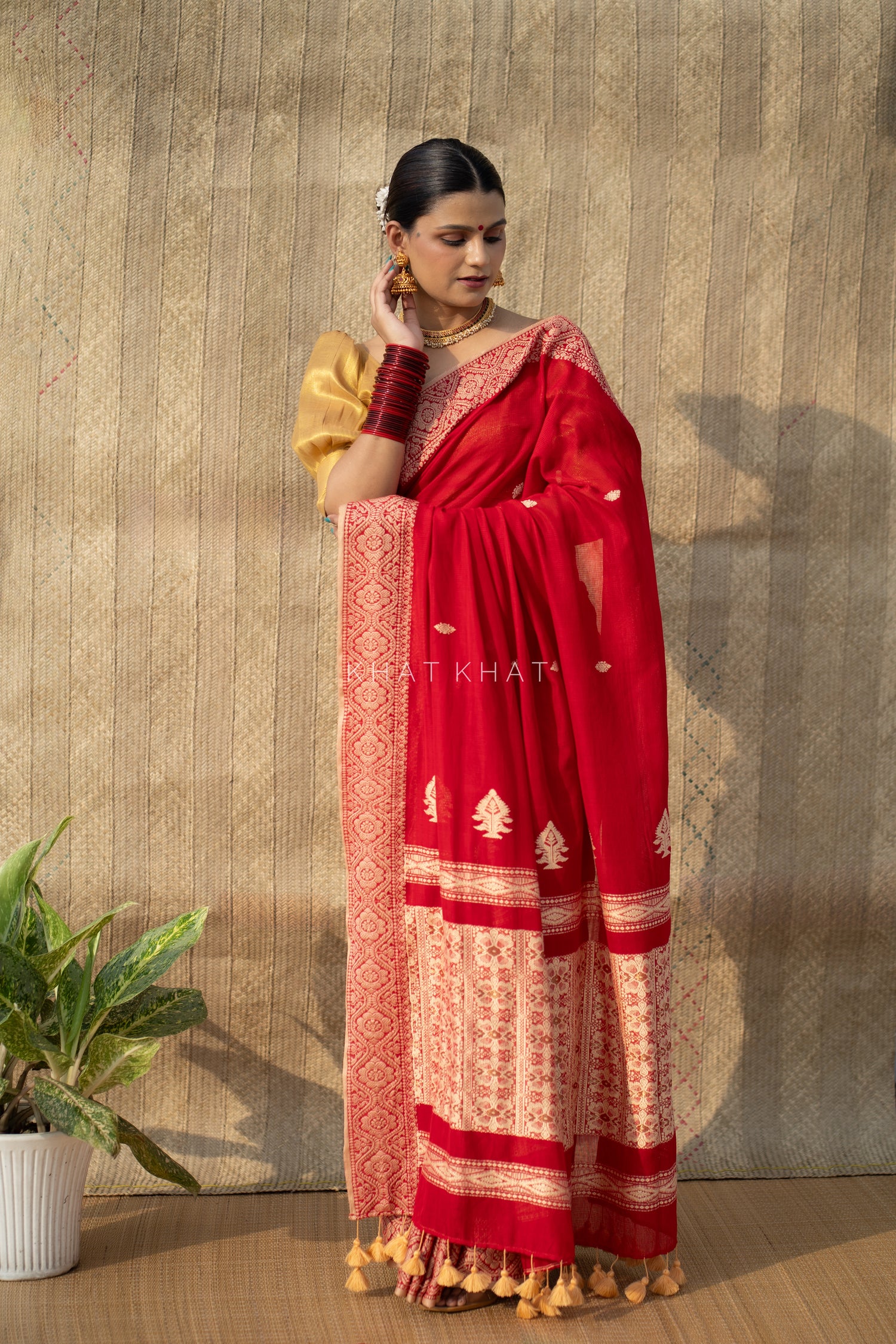 KHAT KHAT sarees are handcrafted using age-old weaving techniques passed down through generations. Each saree carries the essence of our artisans’ hard work and emotional connection to their craft, making every piece unique and full of character.