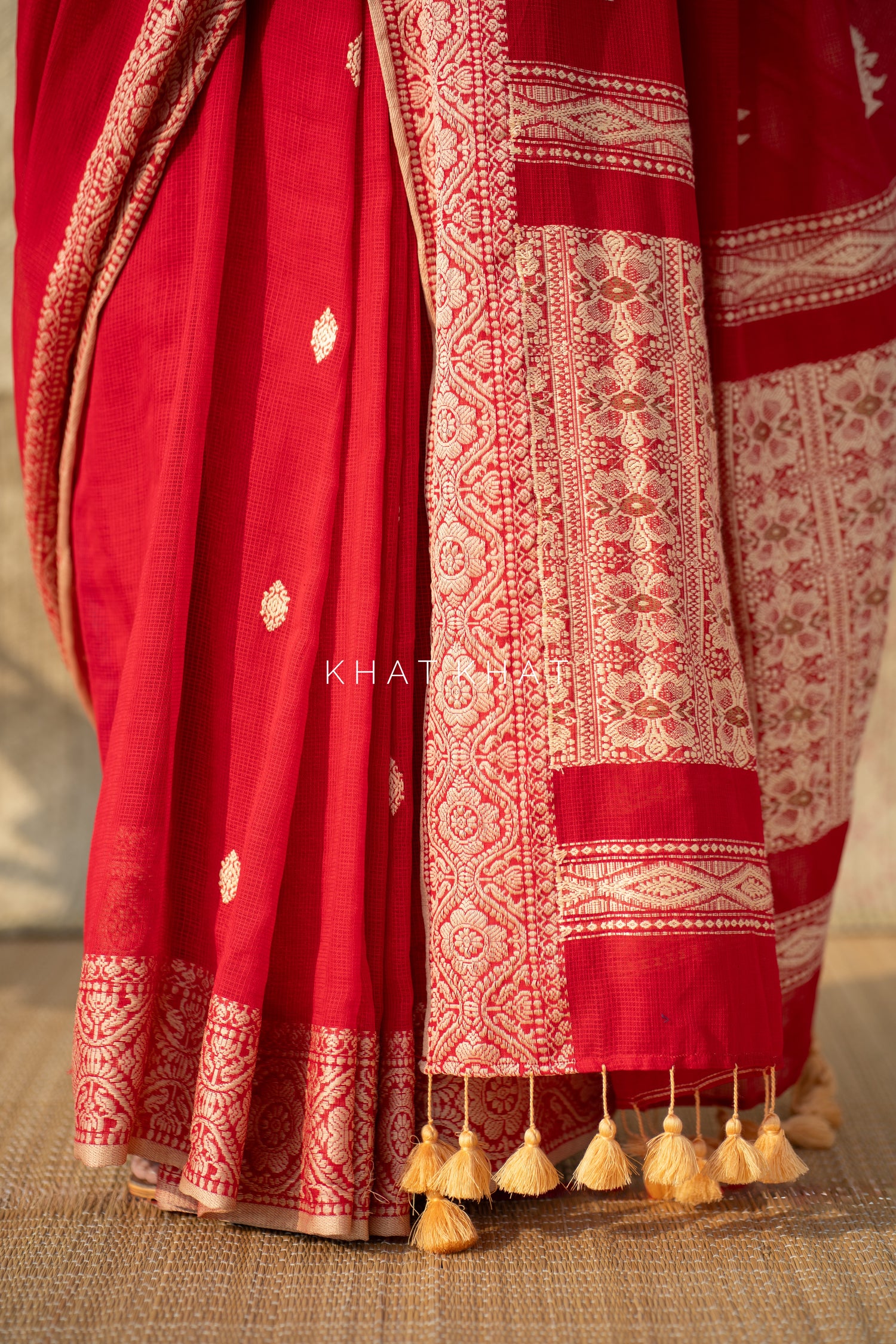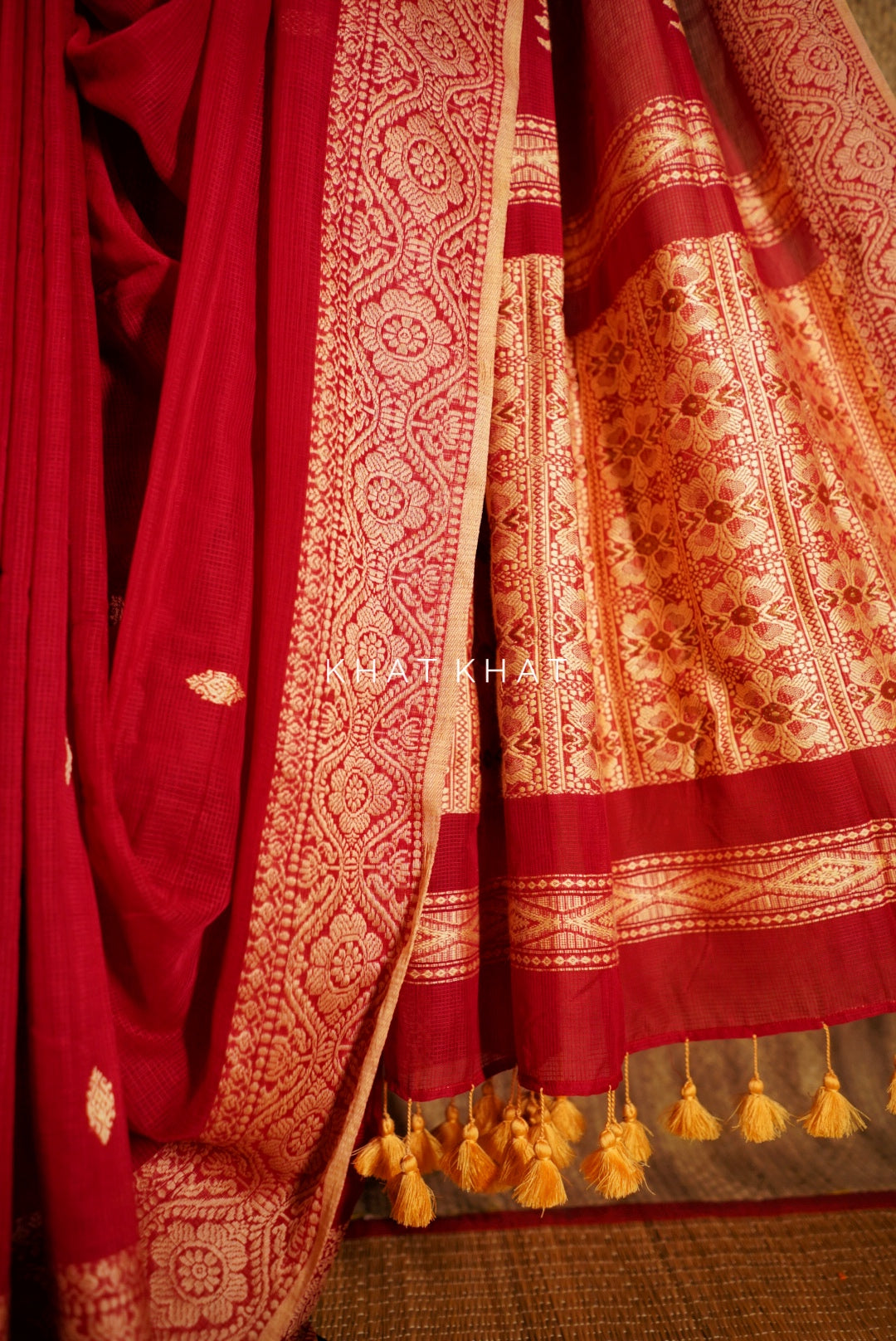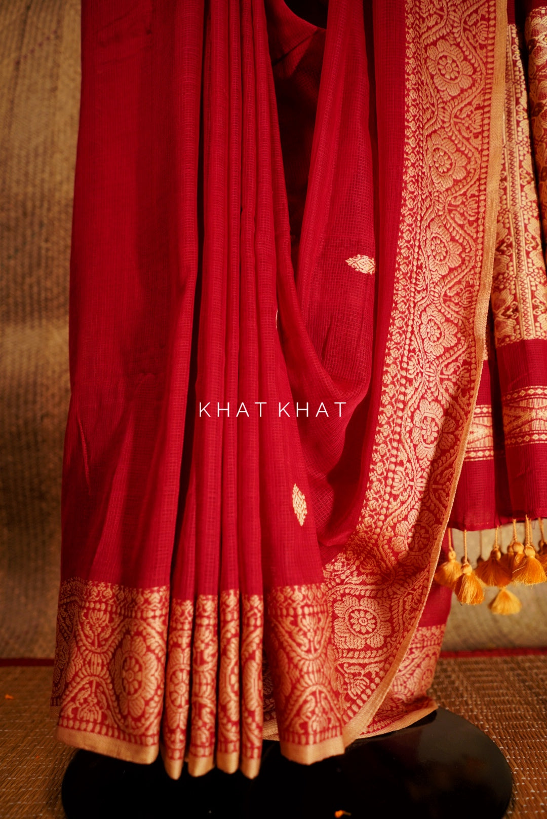 KHAT KHAT sarees are handcrafted using age-old weaving techniques passed down through generations. Each saree carries the essence of our artisans’ hard work and emotional connection to their craft, making every piece unique and full of character.