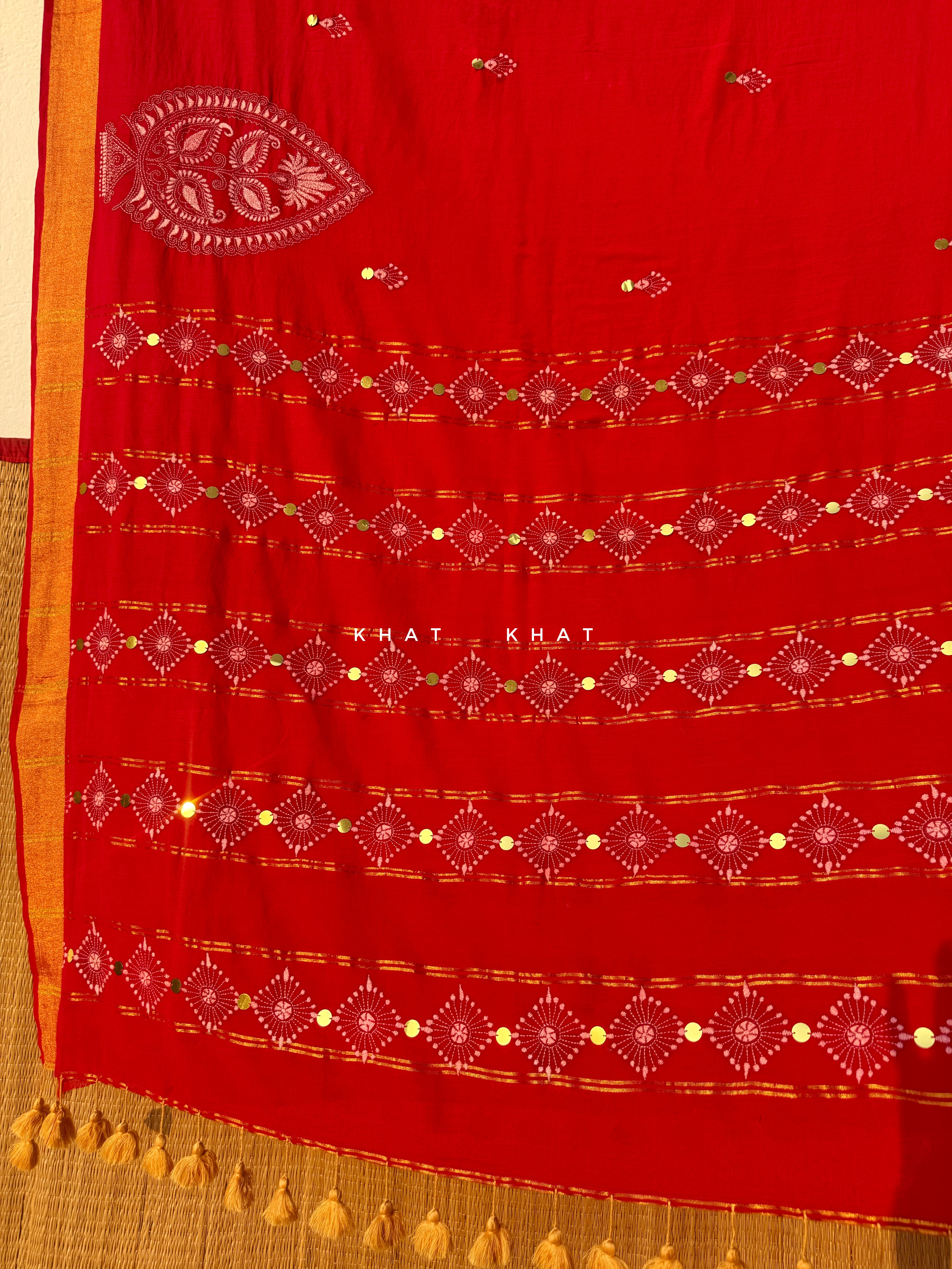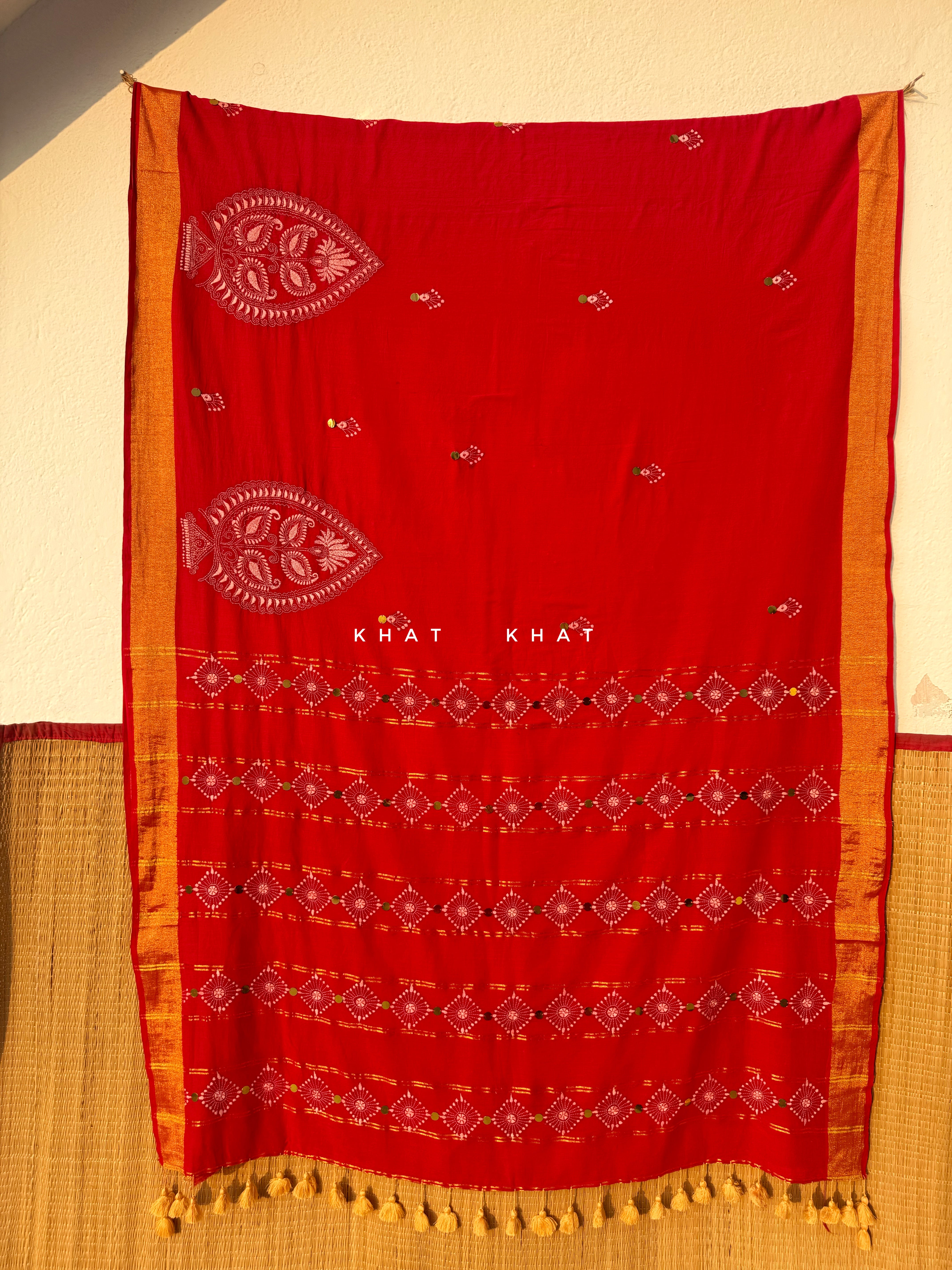 KHAT KHAT sarees are handcrafted using age-old weaving techniques passed down through generations. Each saree carries the essence of our artisans’ hard work and emotional connection to their craft, making every piece unique and full of character.