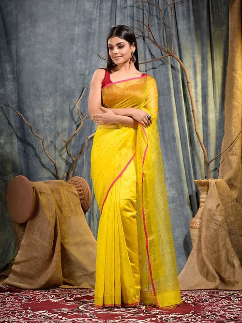 Our sarees are made from completely organic fabrics such as pure cotton, silk, and linen. Every piece is handwoven by indigenous artisans, ensuring a blend of tradition, quality, and sustainability.