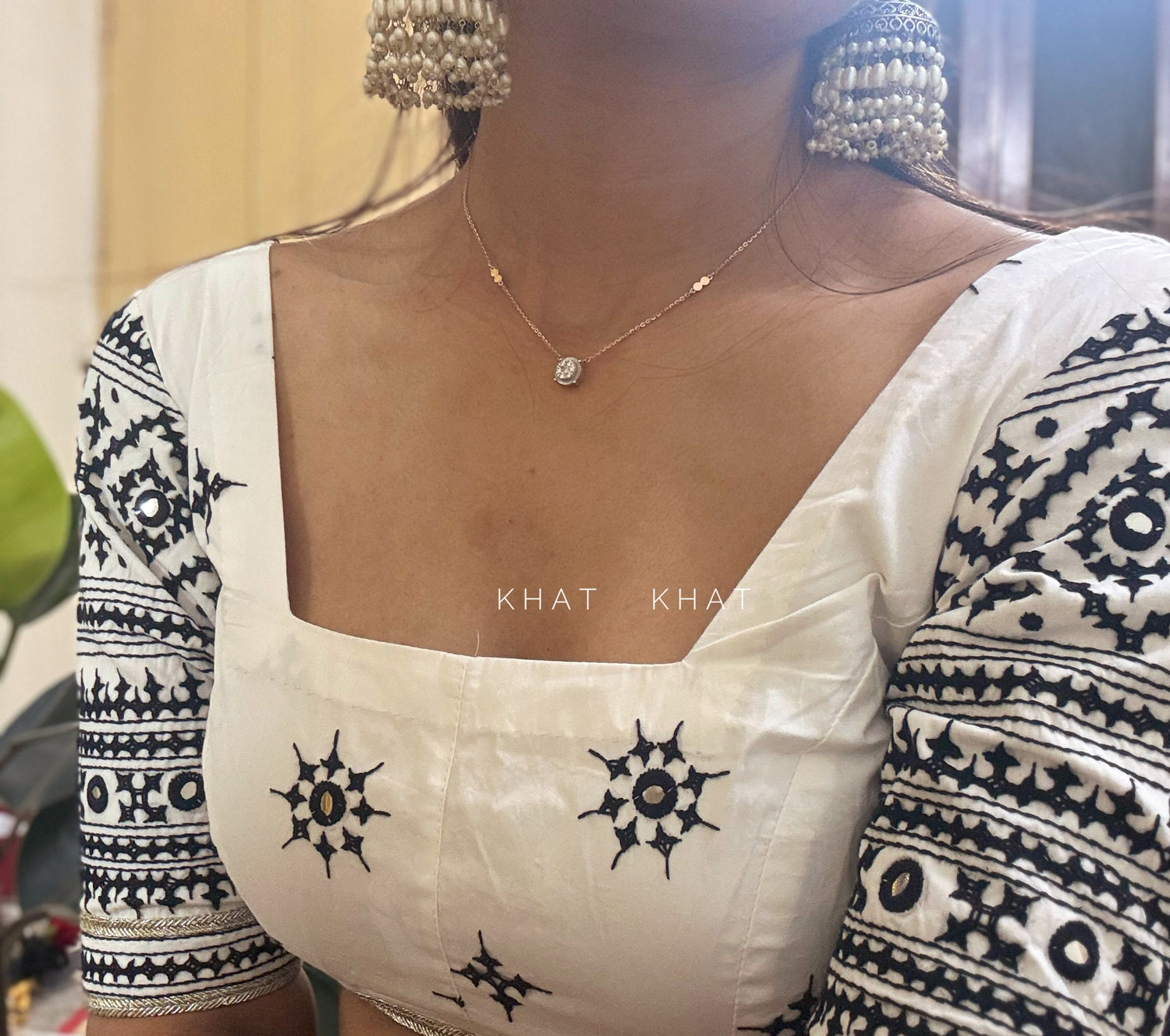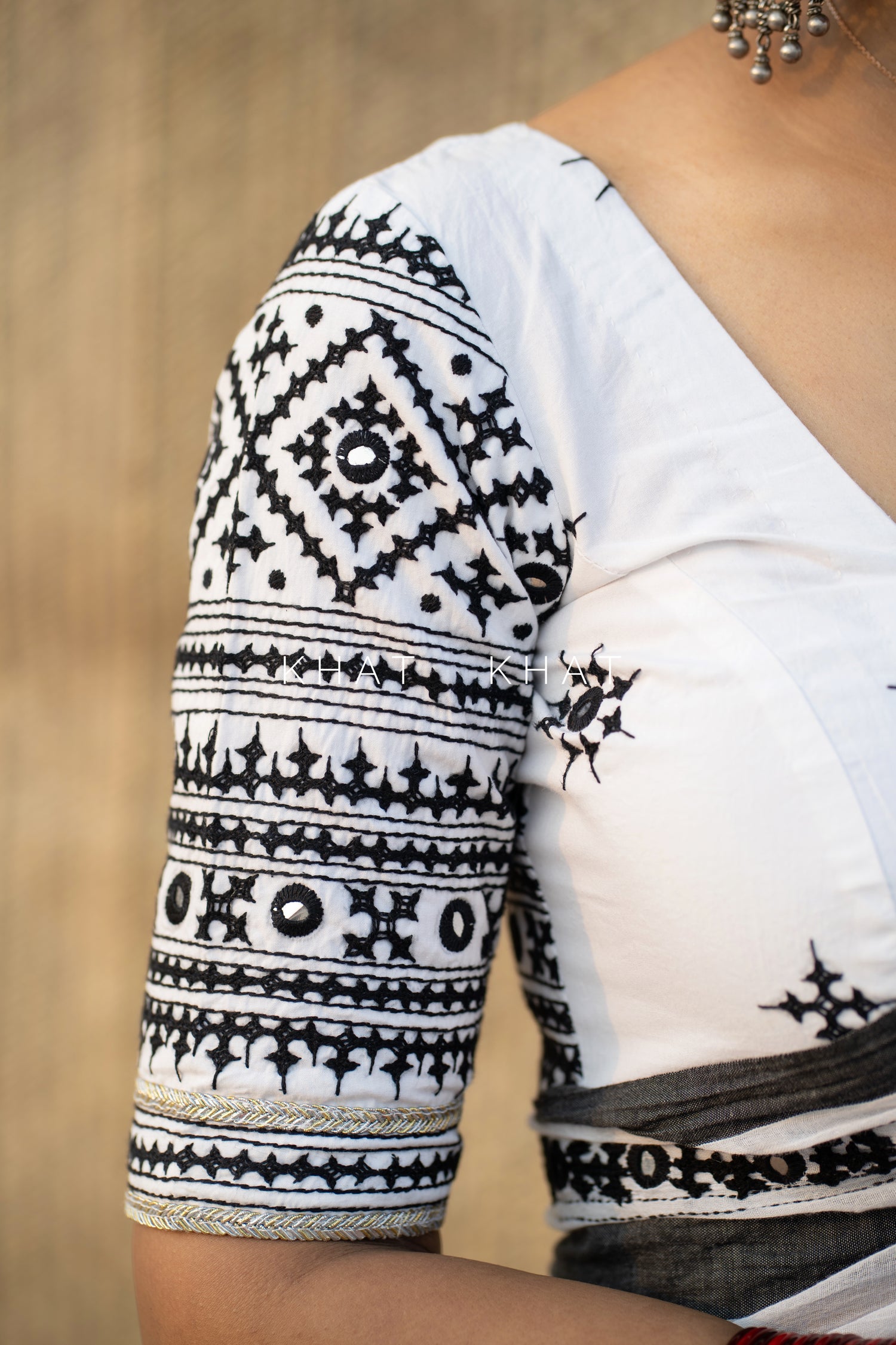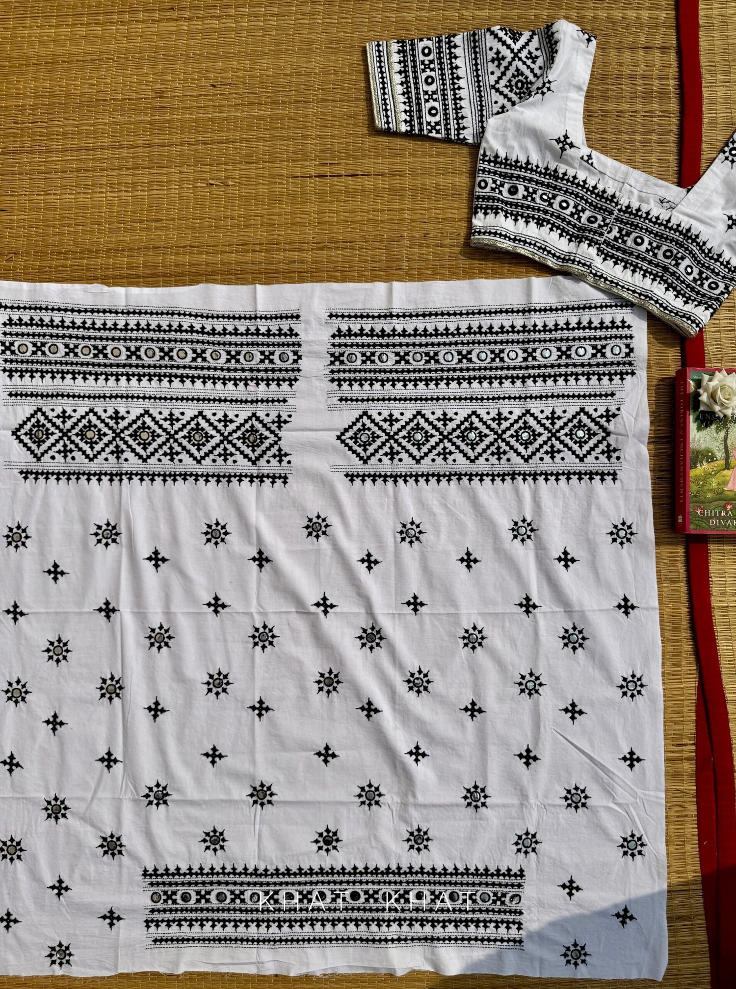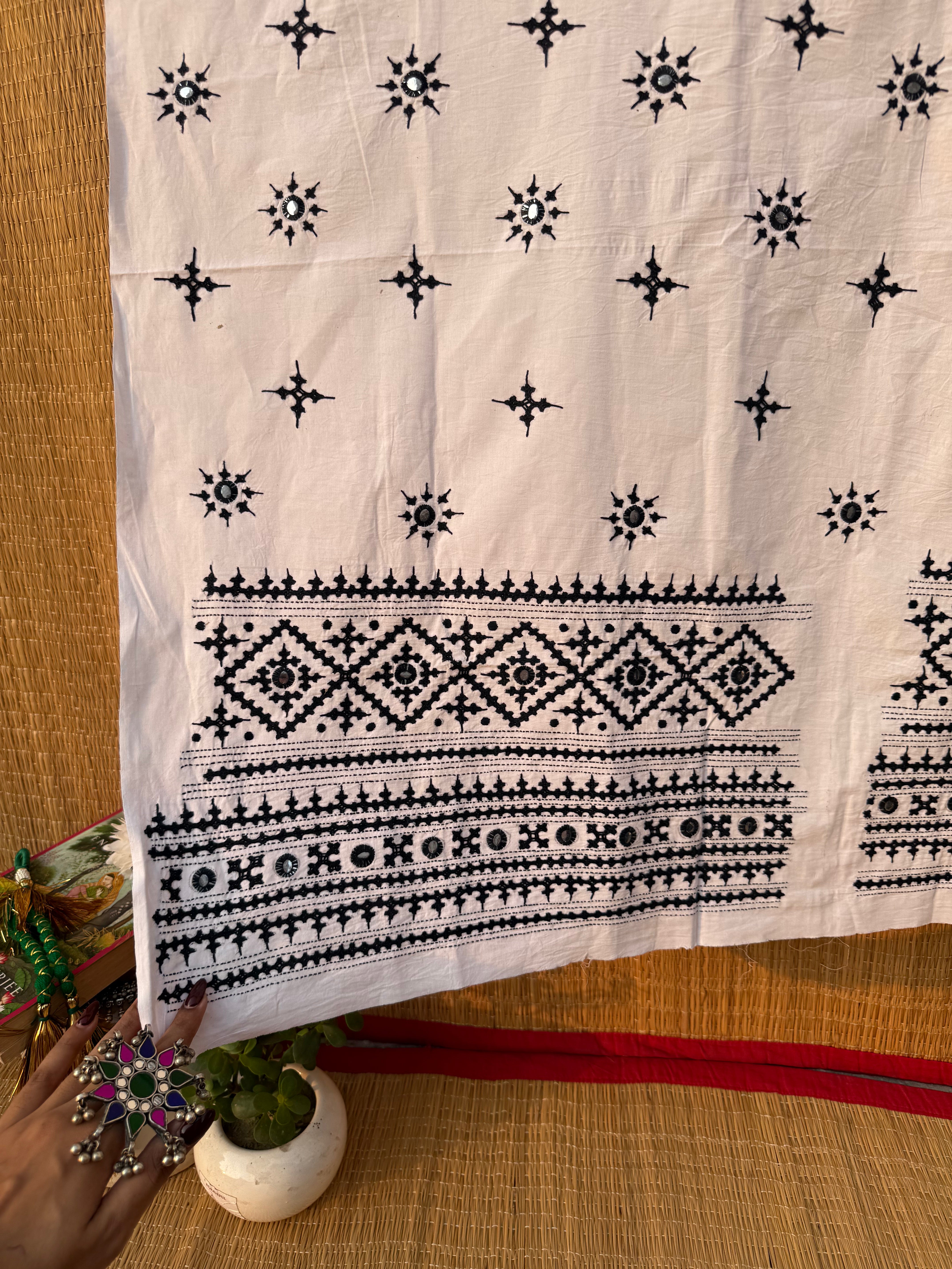 Colour : White (black kutch embroidery)
